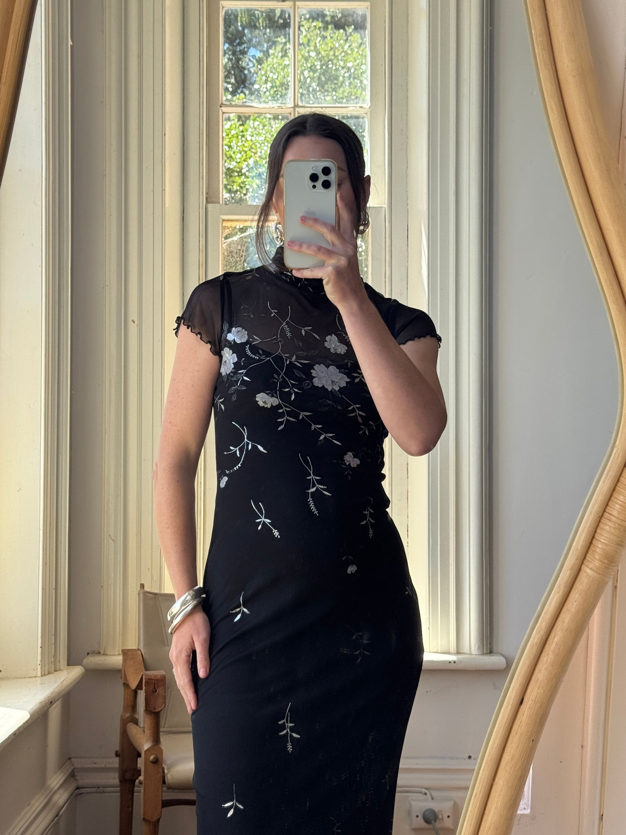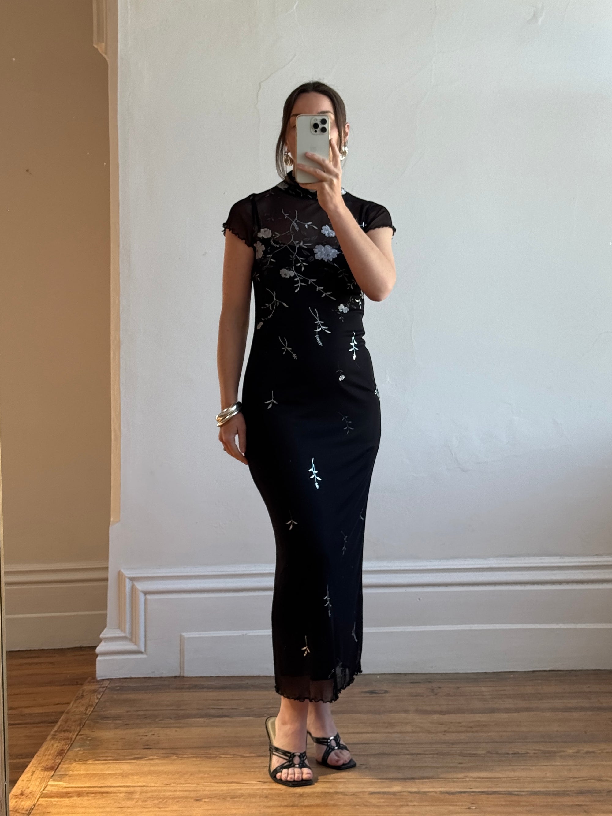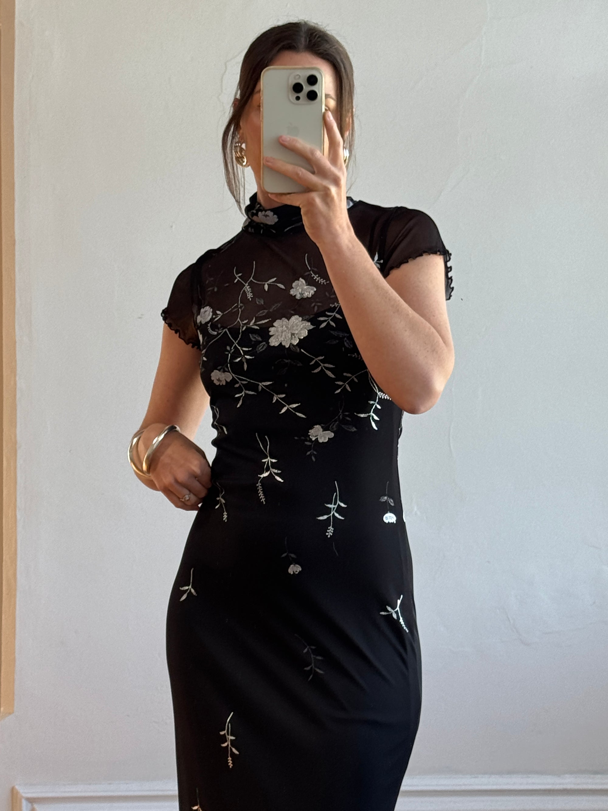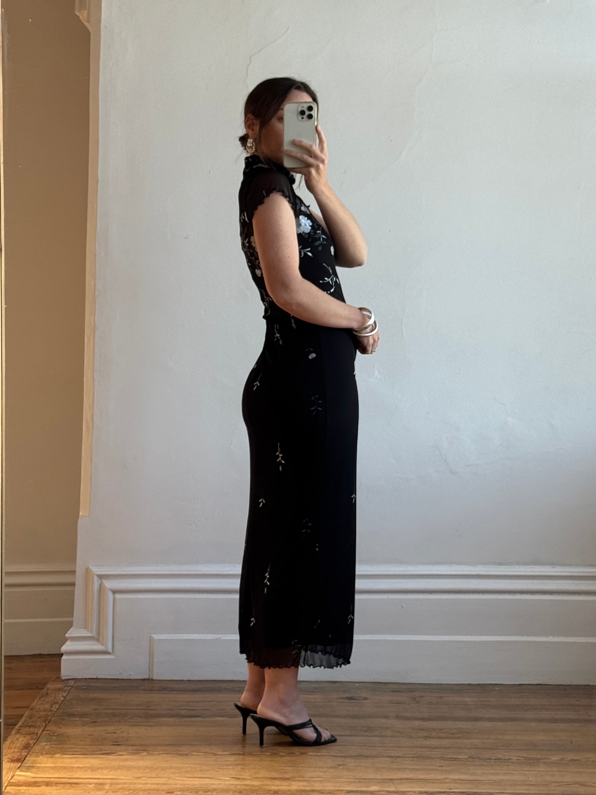 Vintage 90s Sheer Mesh Midi with Silver Vine