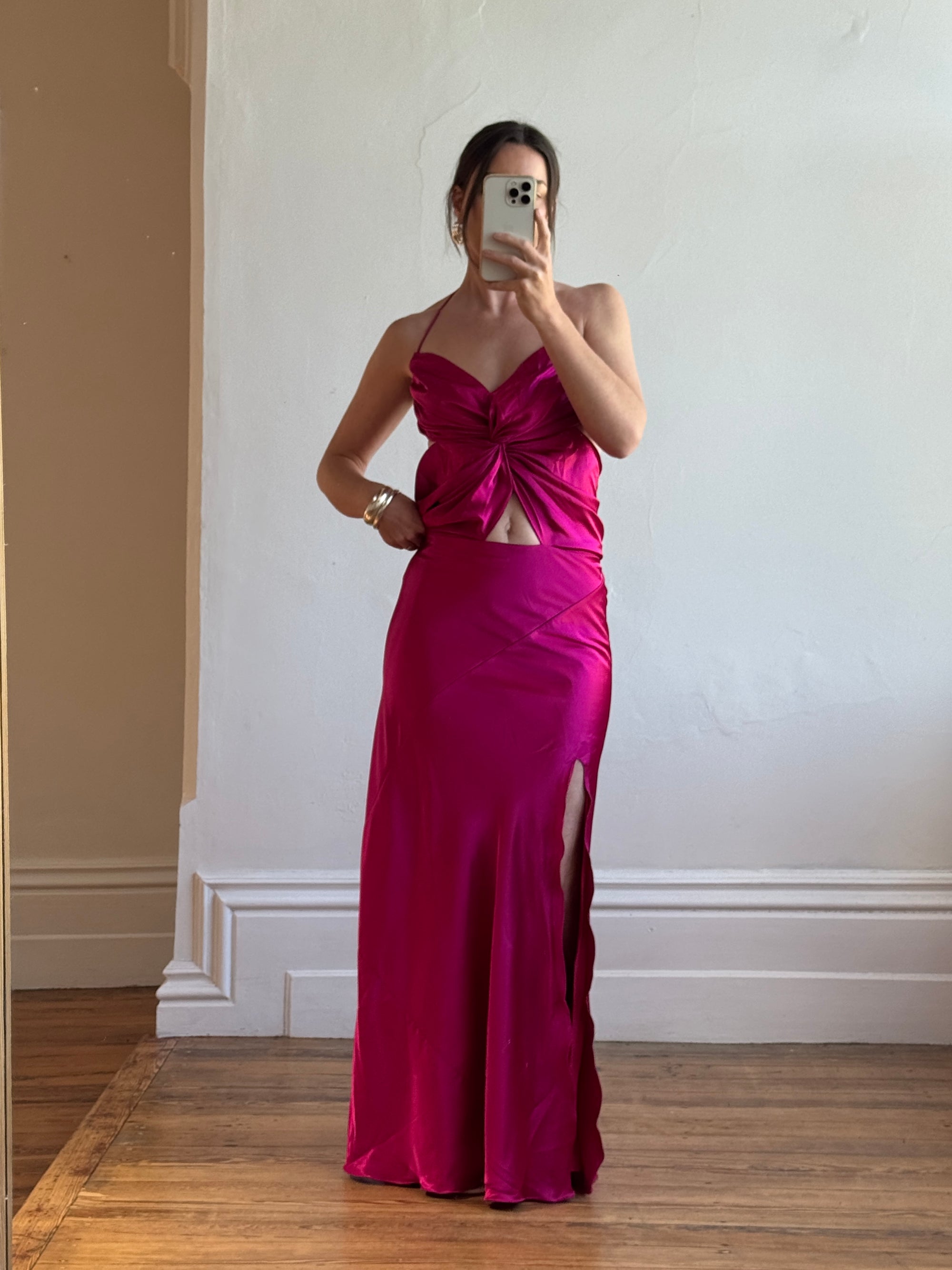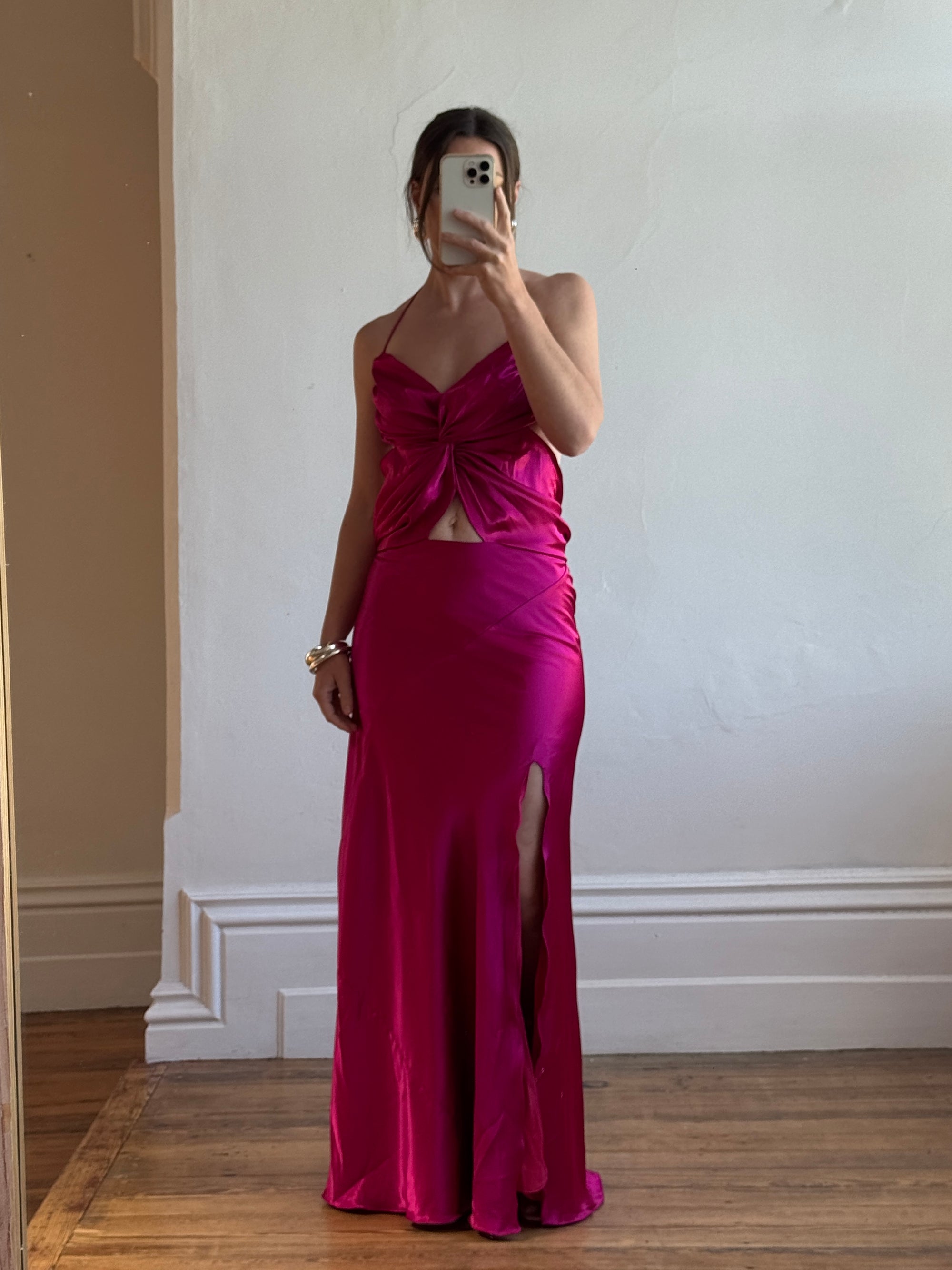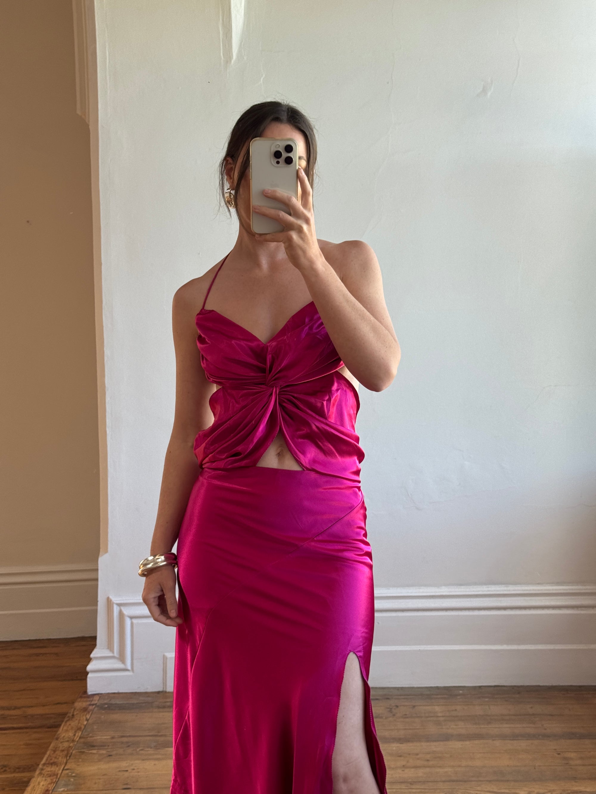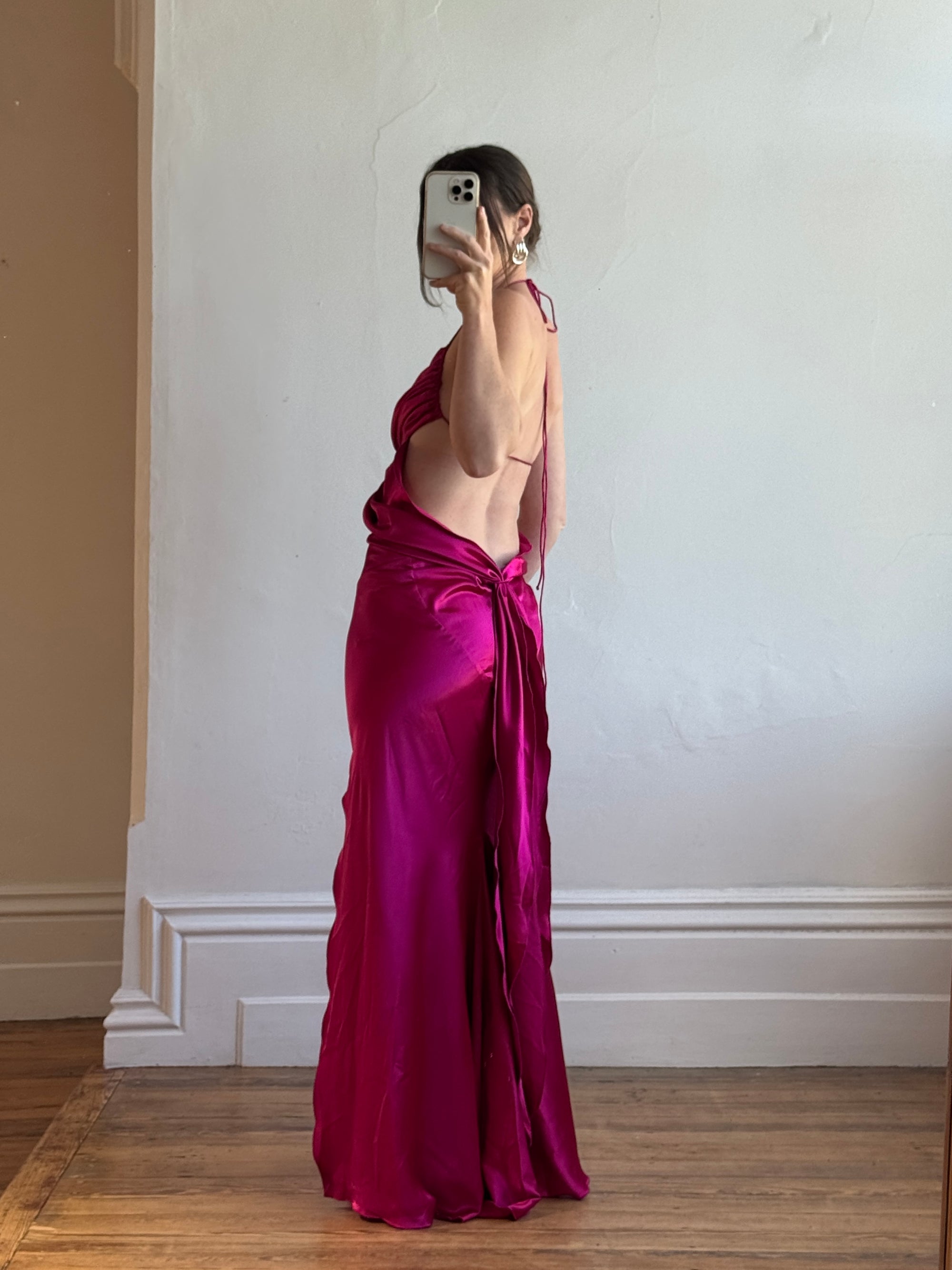 Vintage 90s Butterfly Fuchsia Silk Maxi Dress