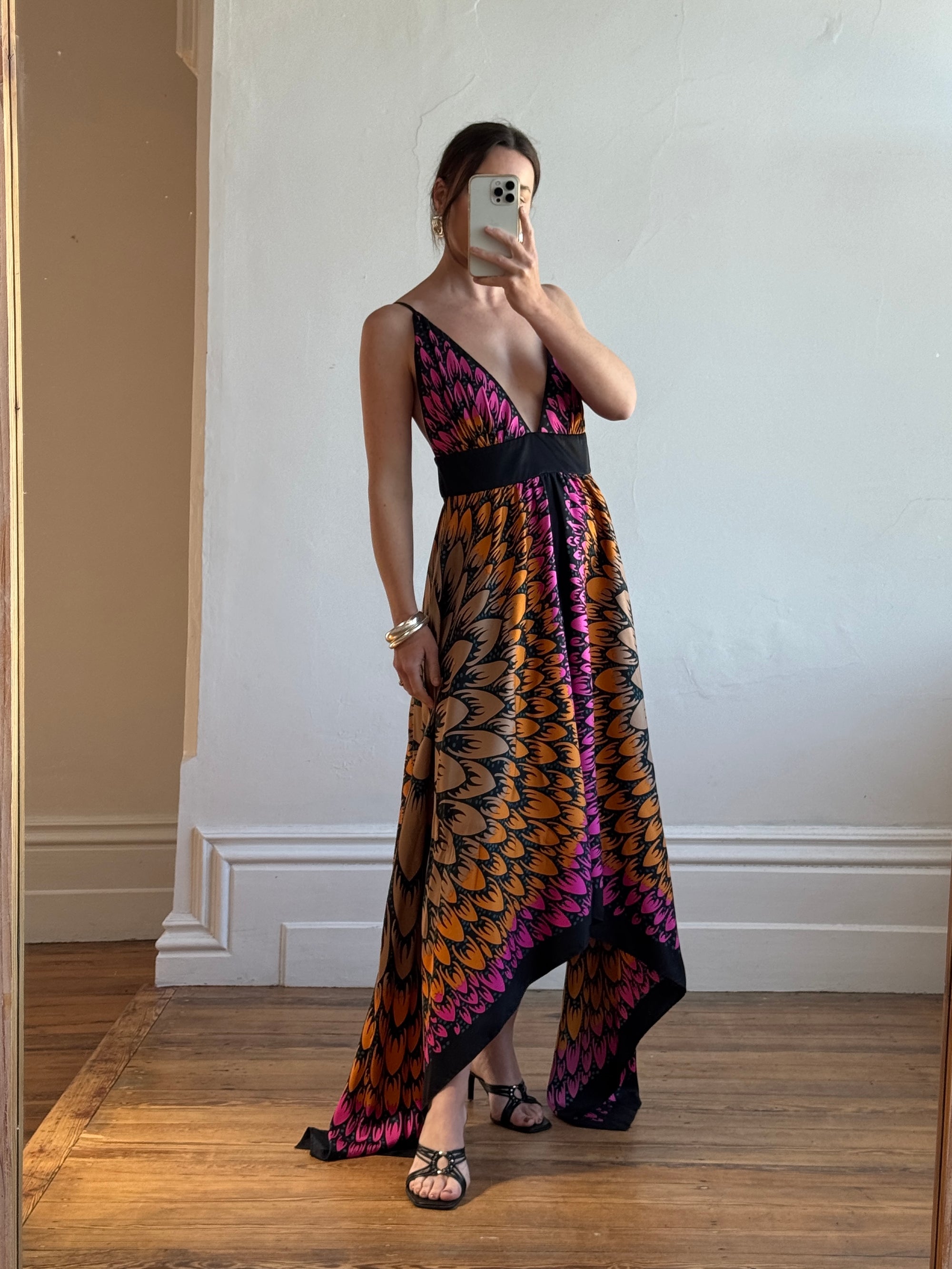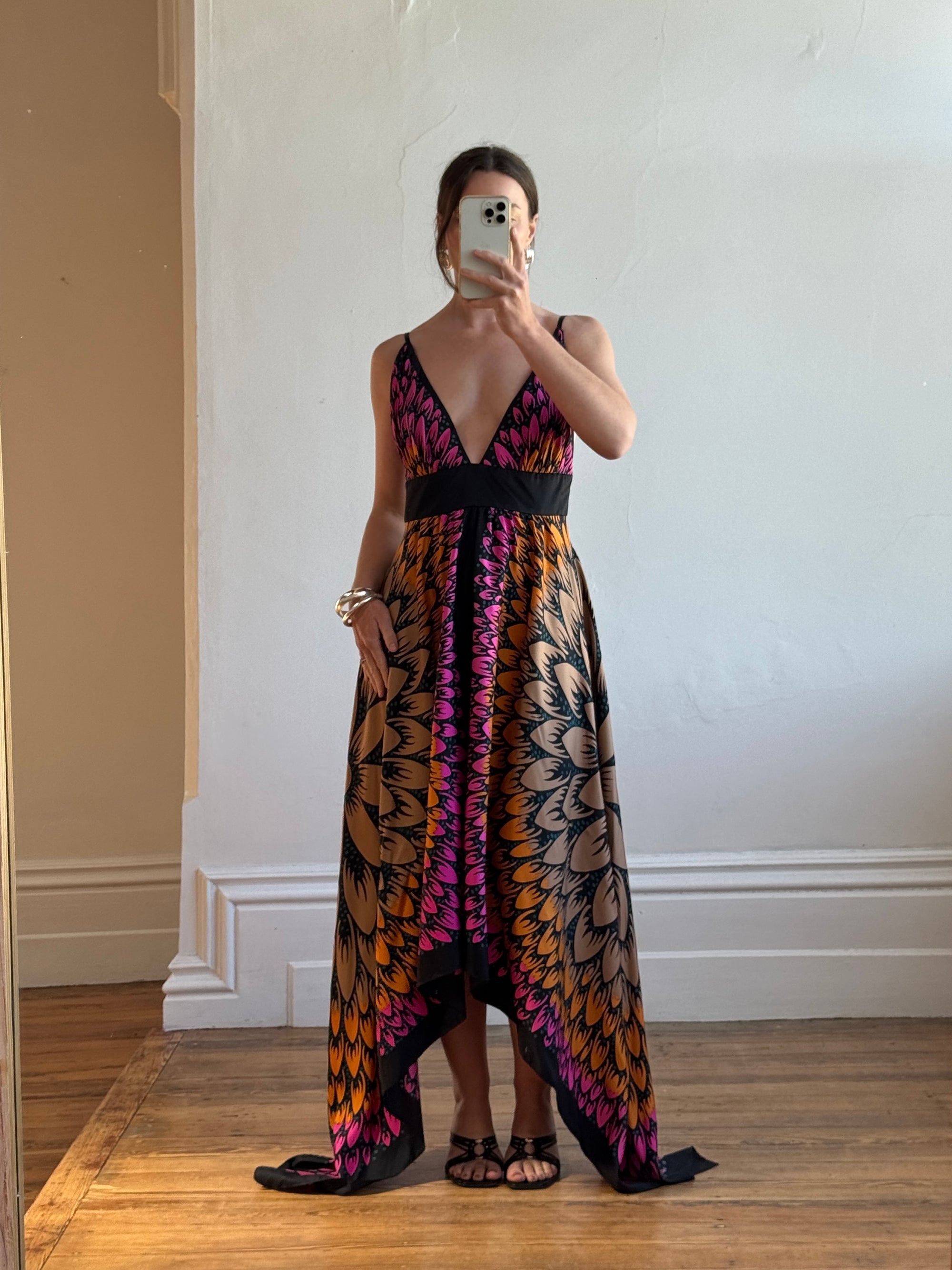 Vintage Y2K Lisa Ho Silk Scarf Dress Sunset