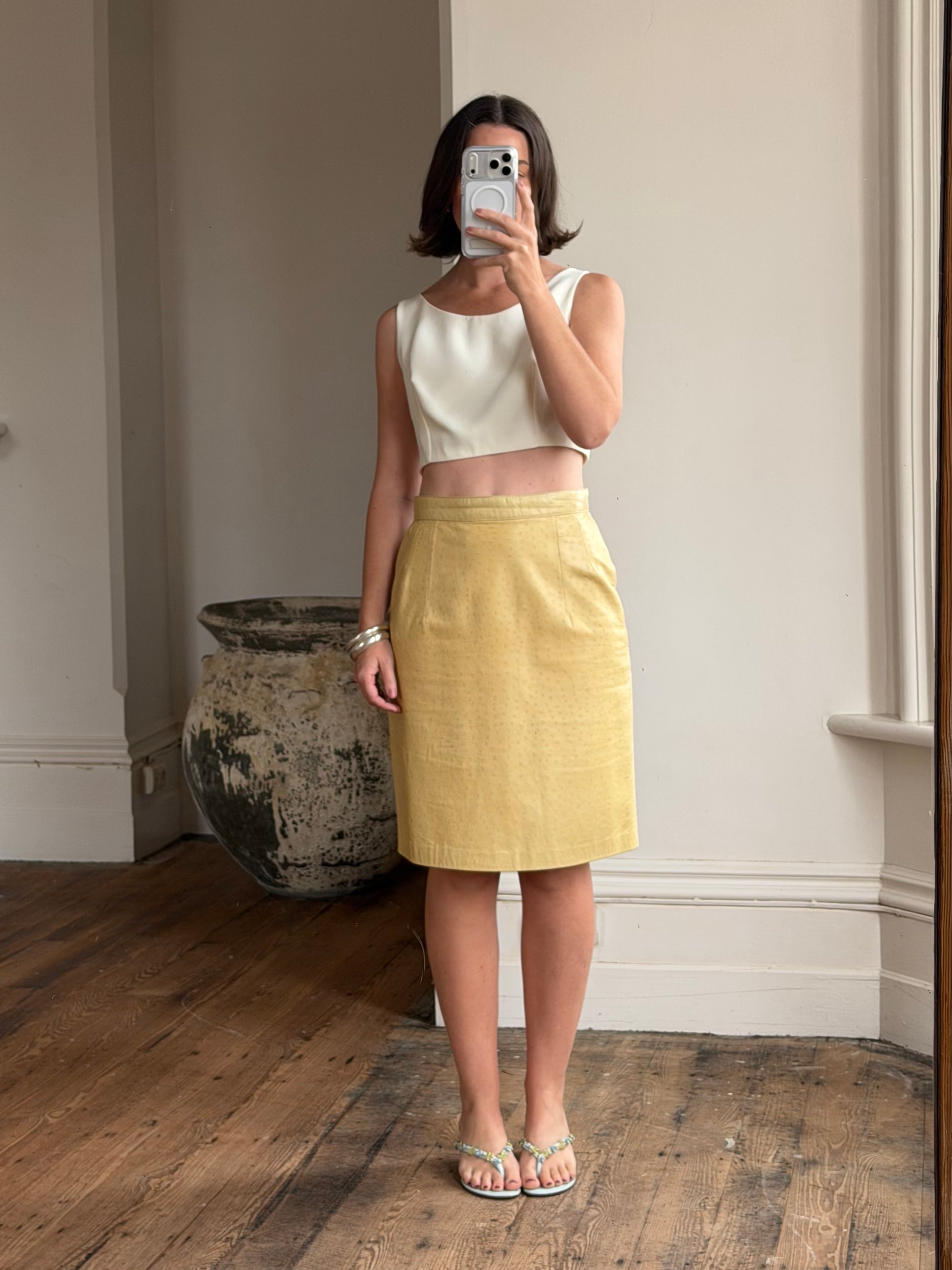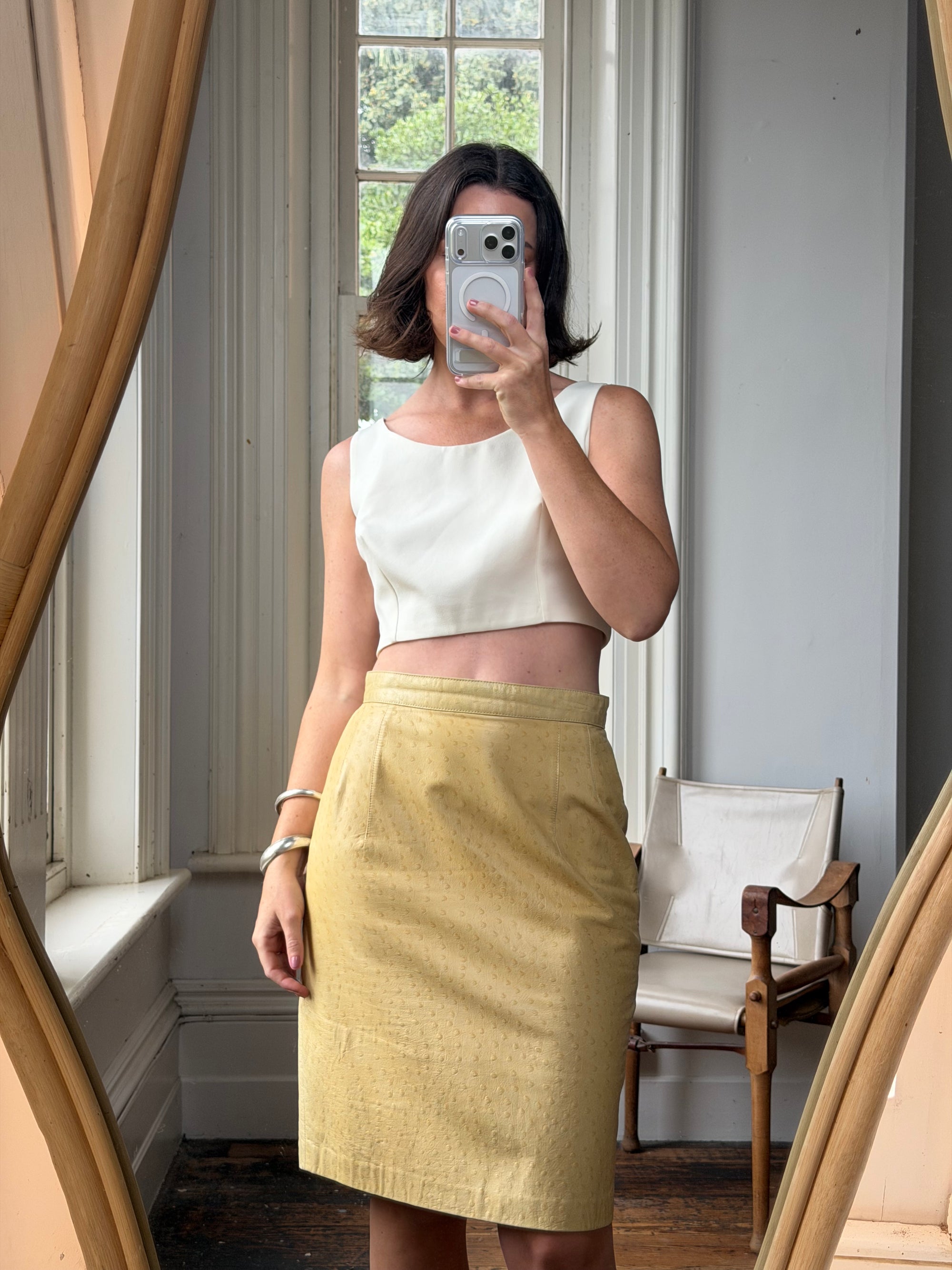 Vintage 90s Escada Butter Ostrich Leather Pencil Skirt