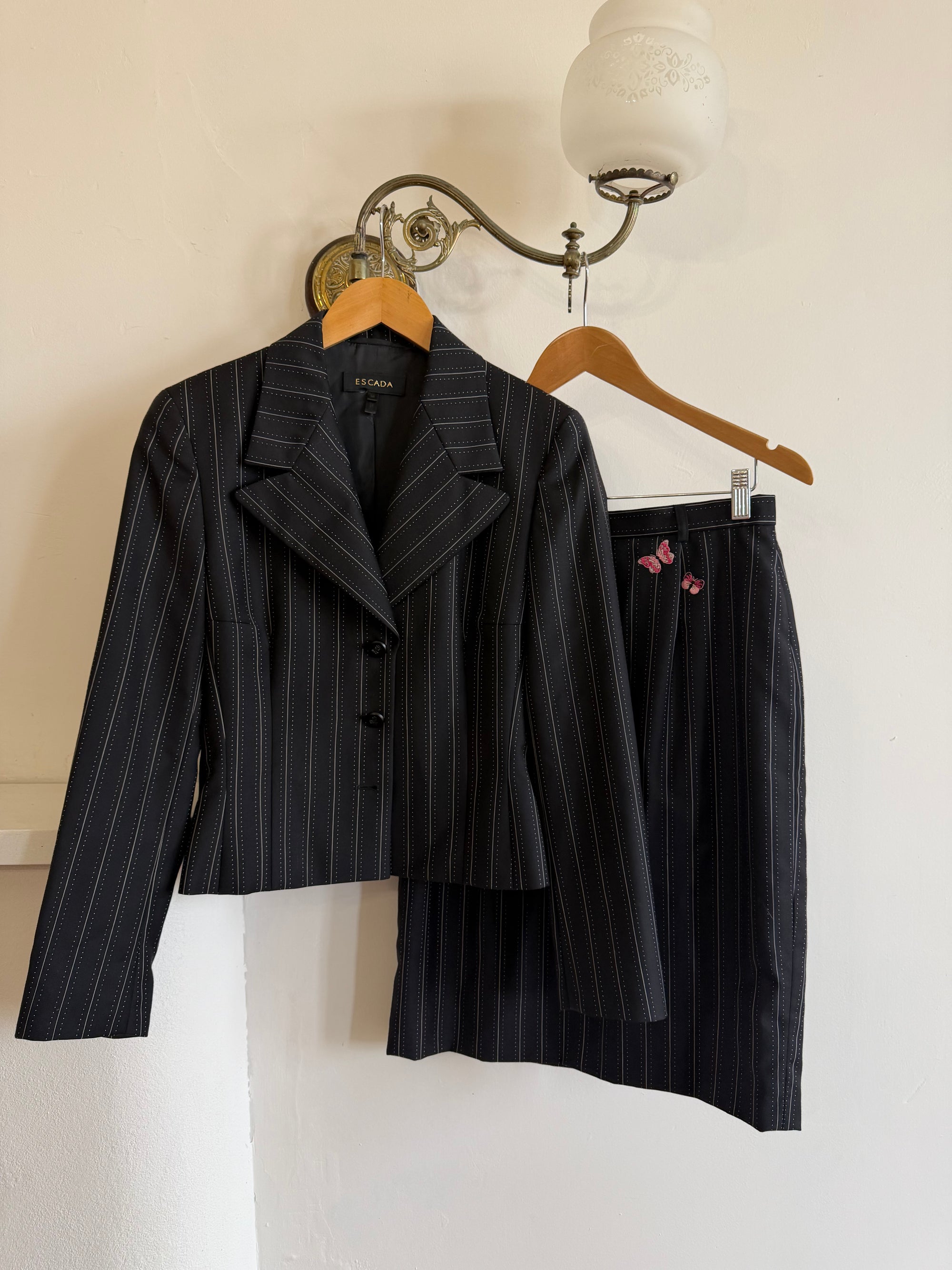 Vintage 90s Escada Pinstripe Wool Butterfly Tailored Set