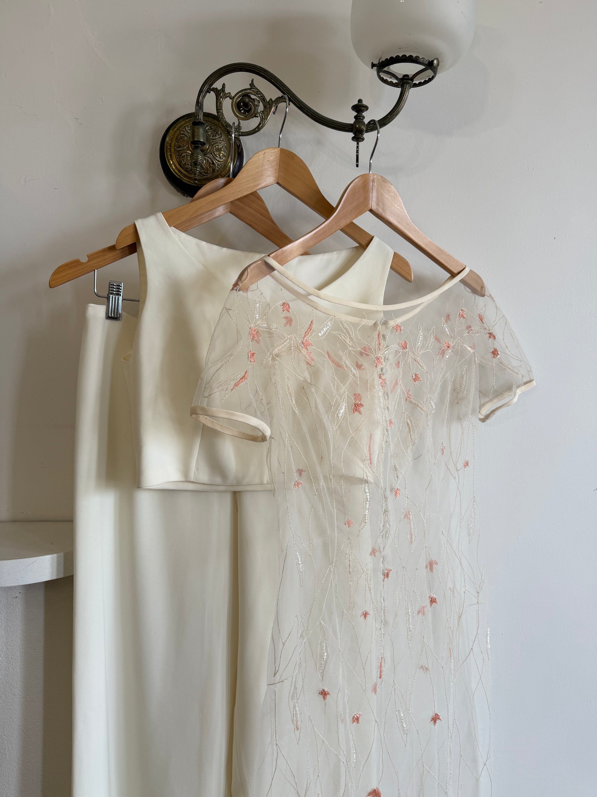Vintage 90s Italian Sheer Embroidered Tulle 3 Piece Bridal Set