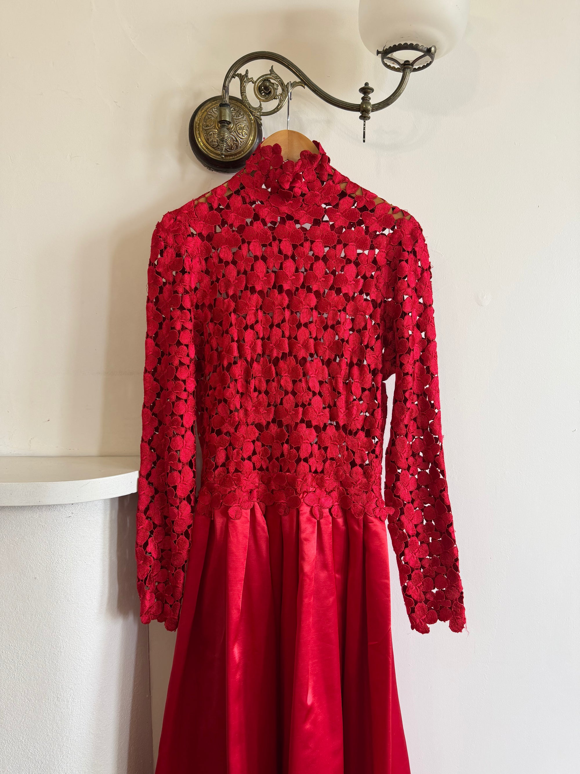Vintage 90s Silk Jacquard Petite Rose Wedding Dress