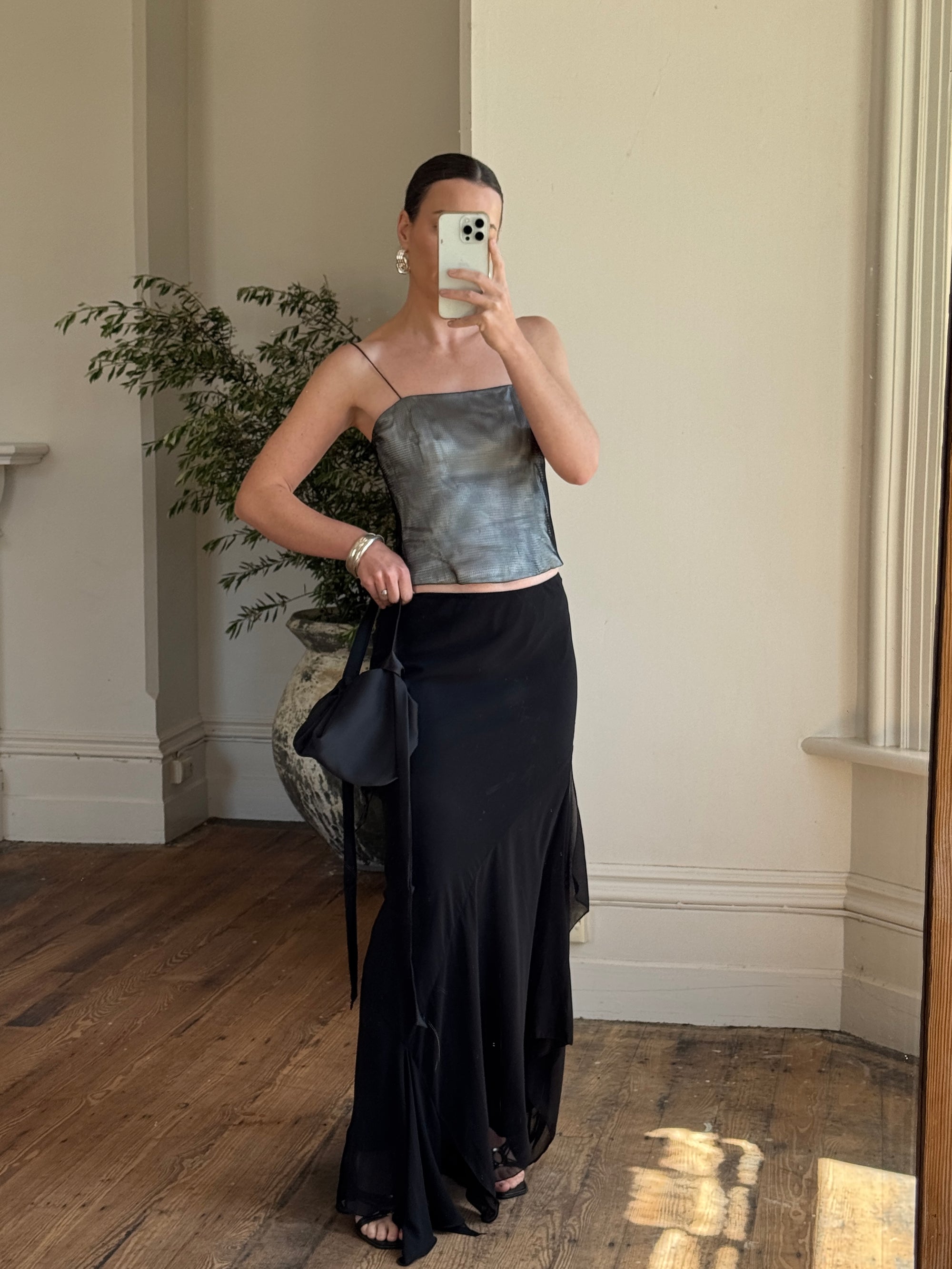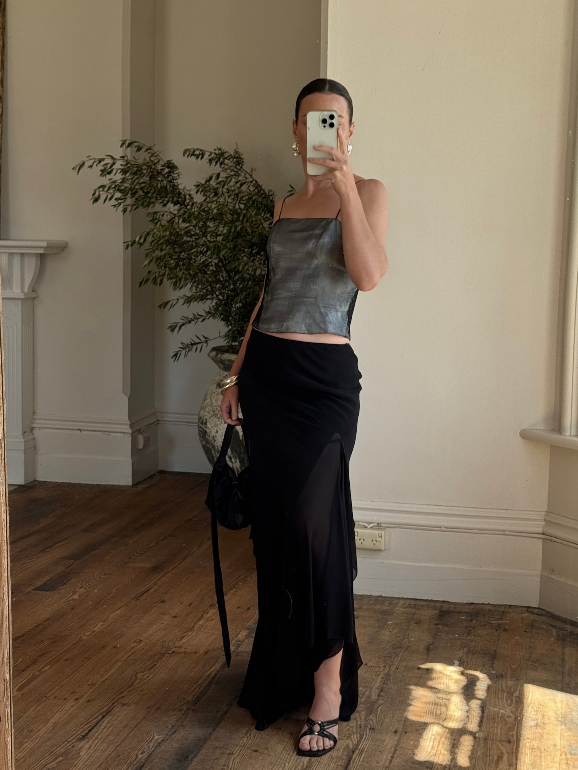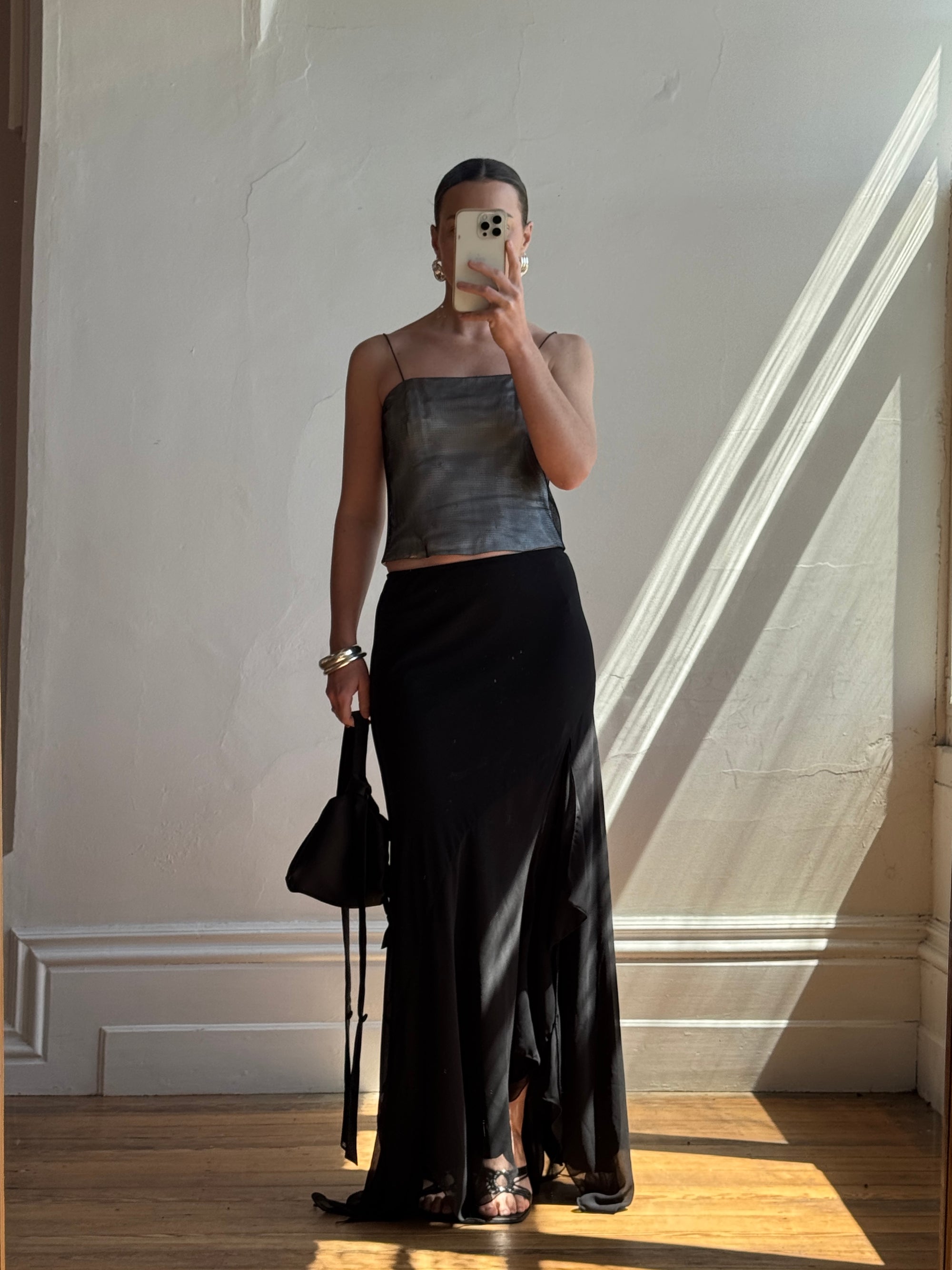 Vintage 90s Pure Silk Fishtail Skirt With Train Noir
