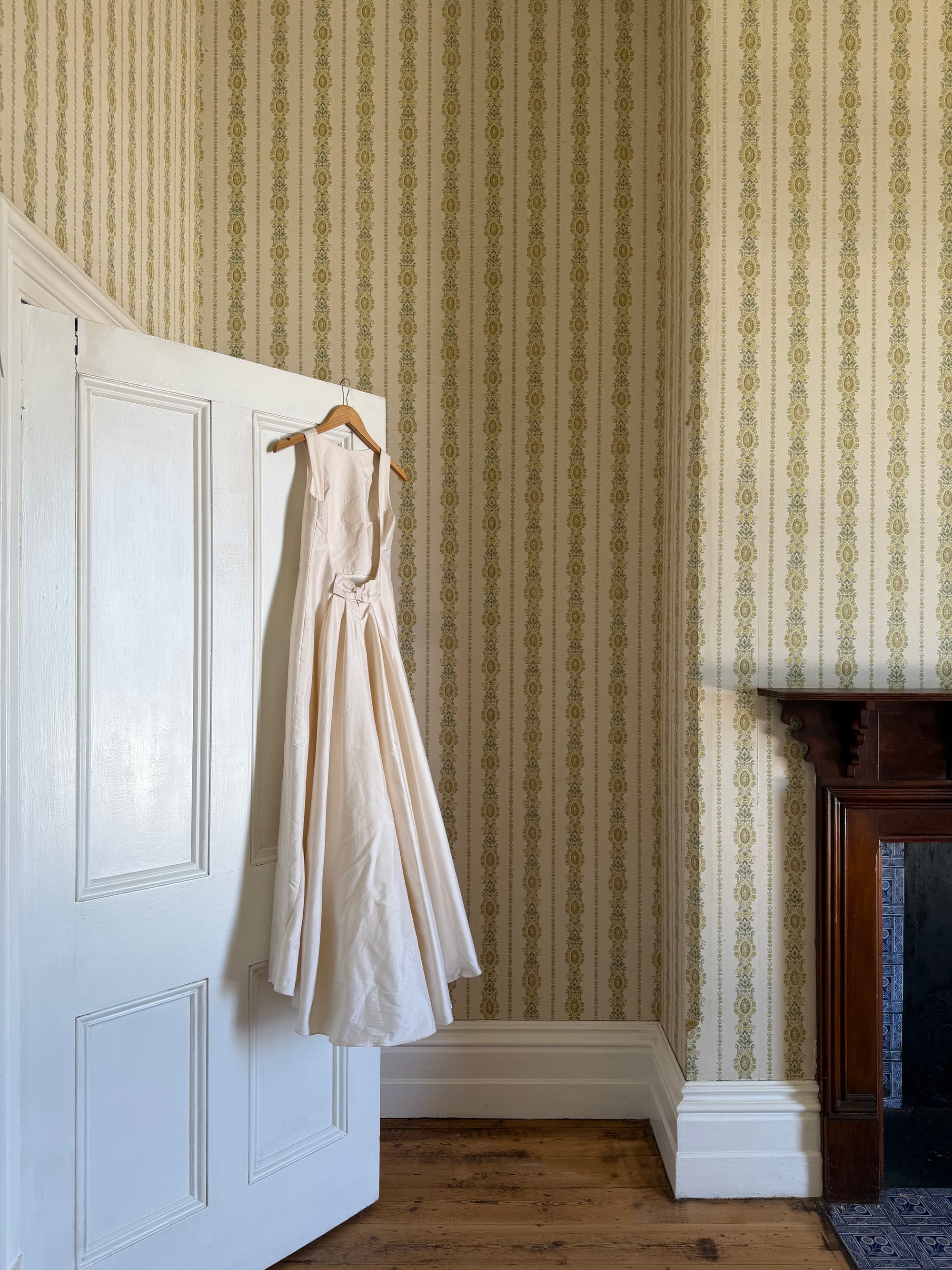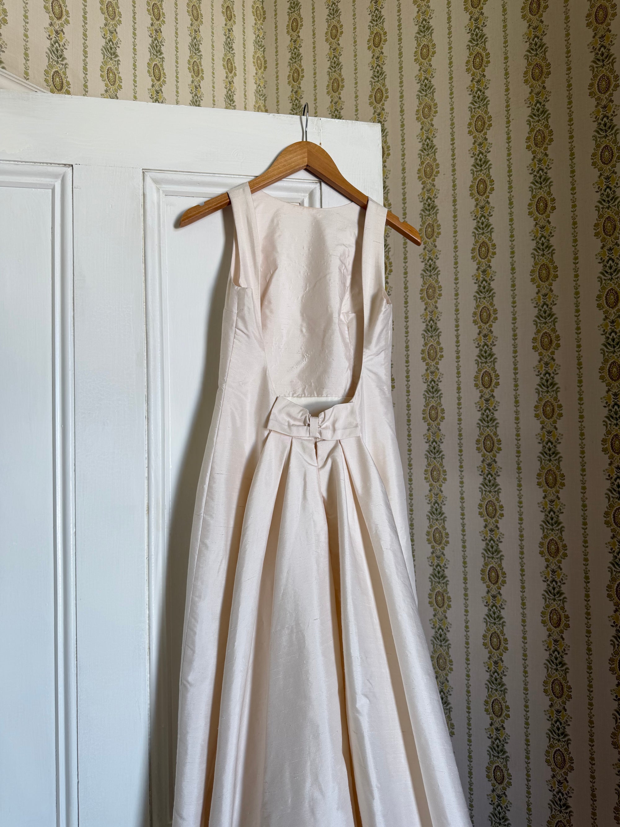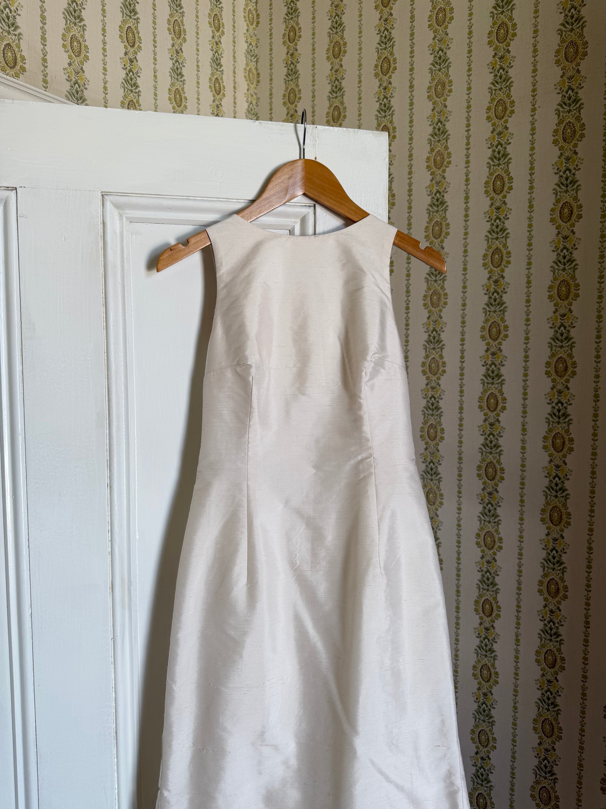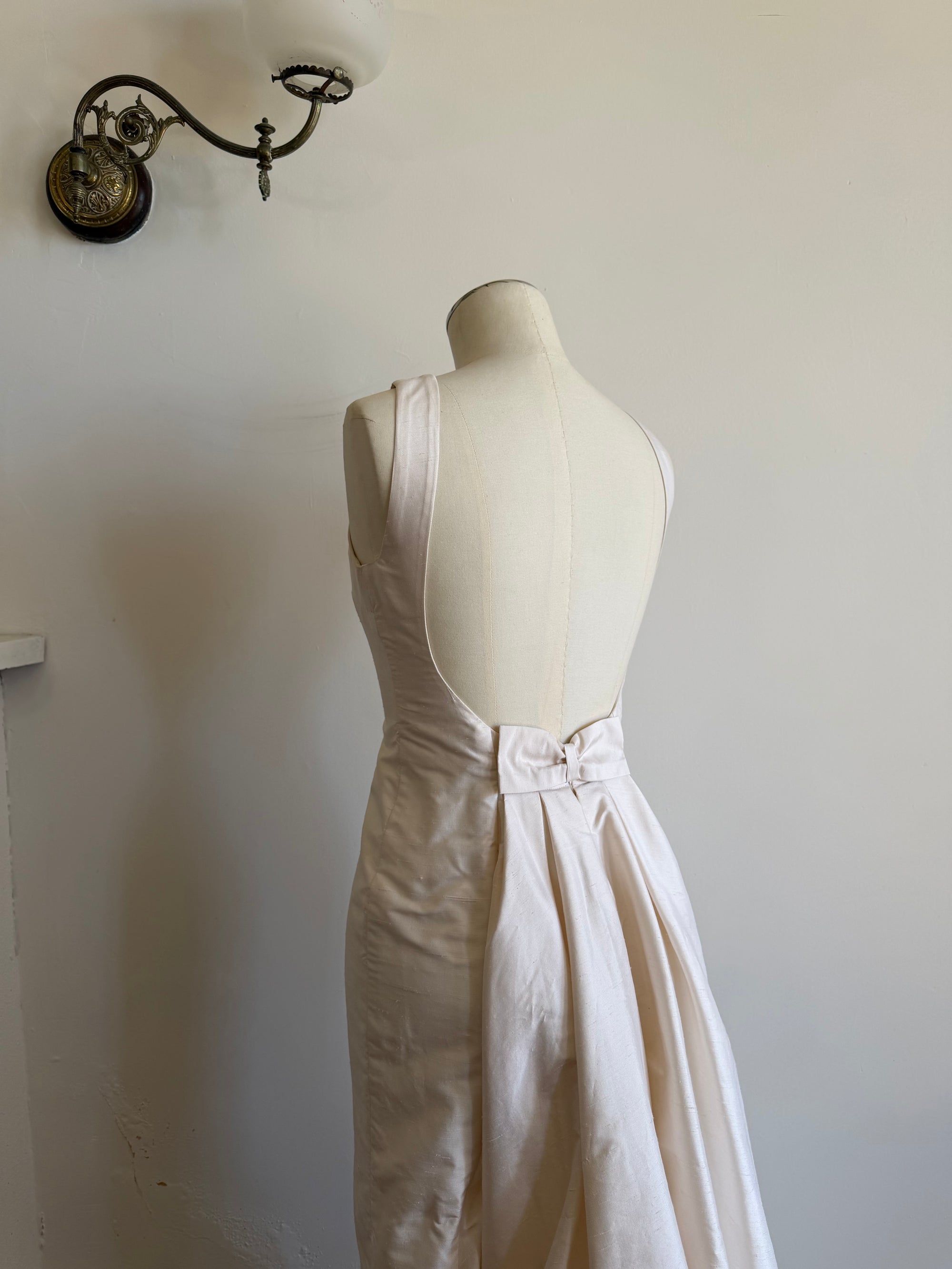 Vintage 90s Raw Silk Backless Bow Wedding Dress