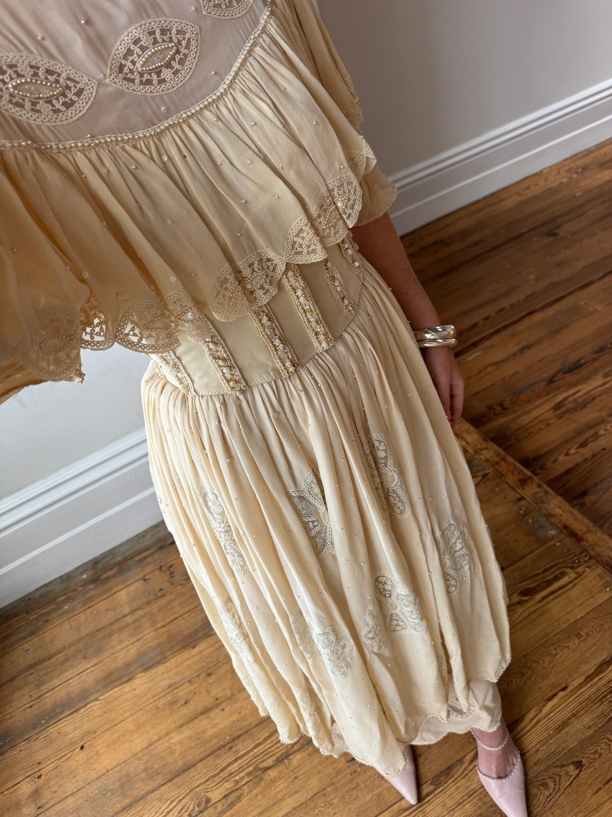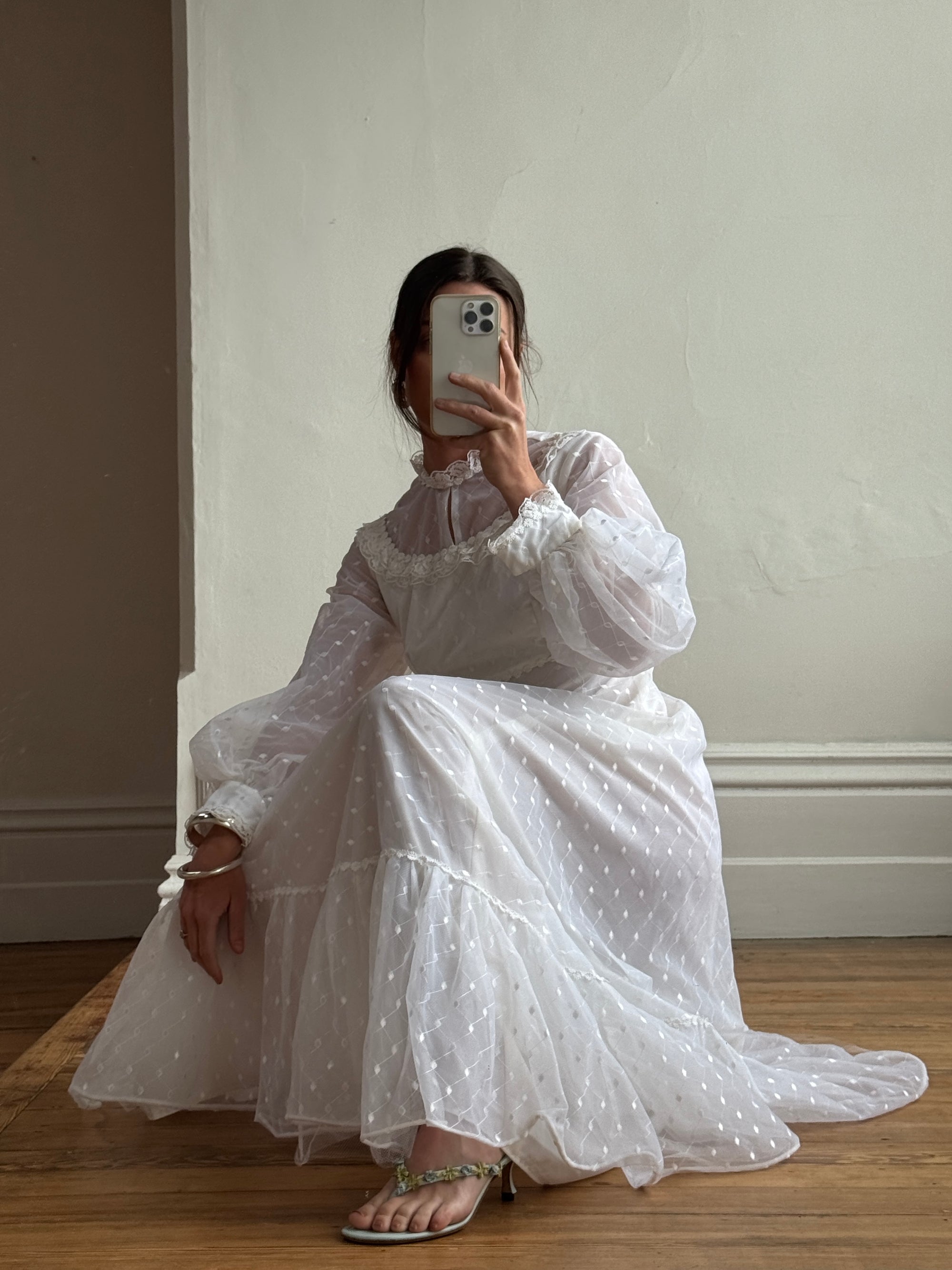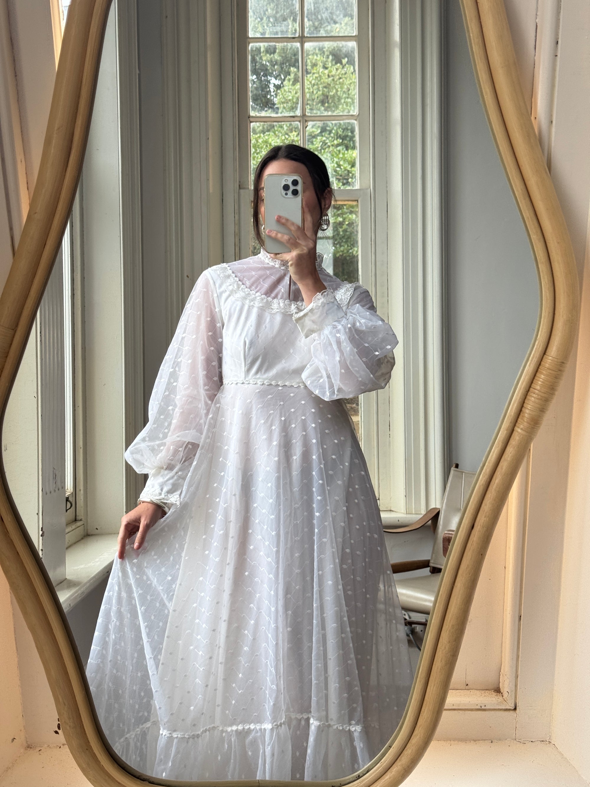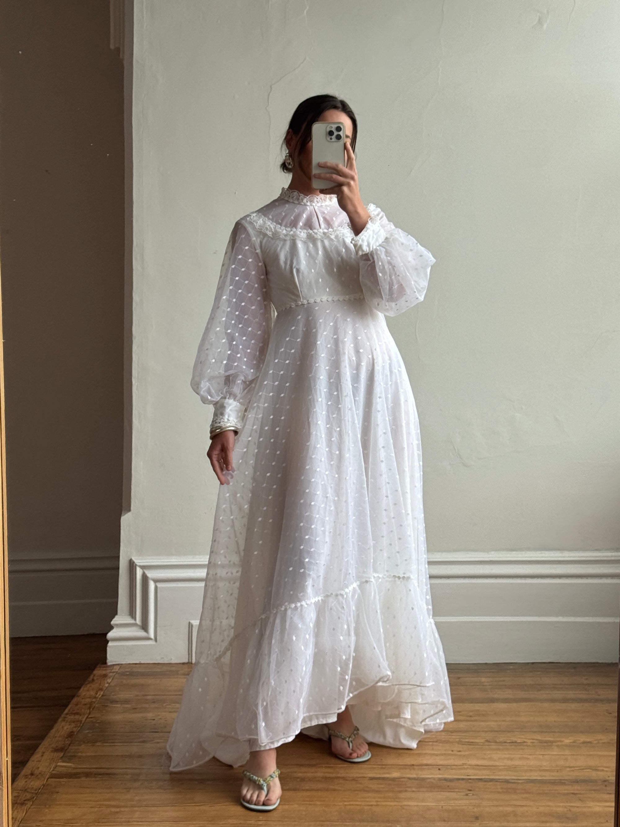 Vintage 70s Swiss Dot Prairie Wedding Dress