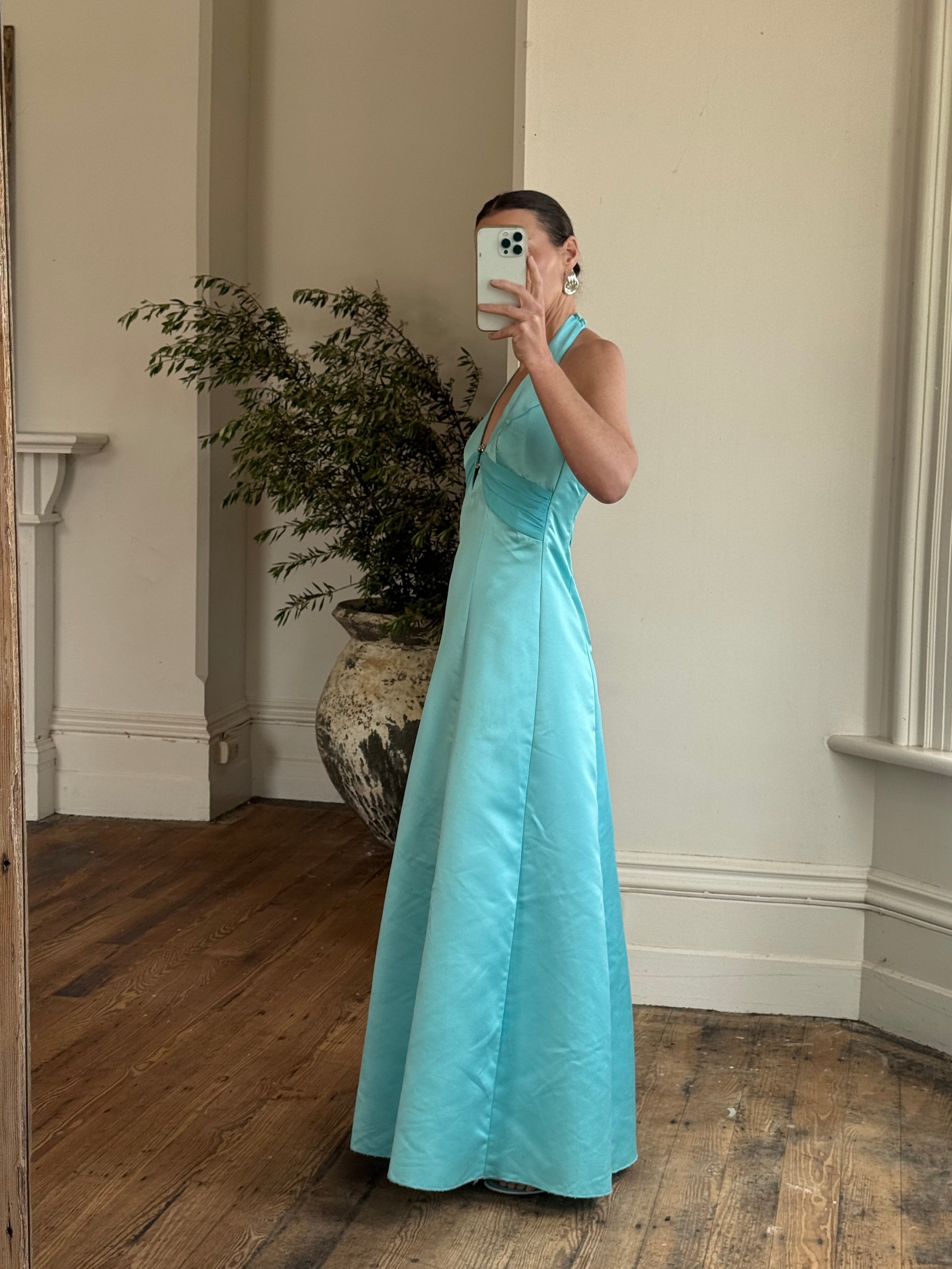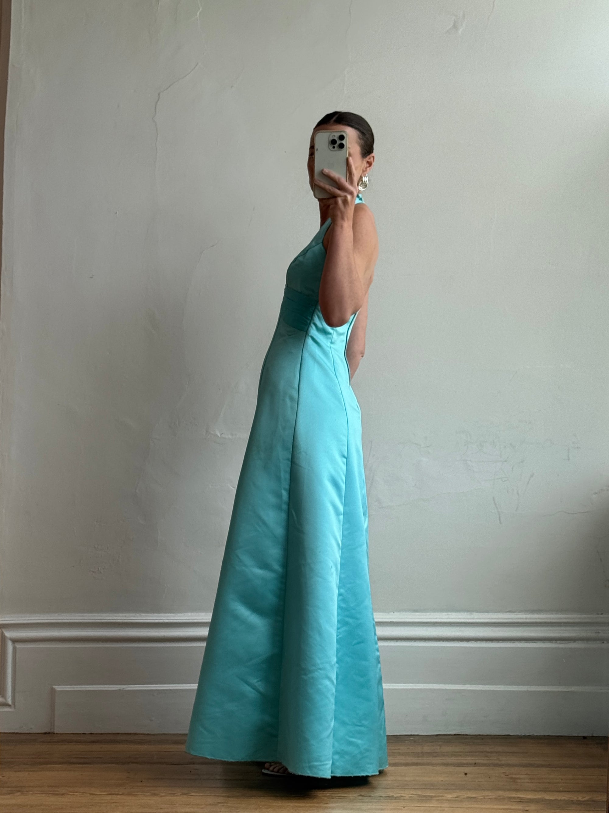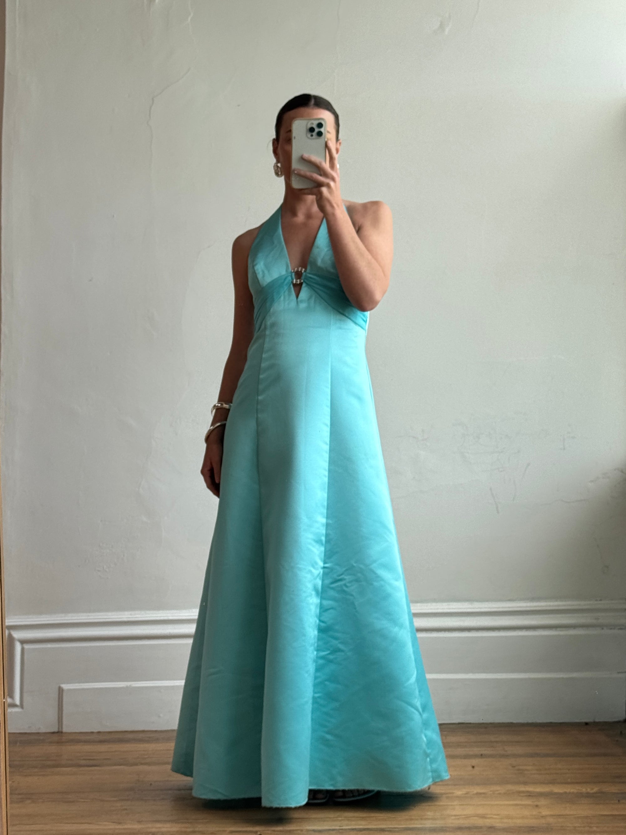 Vintage 90s A-Line Aqua Prom Dress with Rhinestones