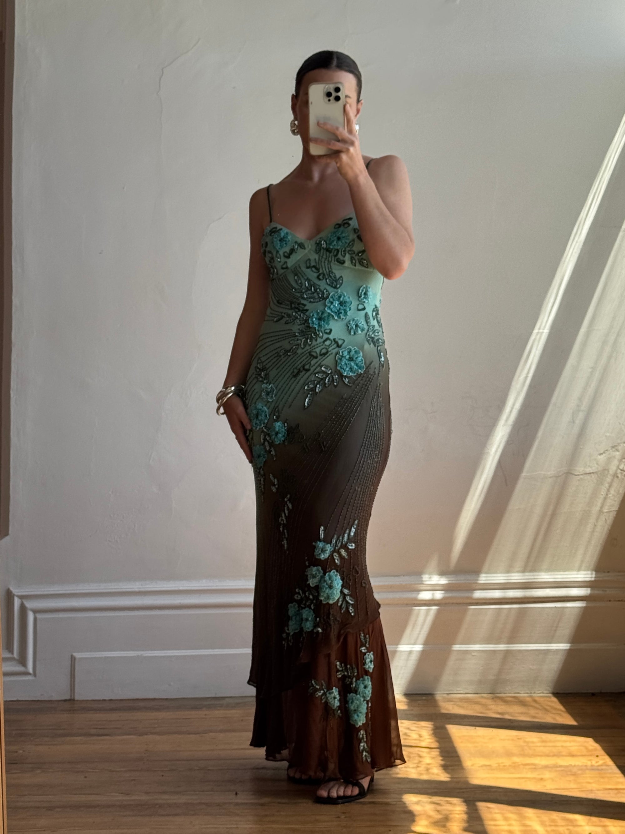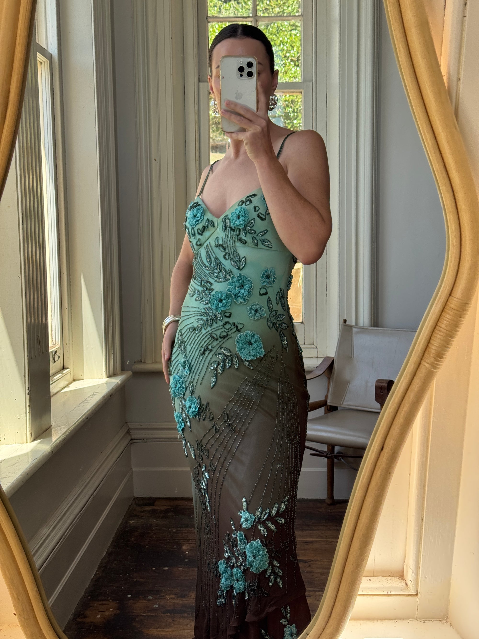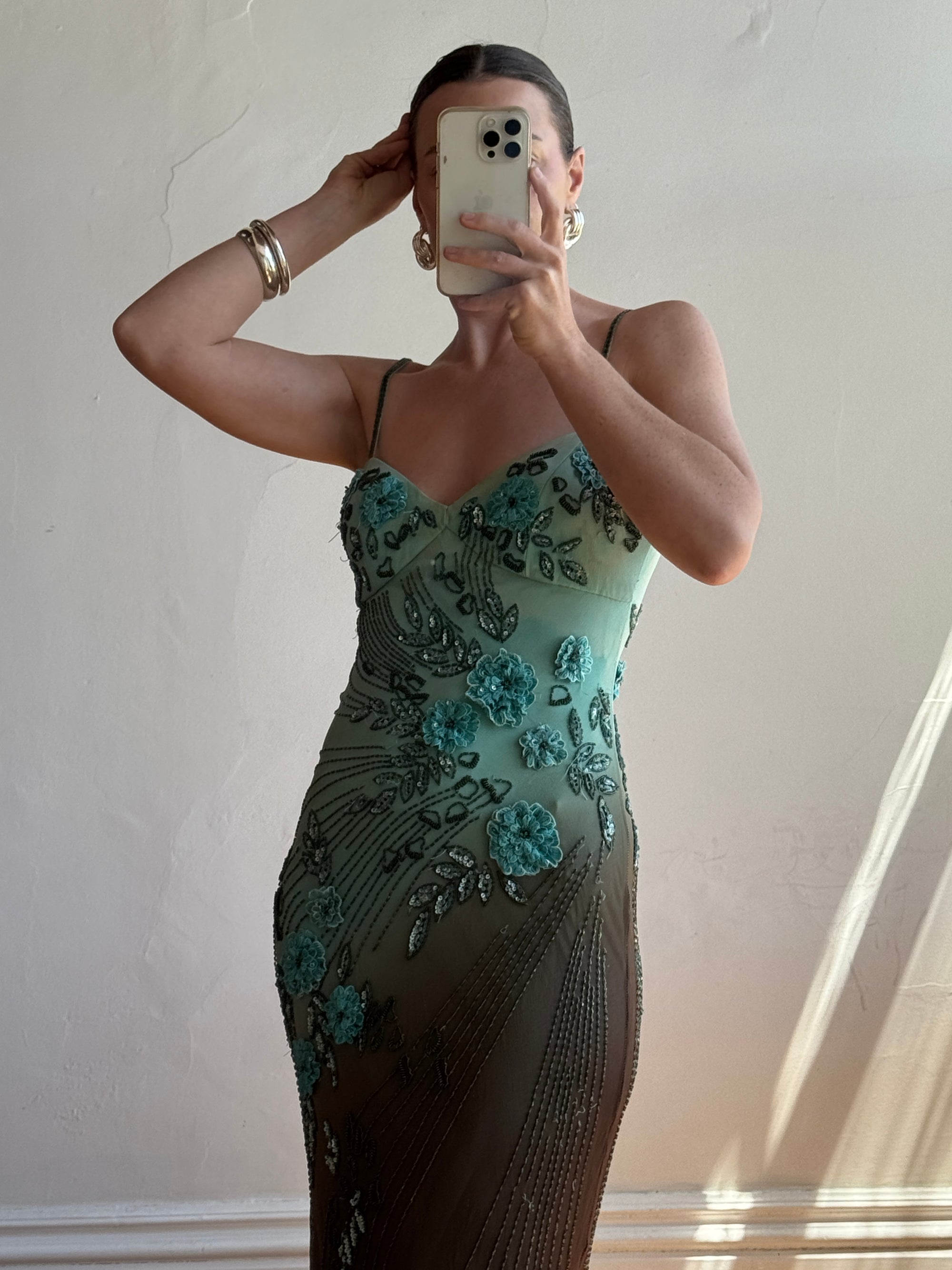Vintage 90s Rare Ombre Embellished Mermaid Dress