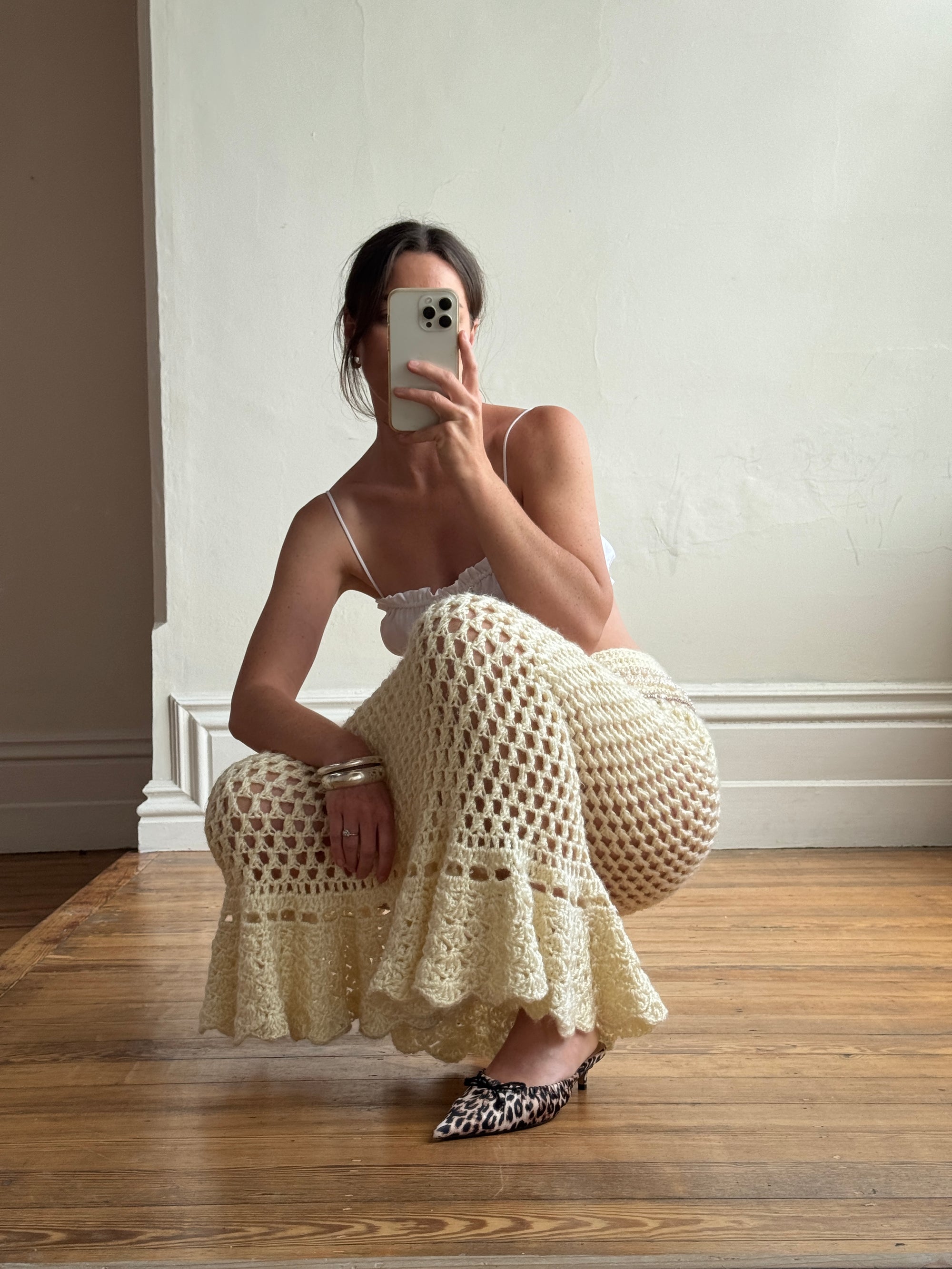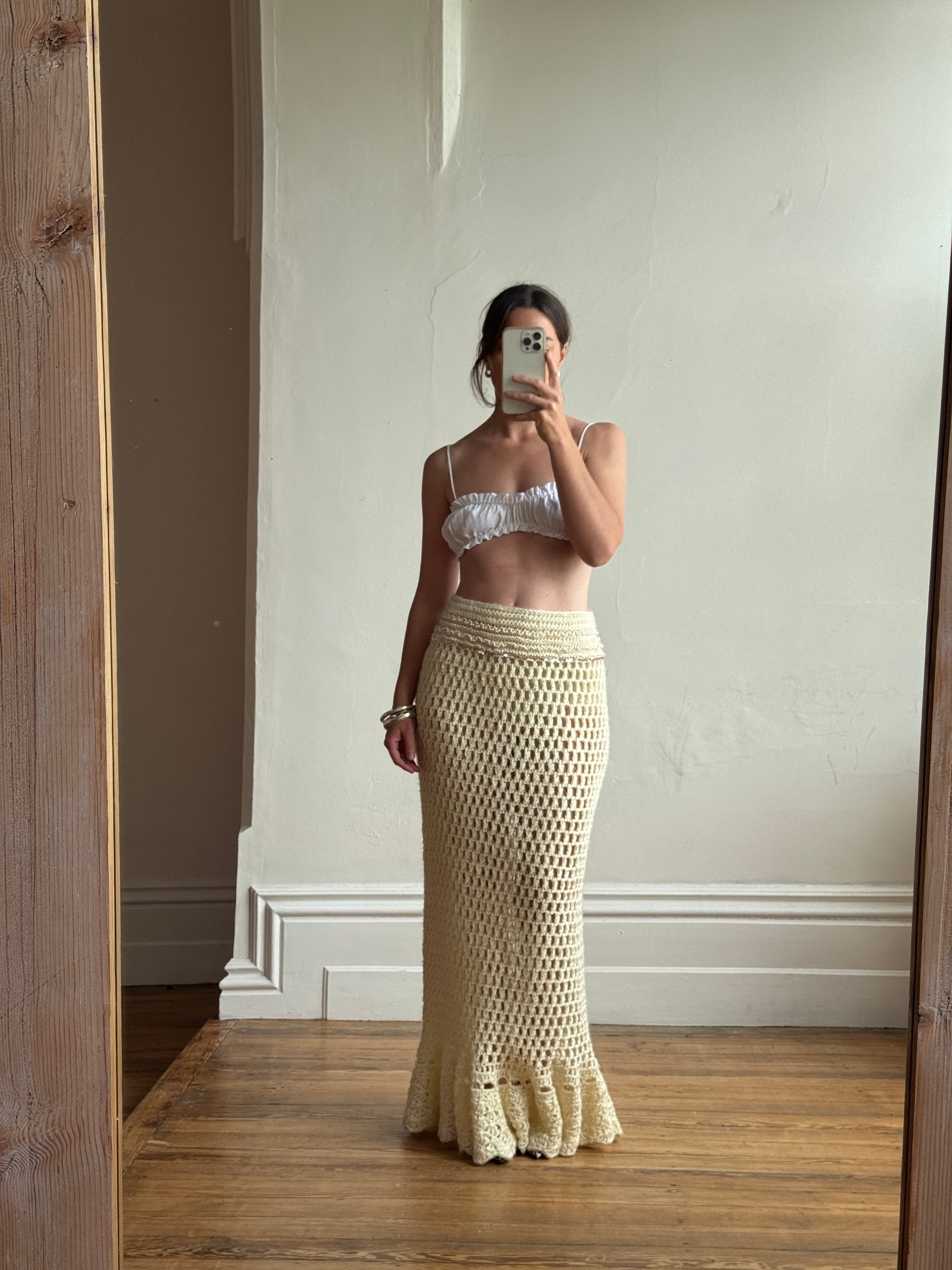 Vintage 70s Wool Crochet Beaded Mermaid Bias Skirt