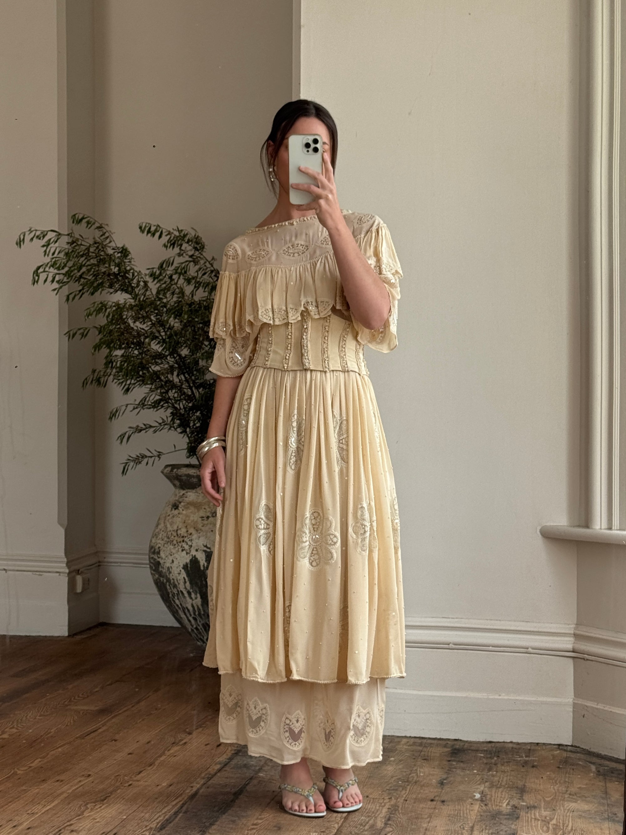 Vintage 2002 Collette Dinnigan Gold Foil Floral Two Piece Set