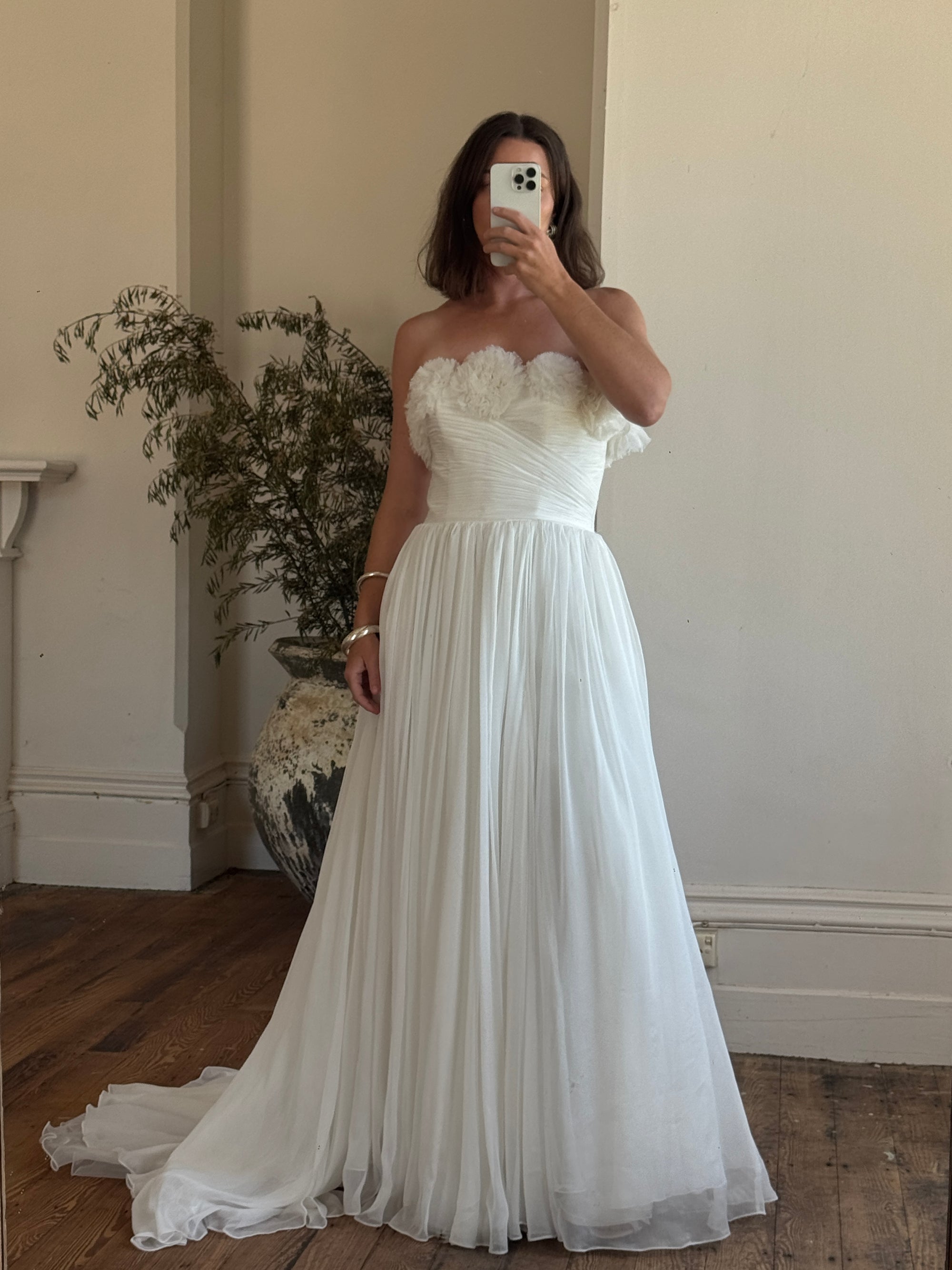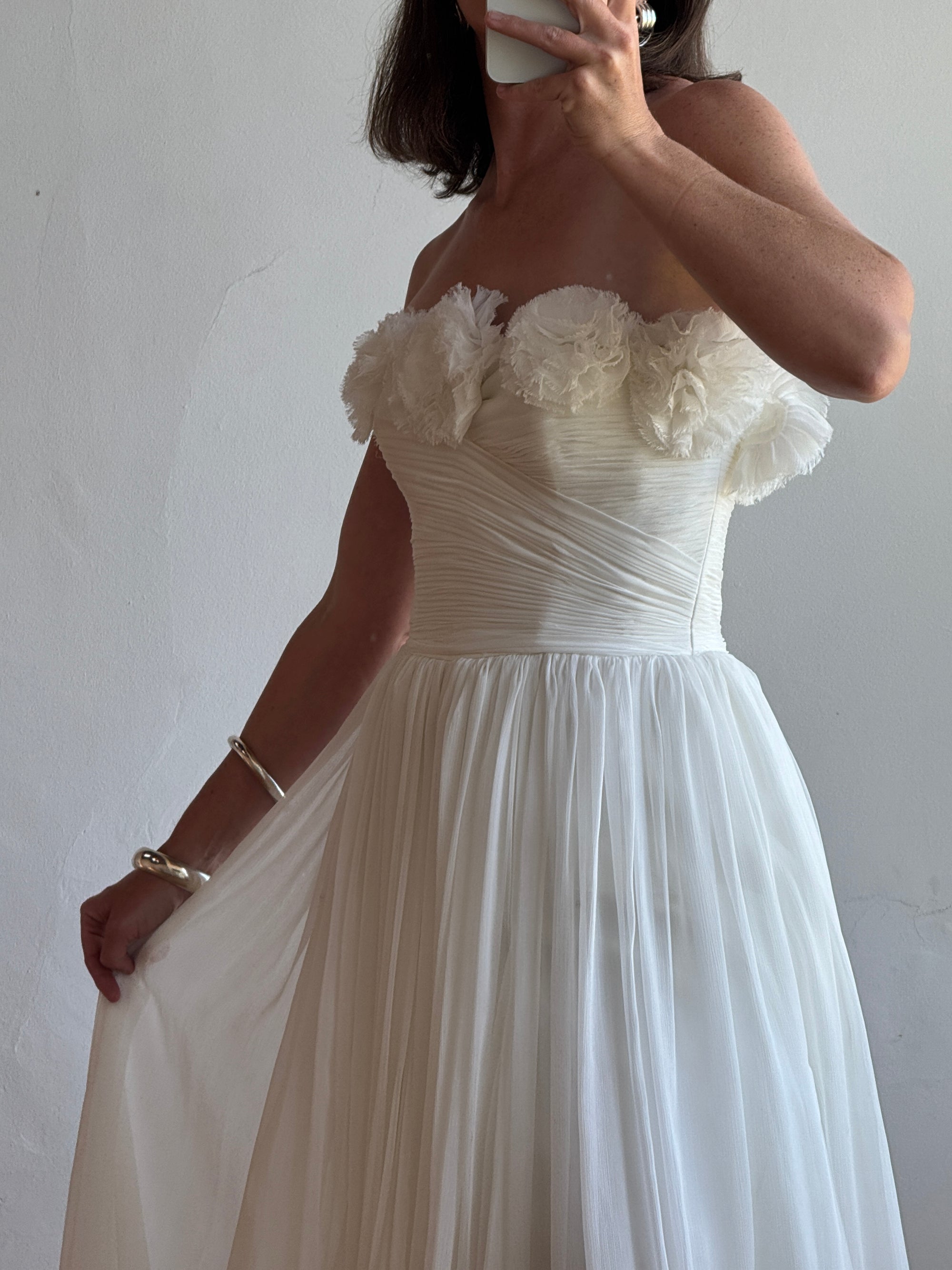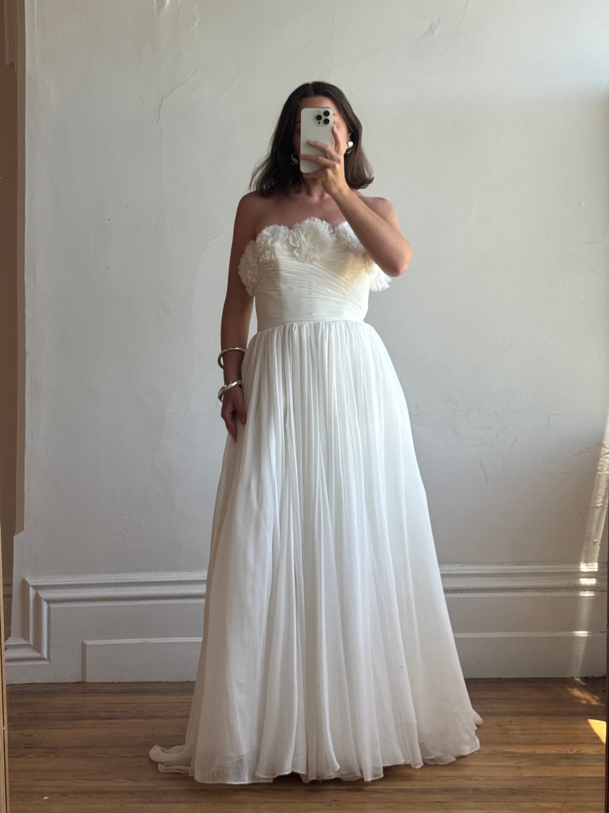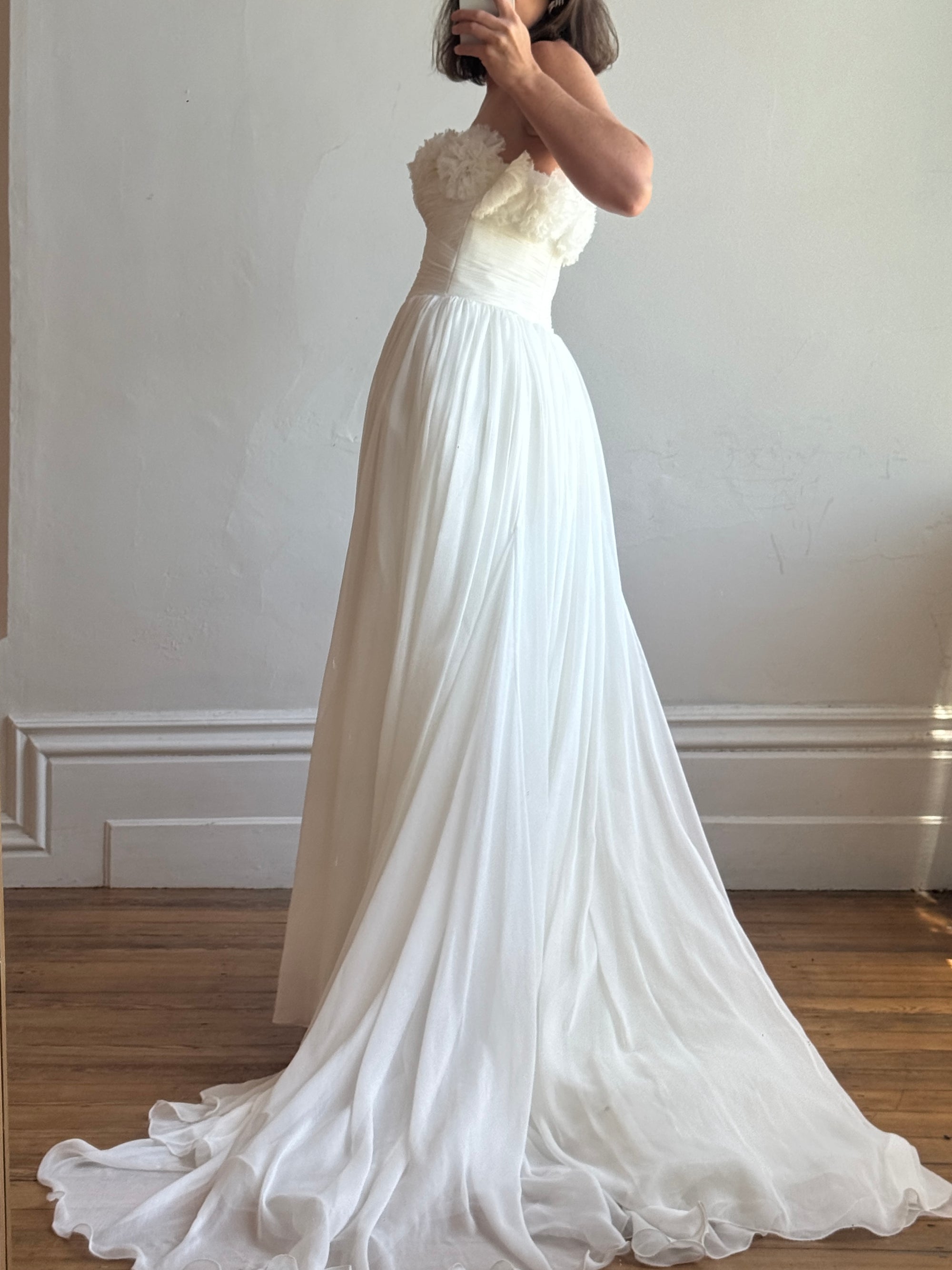 Vintage Y2K Cupcake Strapless Chiffon Wedding Gown