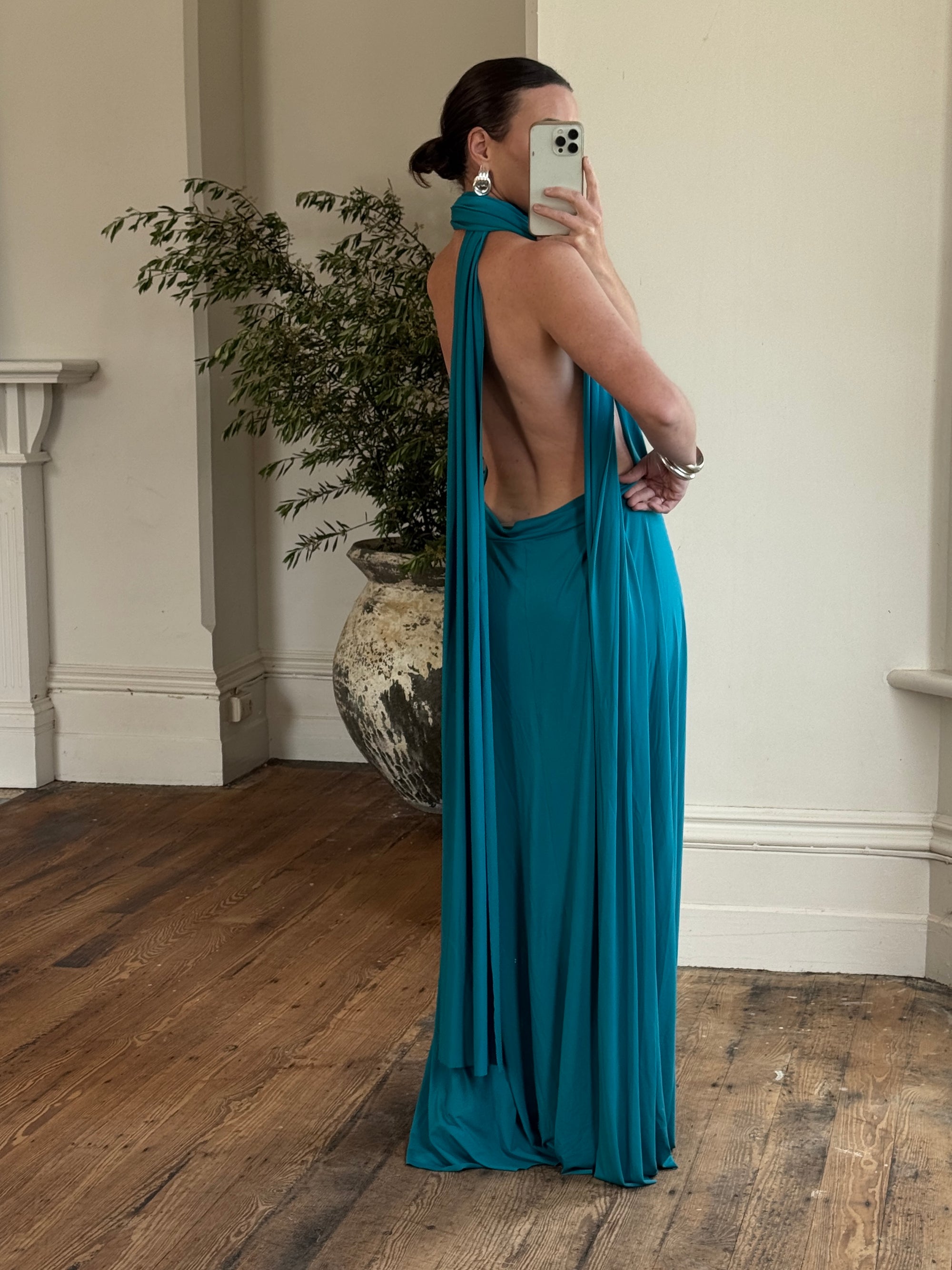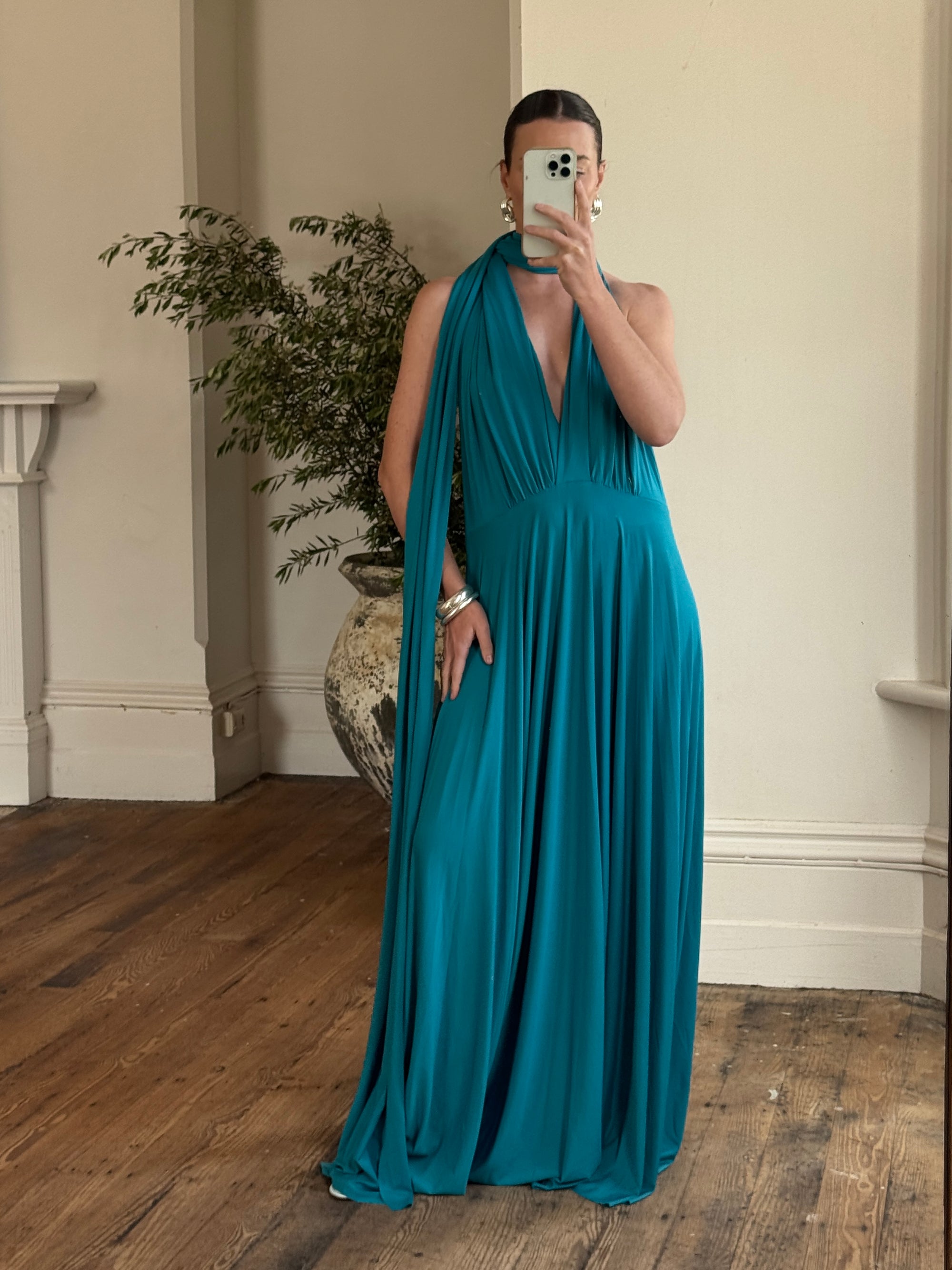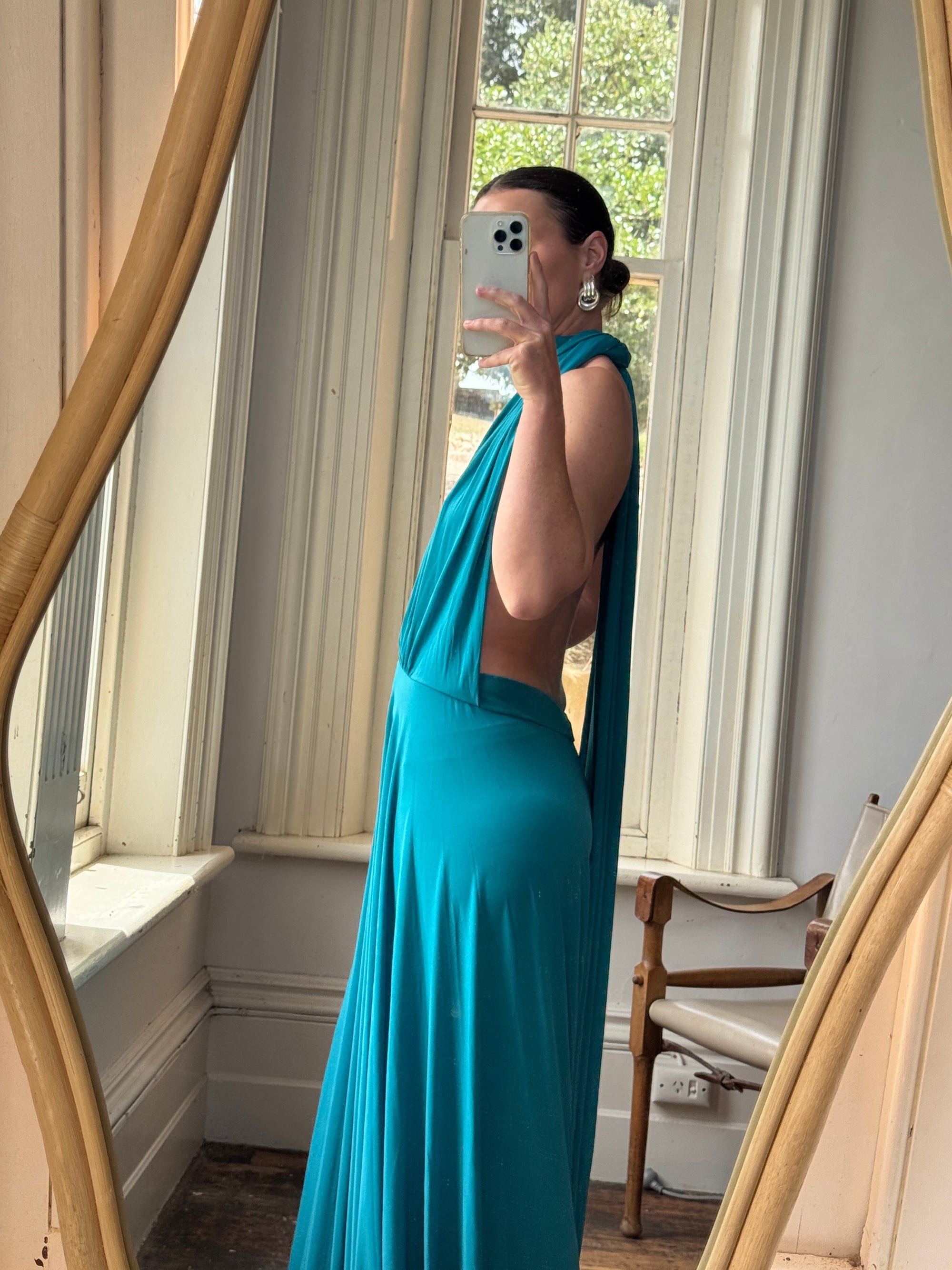 Vintage Y2K Plunging Jersey Multiwear Maxi Dress Teal
