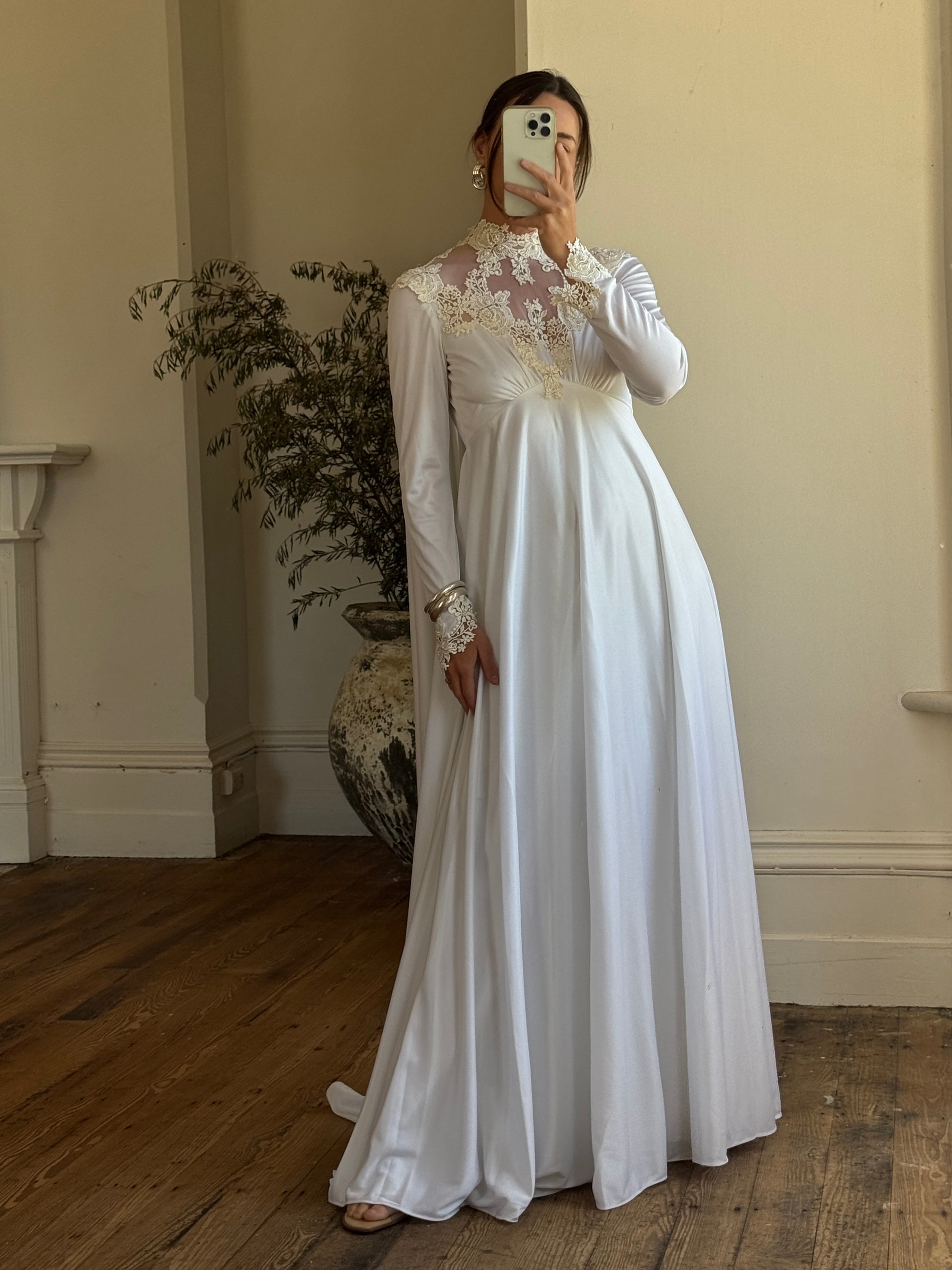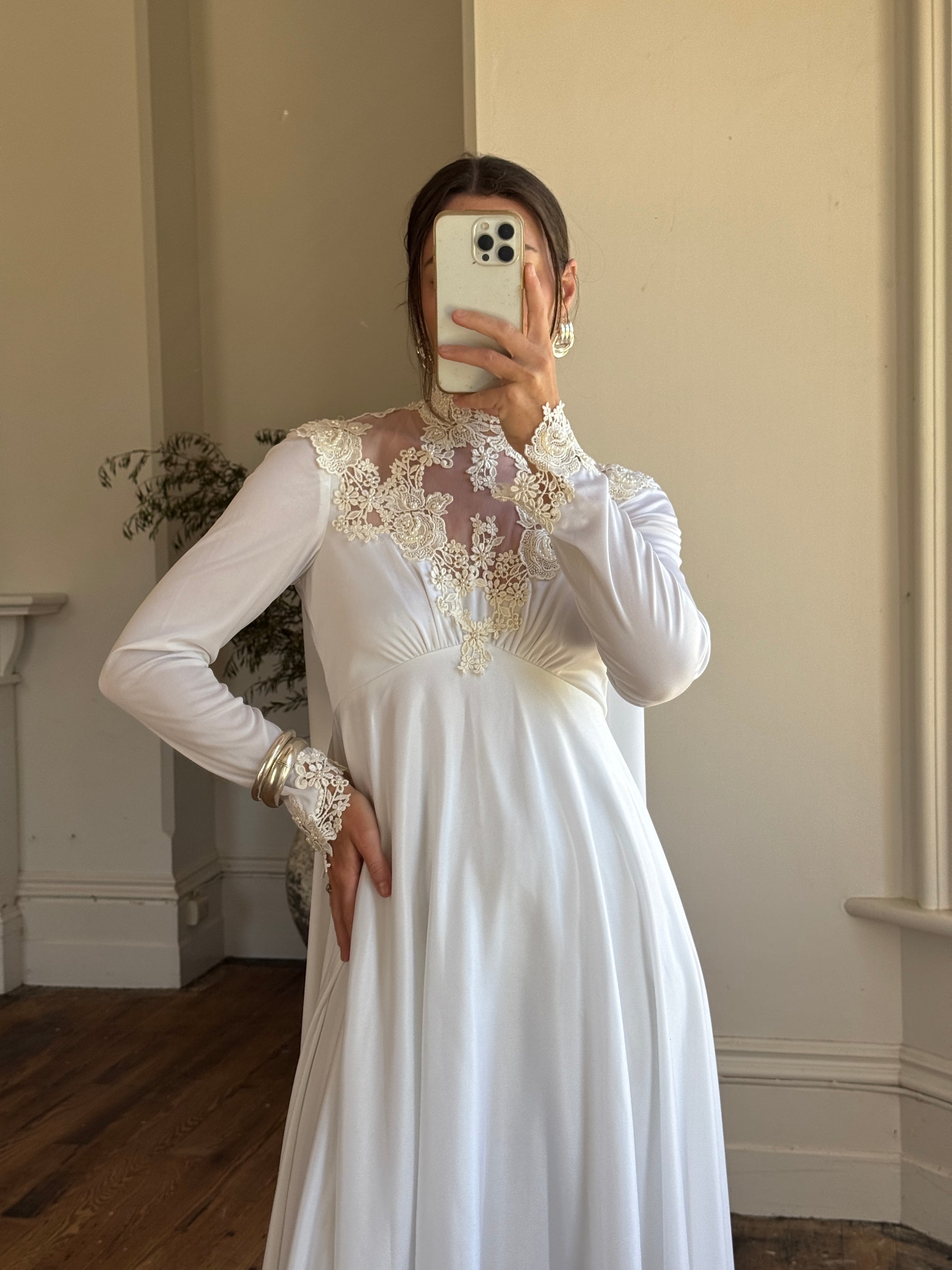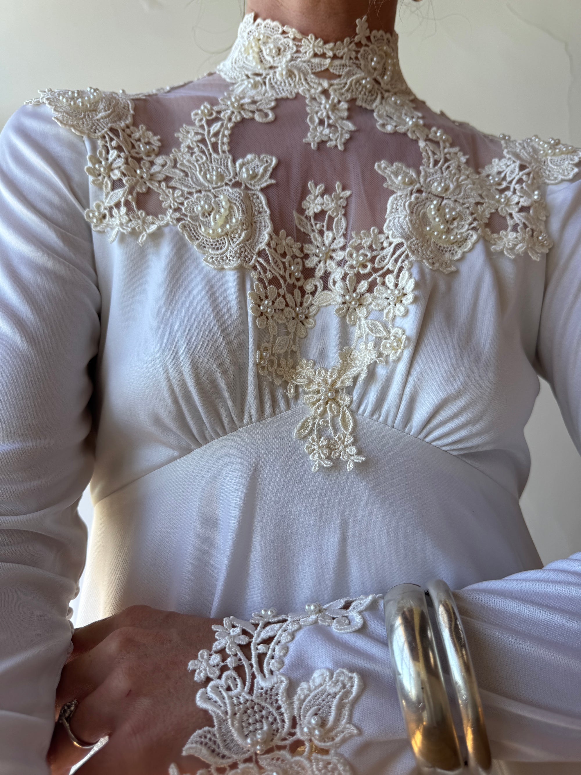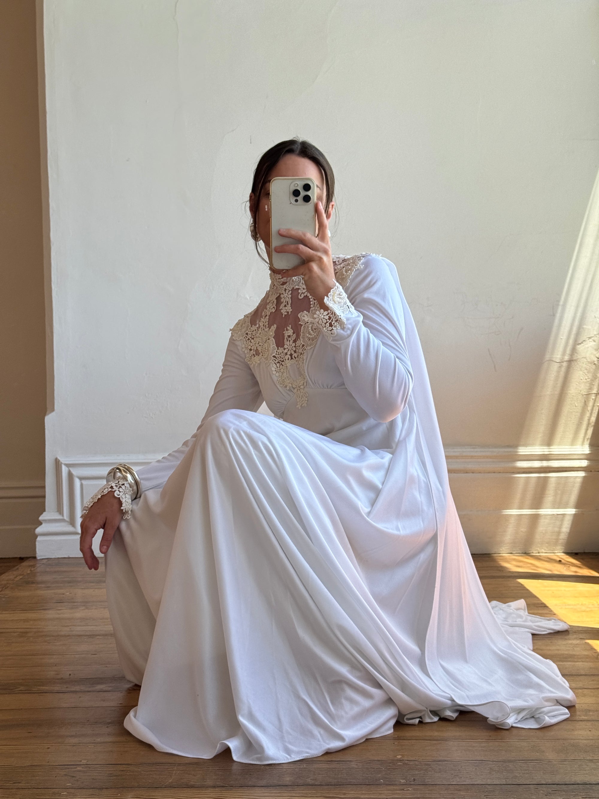 Vintage 60s Jersey and Lace Cape Wedding Dress