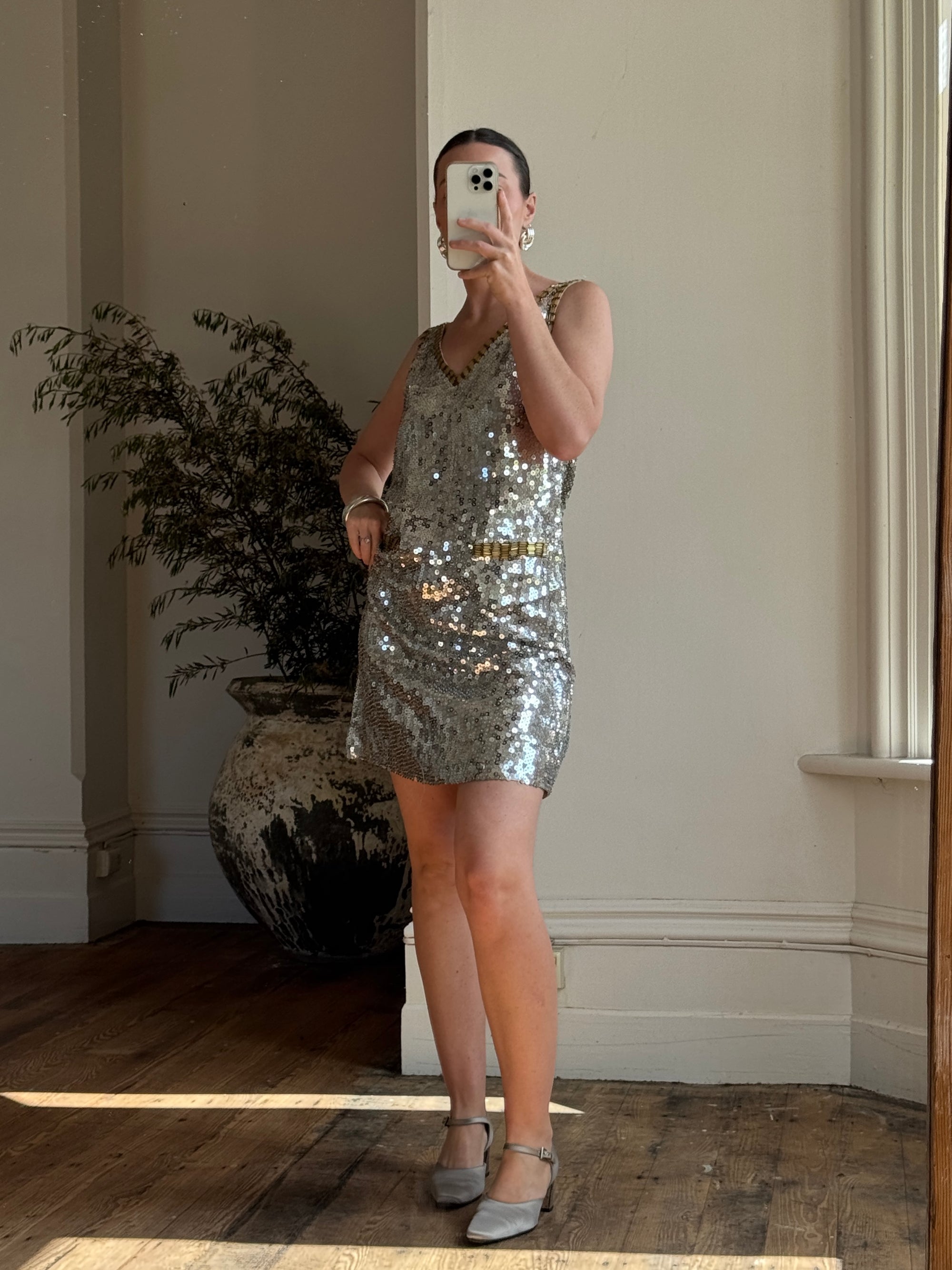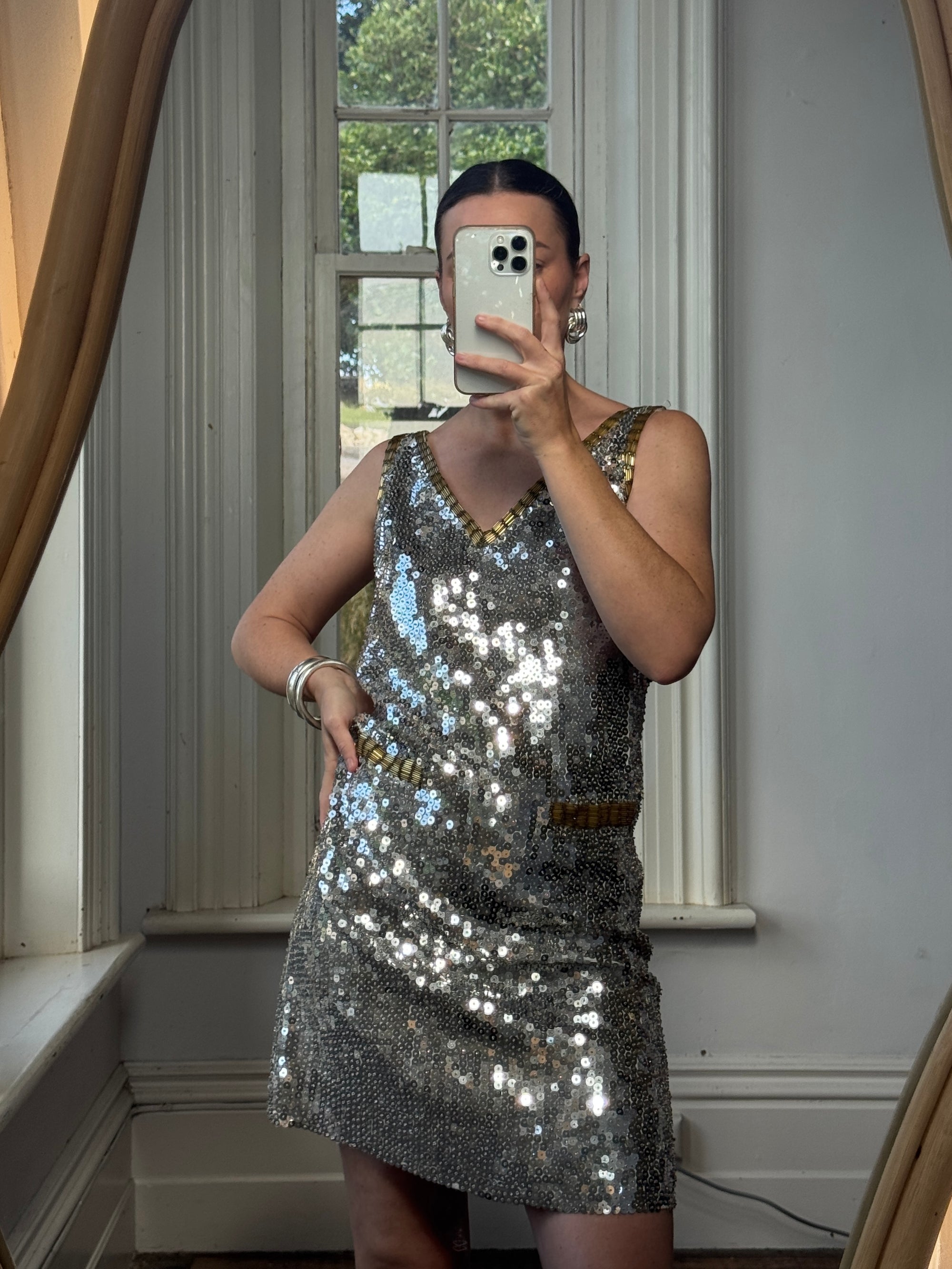 Vintage Y2K Plunging Golden Sequin Prom Dress
