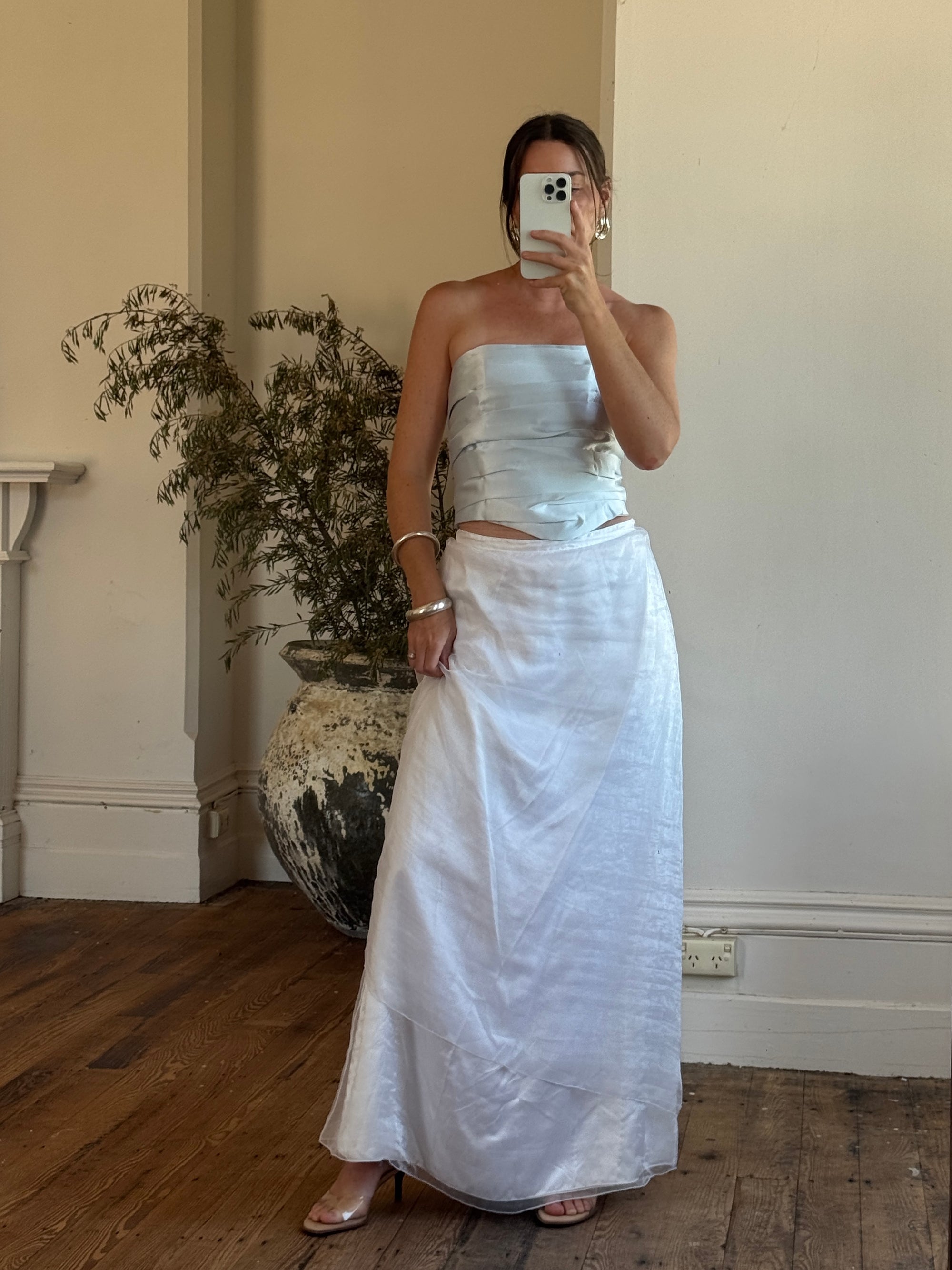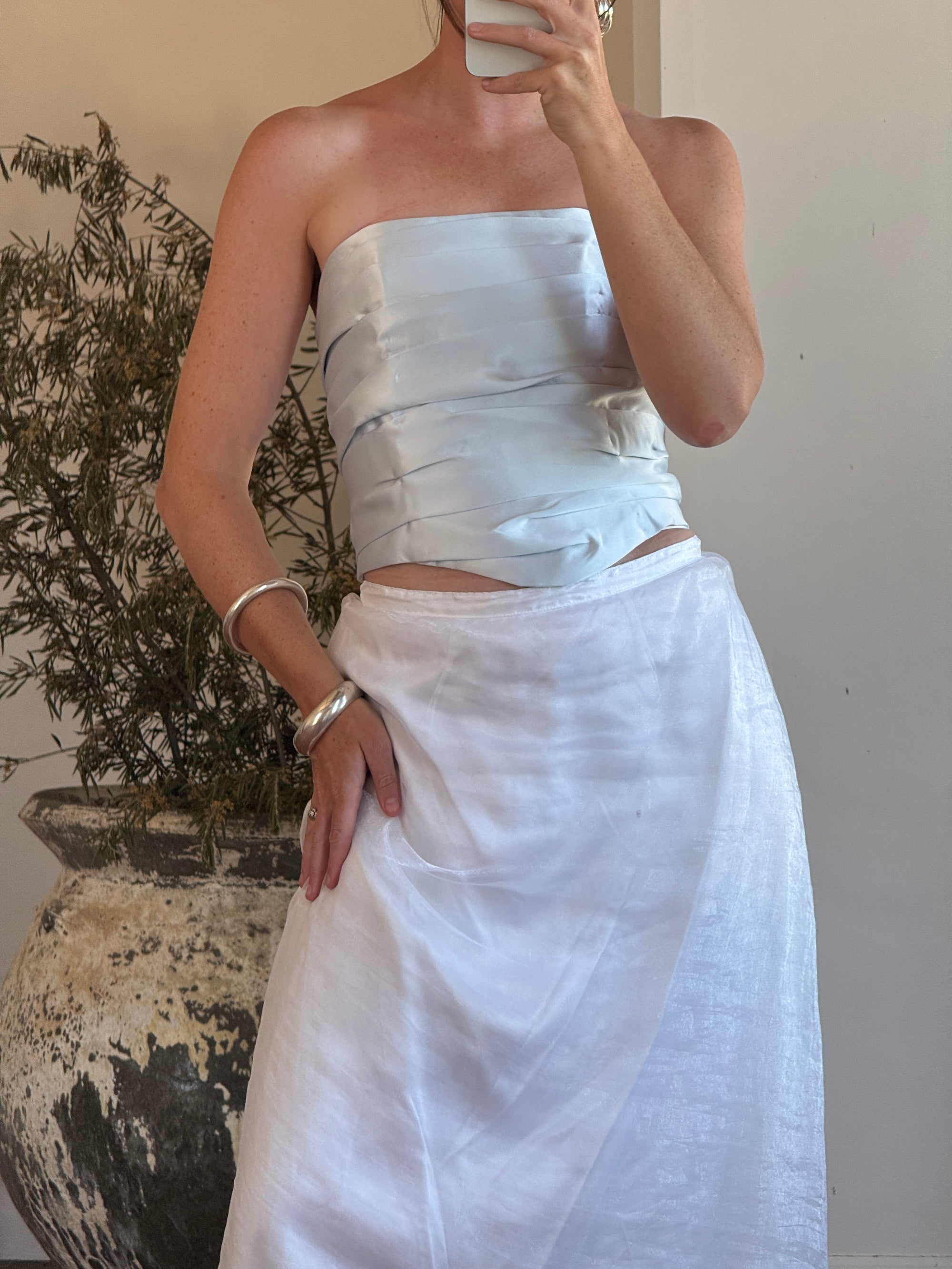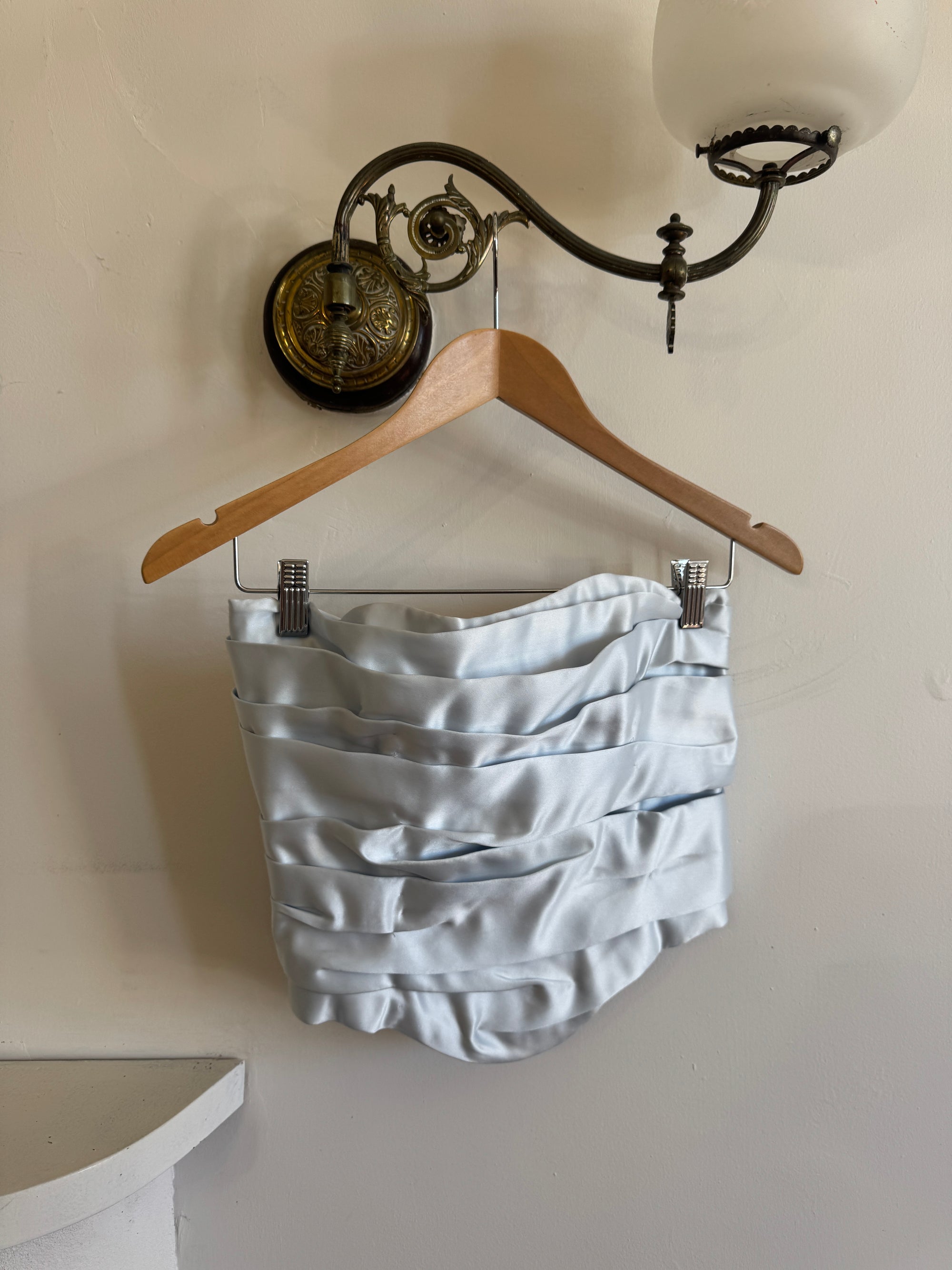 Vintage 90s Baby Blue Satin Gathered Corset Top