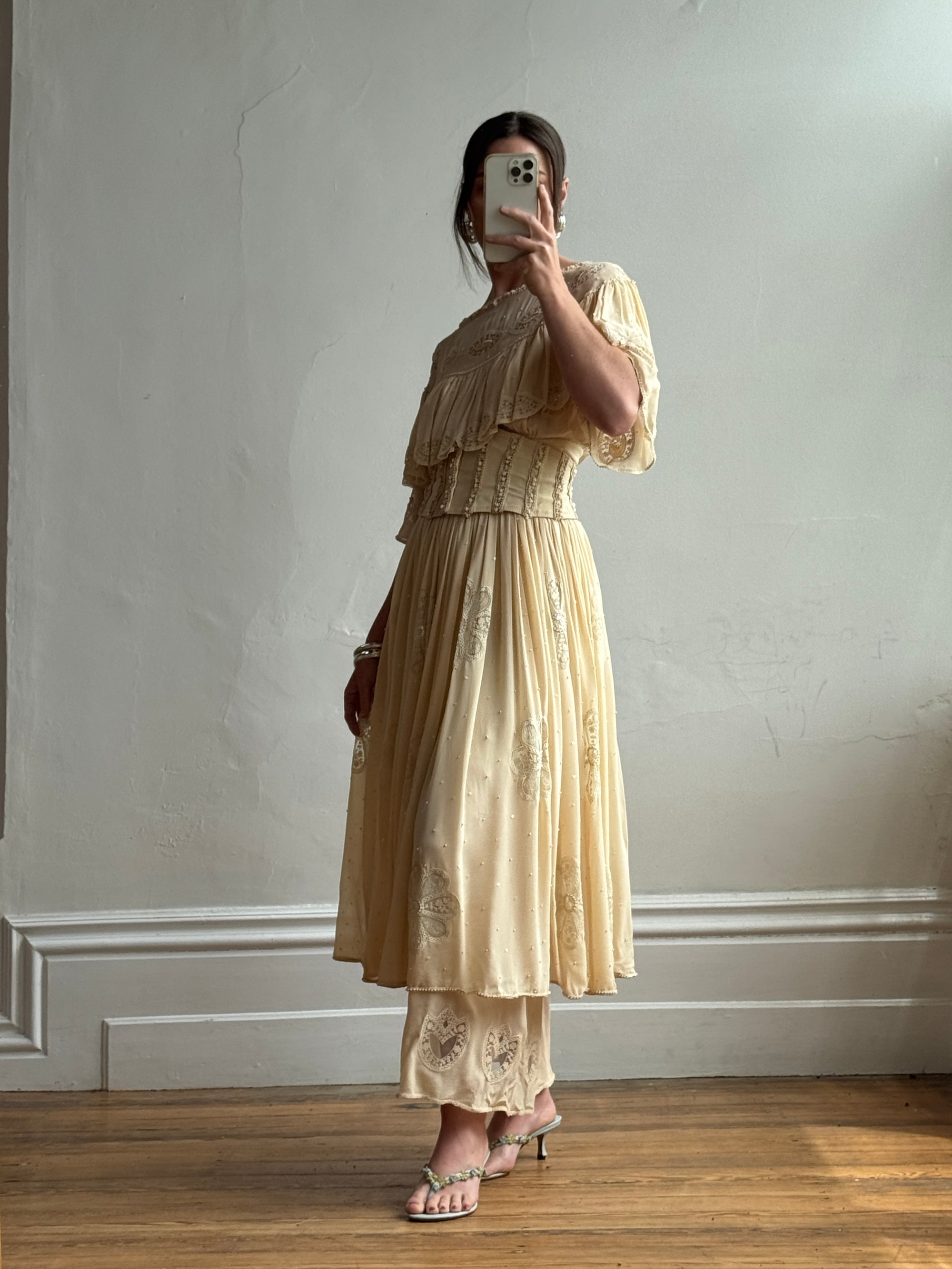 Vintage 70s Karl Lagerfeld for Chloe Pure Silk Tiered Corset Dress