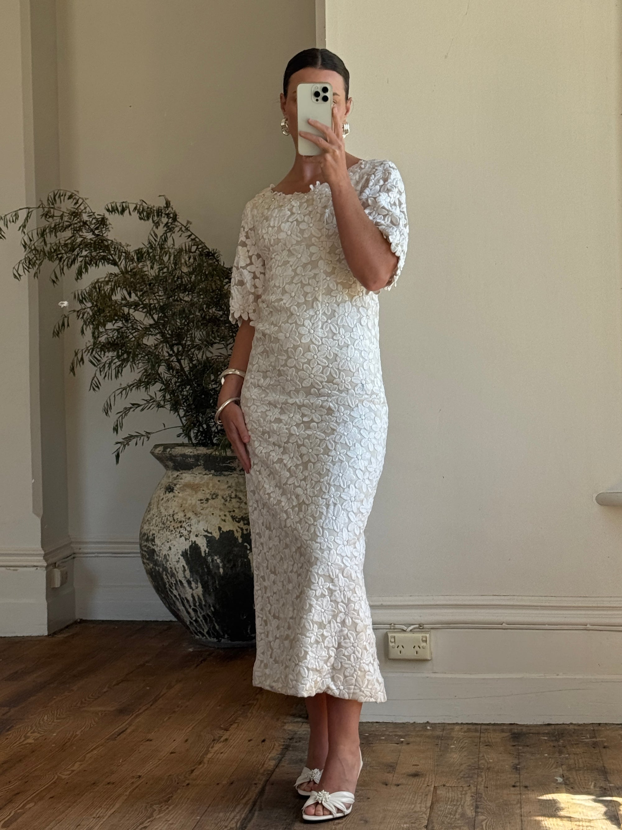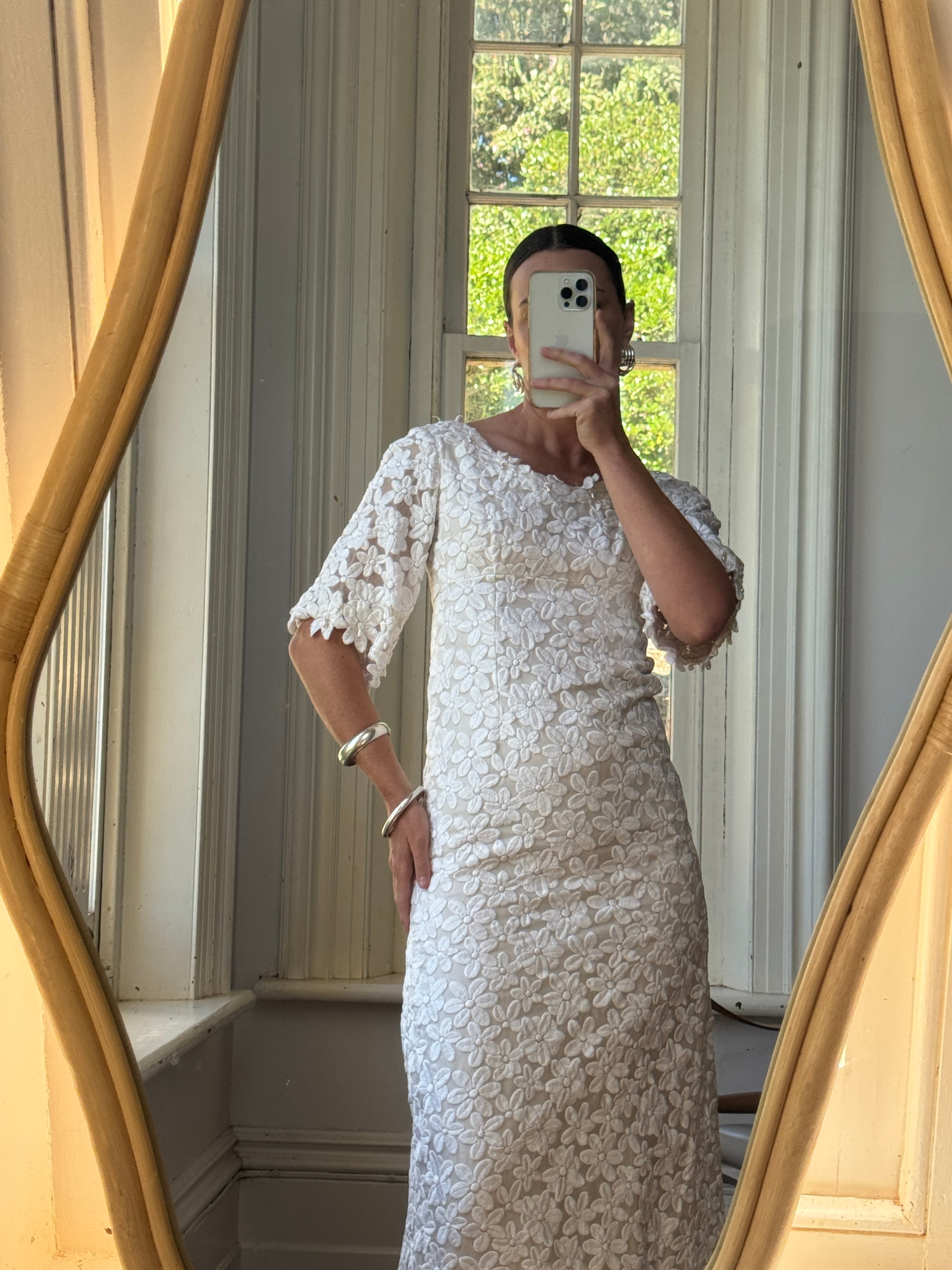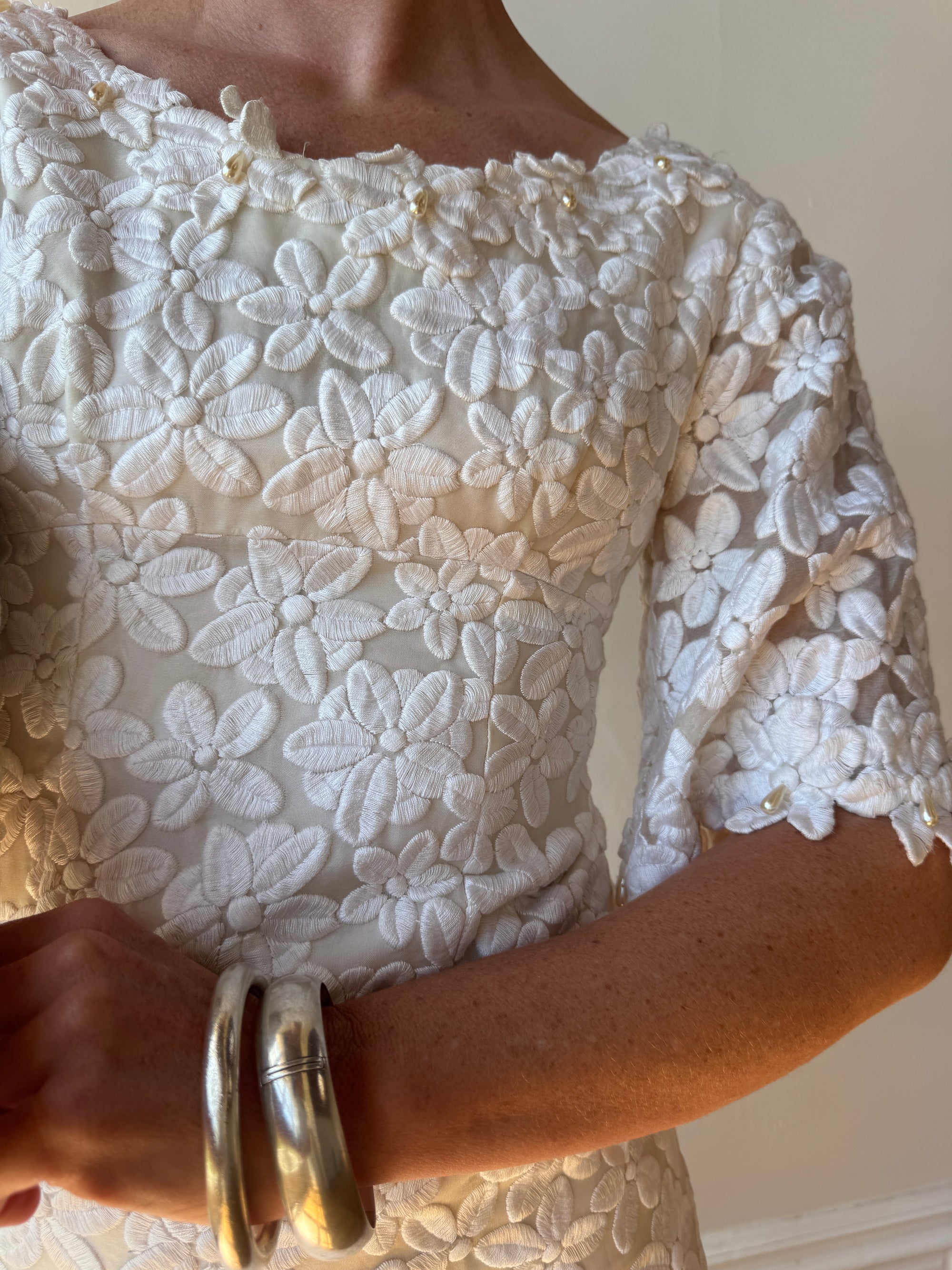 Vintage 60s Embroidered Floral Bridal Midi
