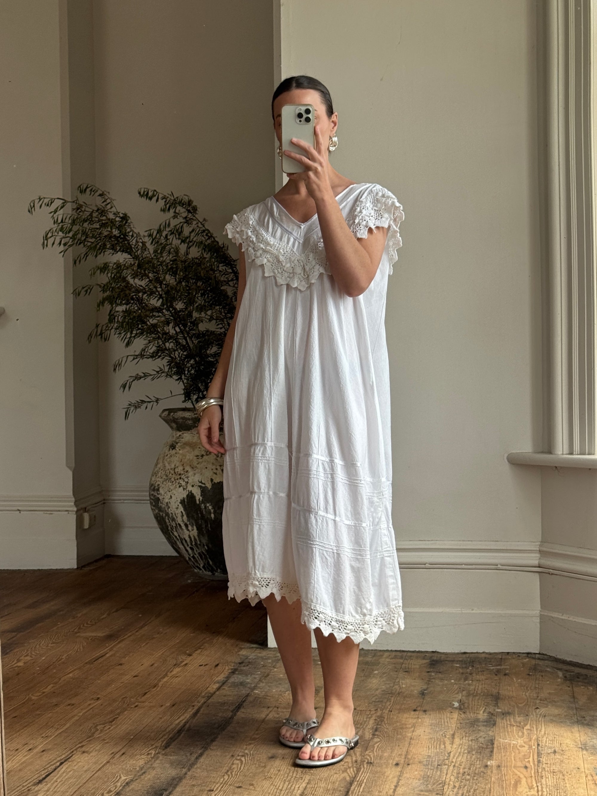 Vintage 40s Cotton Lace Strappy Bridal Sundress