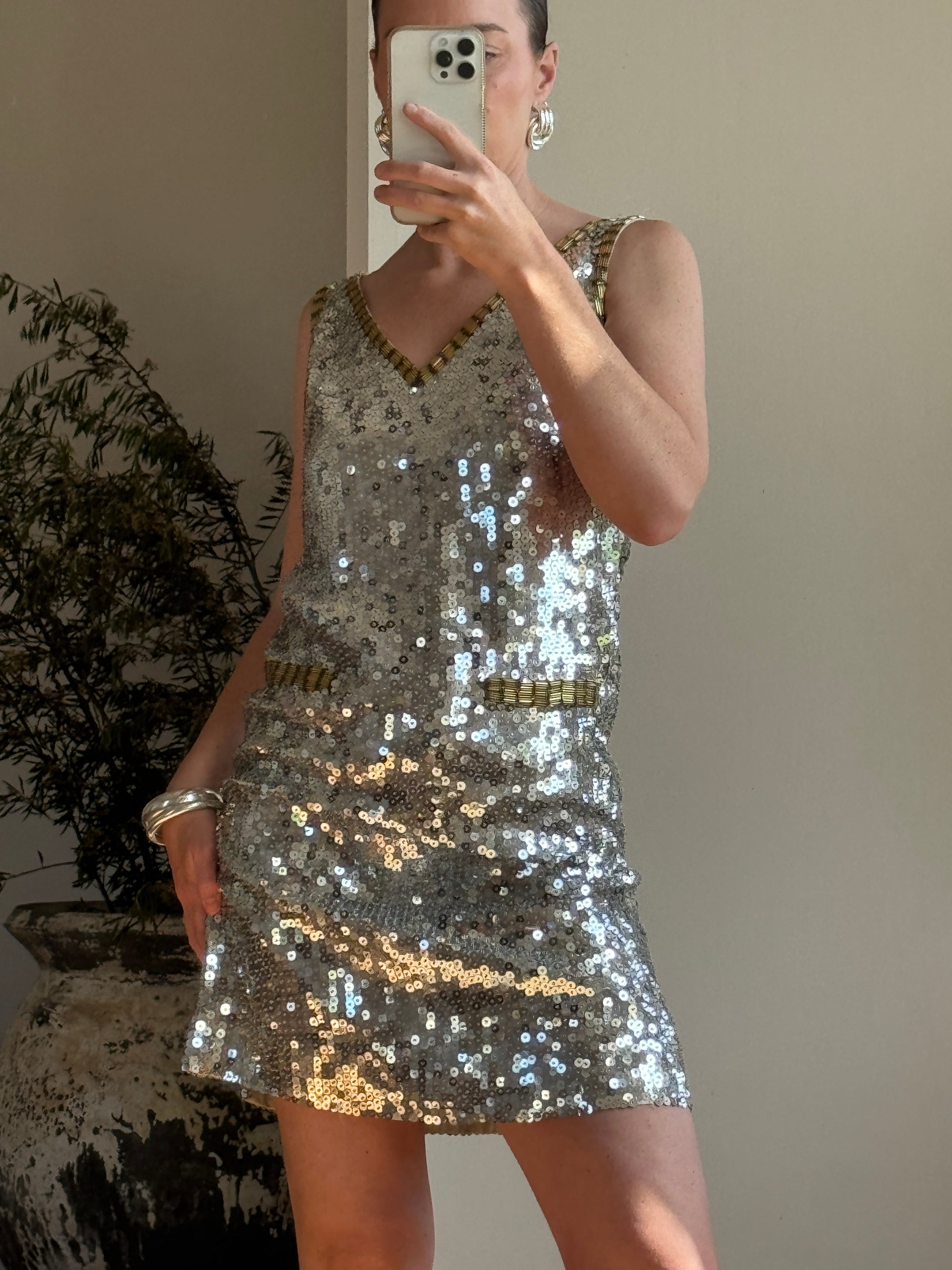 Vintage 90s Pure Silk Sparkle Dress Noir