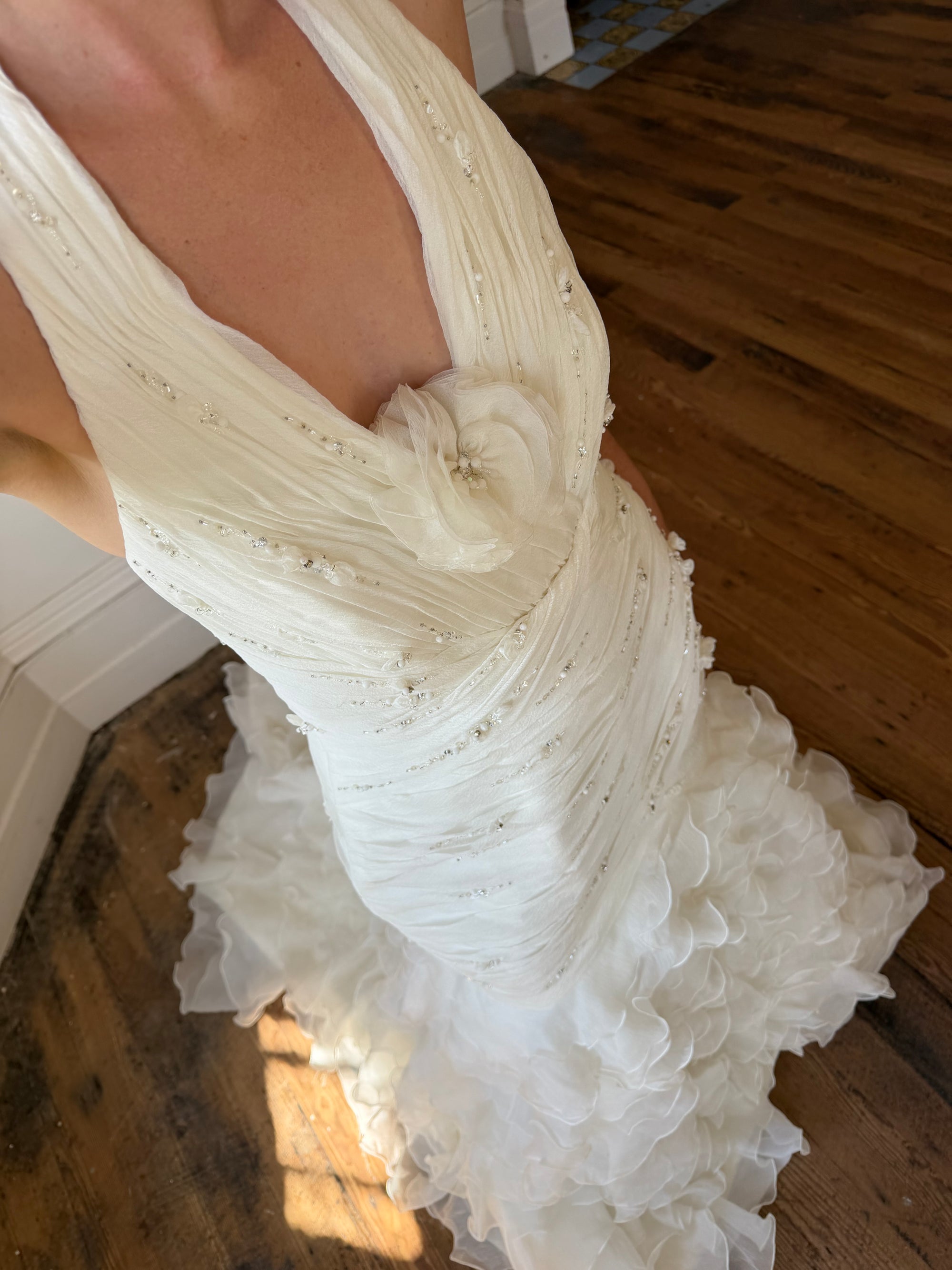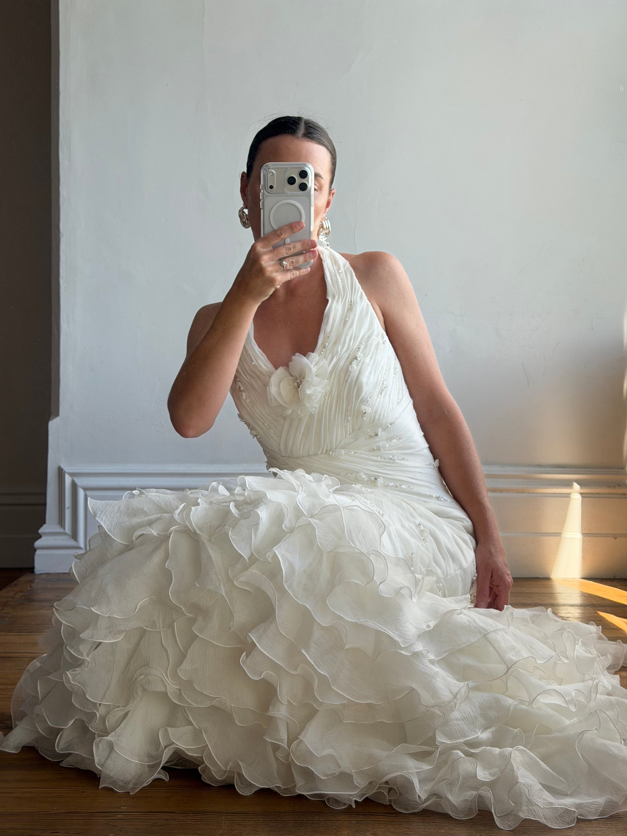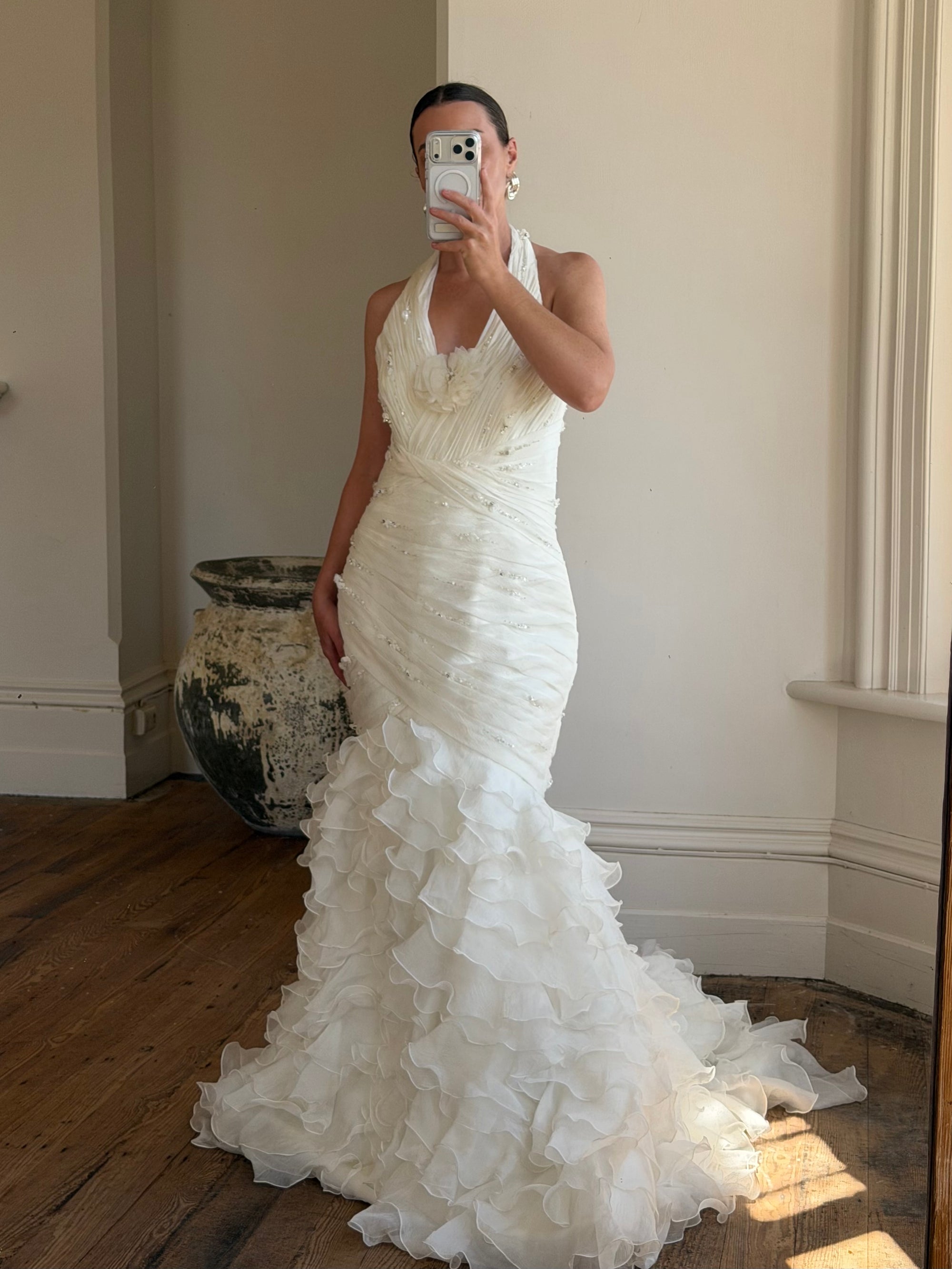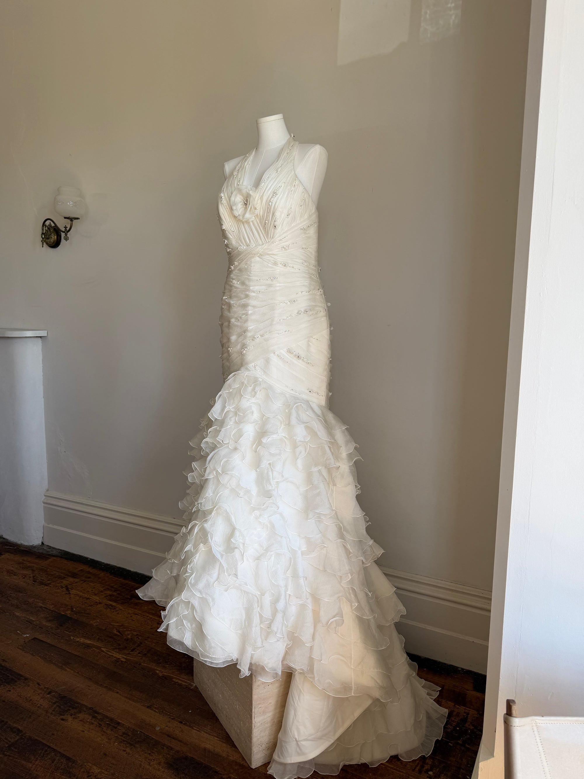 Vintage 90s Italian Plus Size Halter Ruffle Wedding Gown