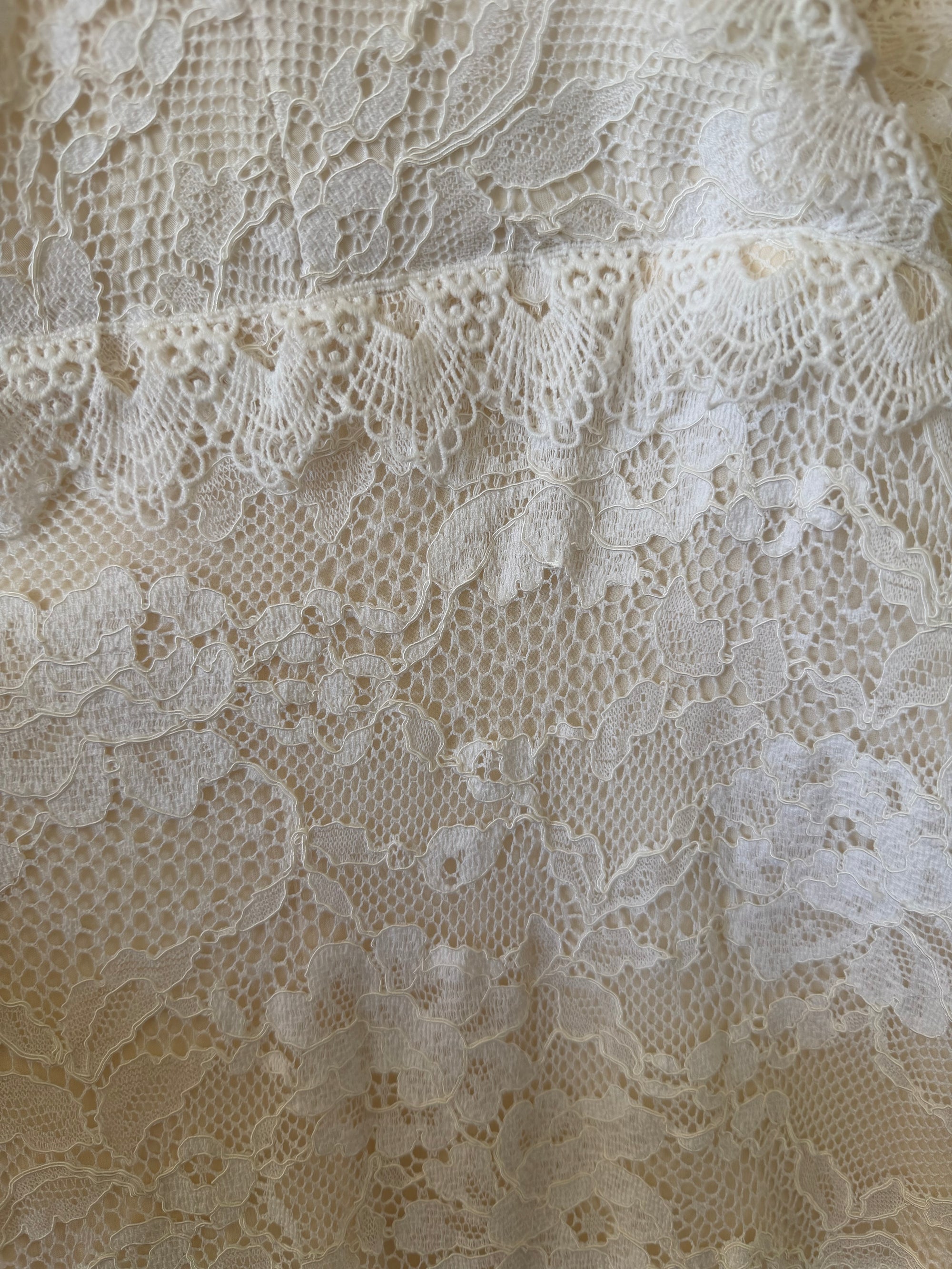 Vintage 70s Tiered Bubble Chiffon Wedding Dress