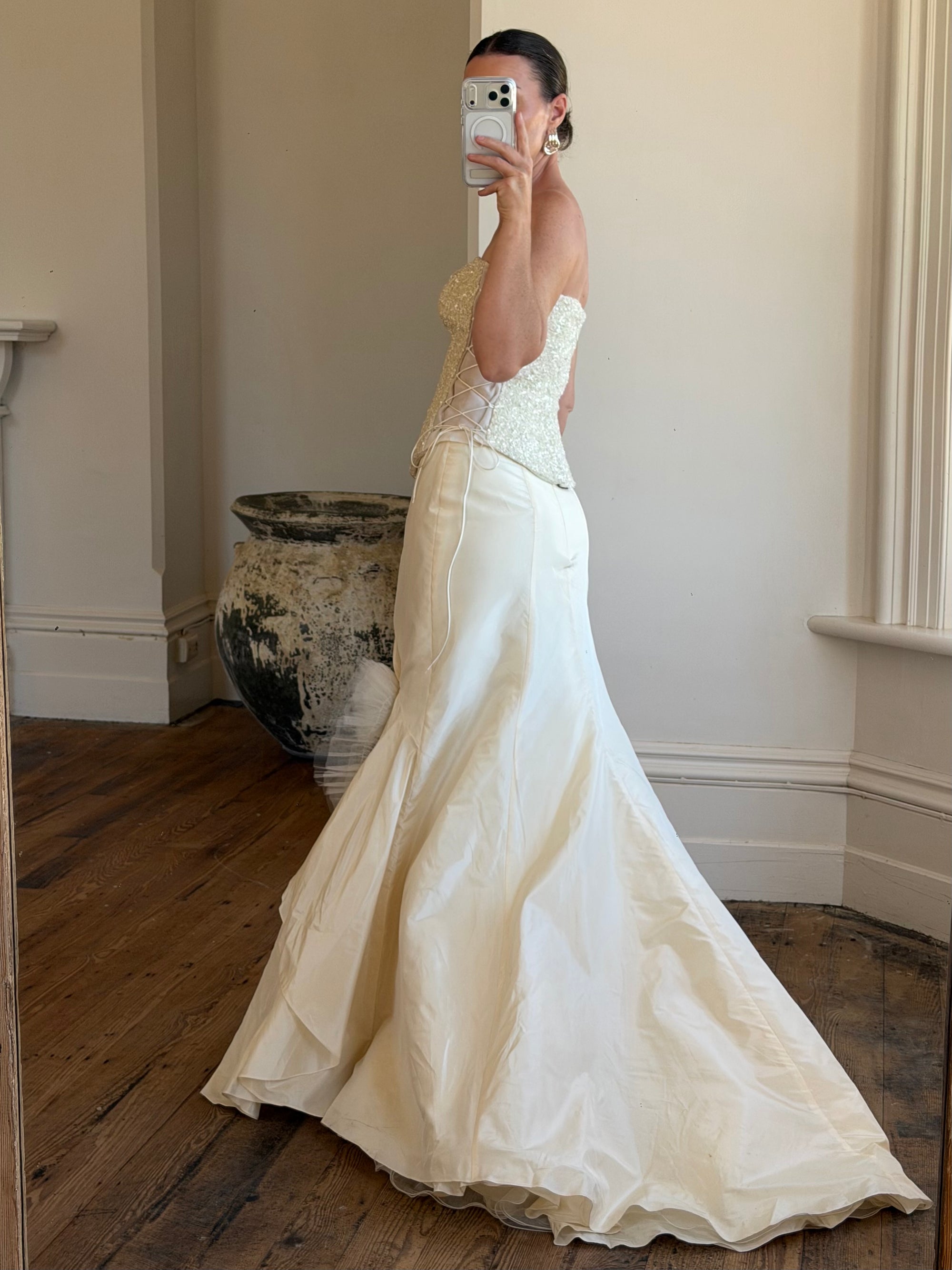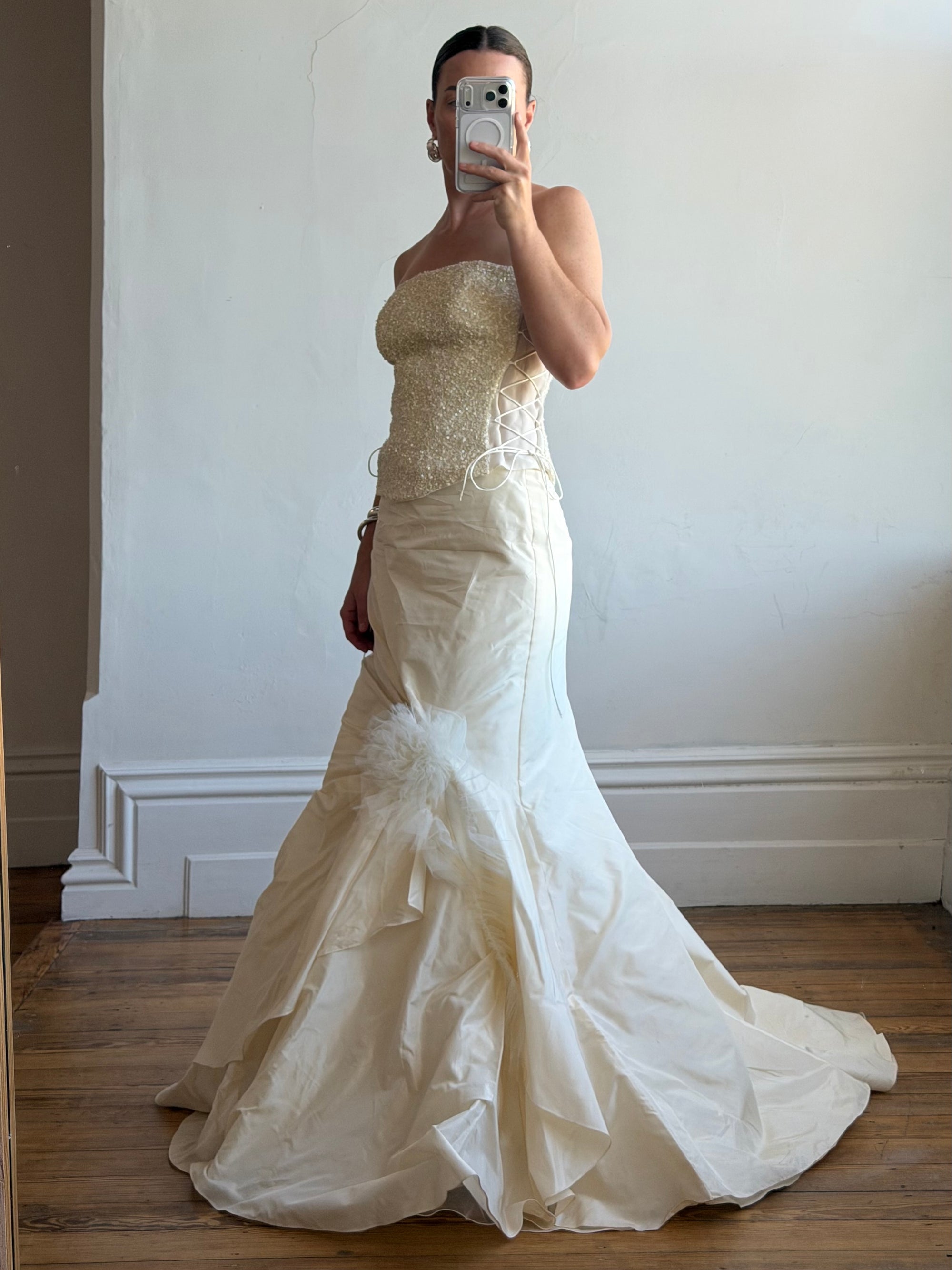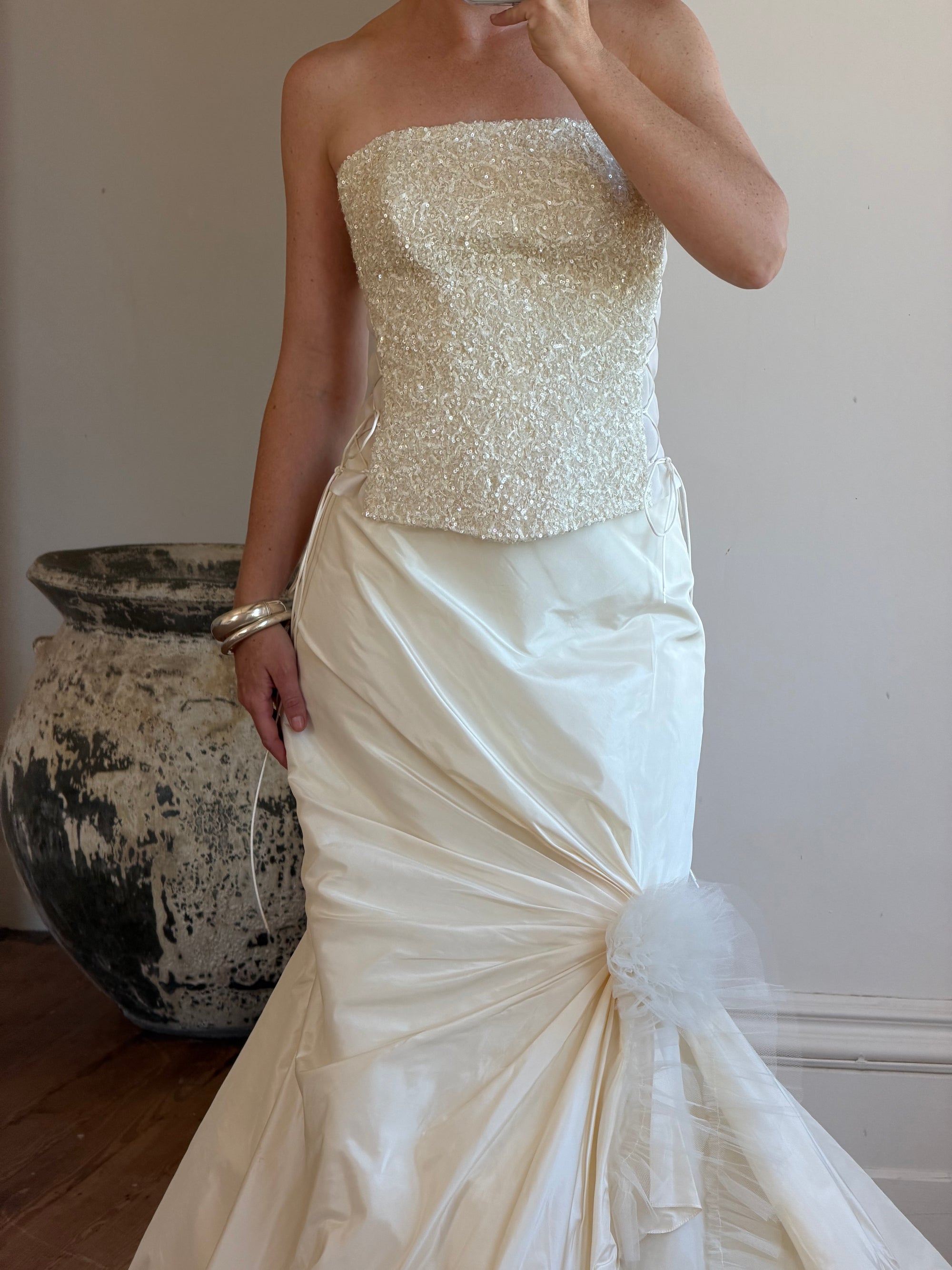 Vintage 90s Italian Pure Silk Taffeta and Sequin Bridal Set