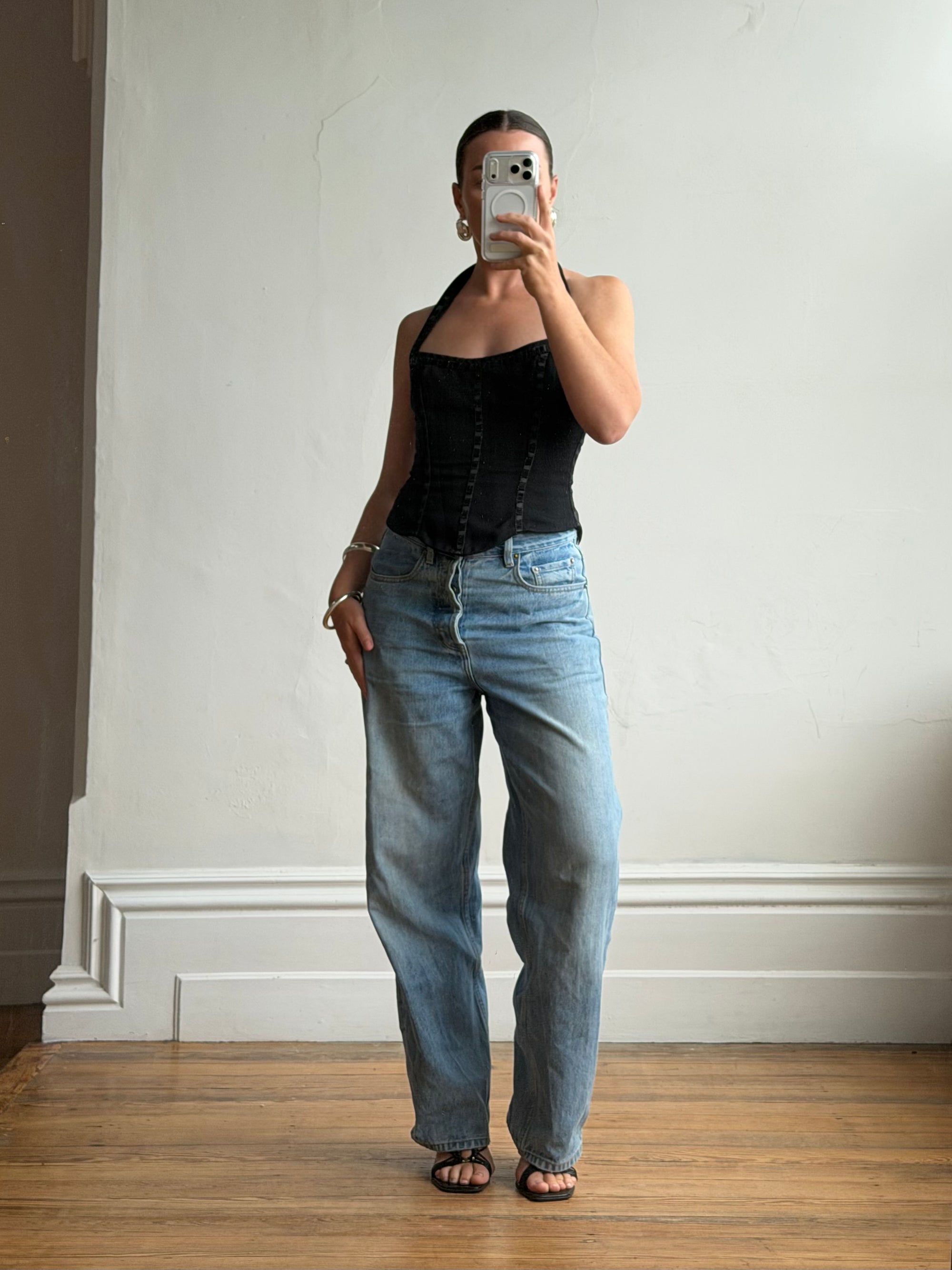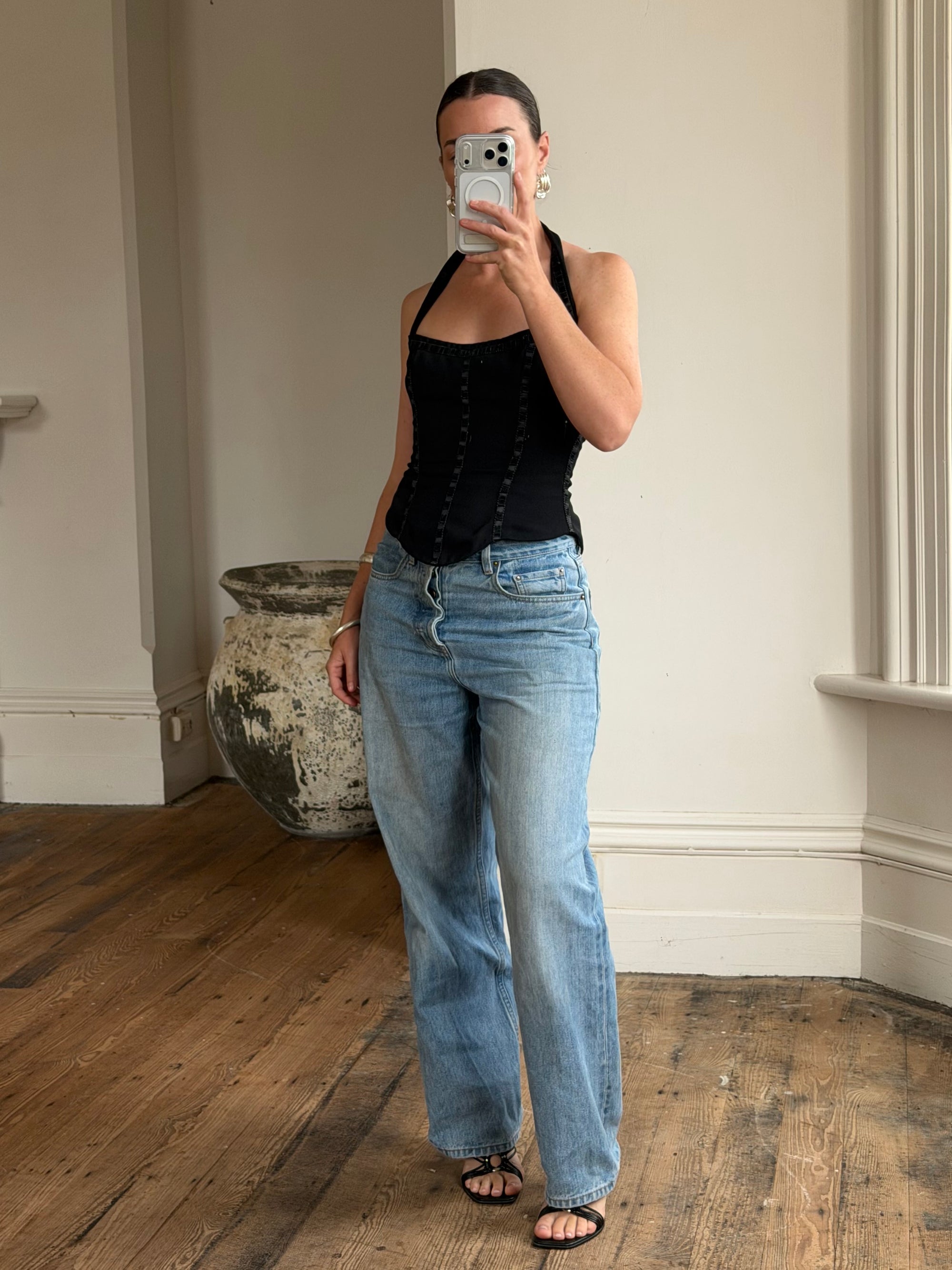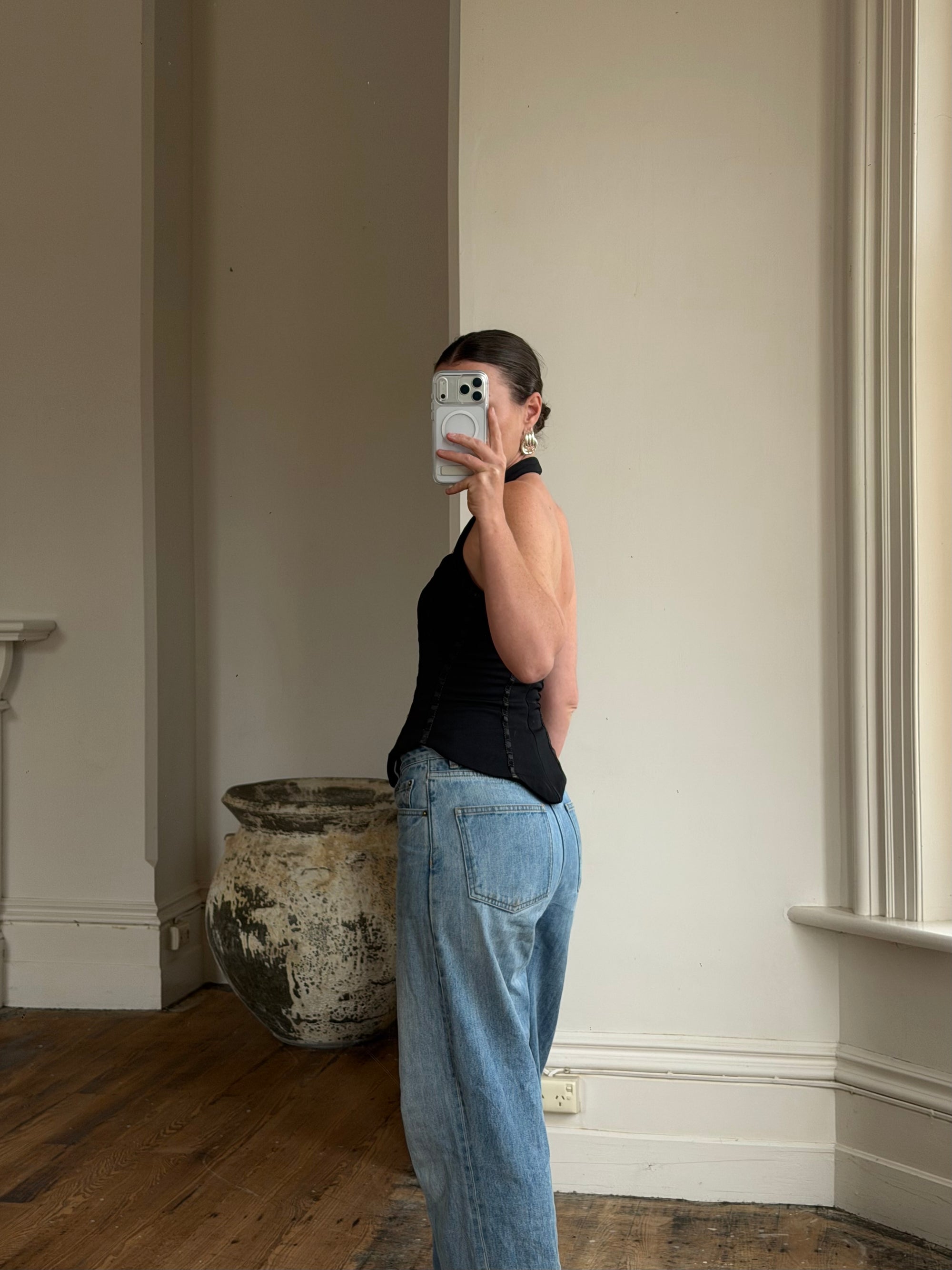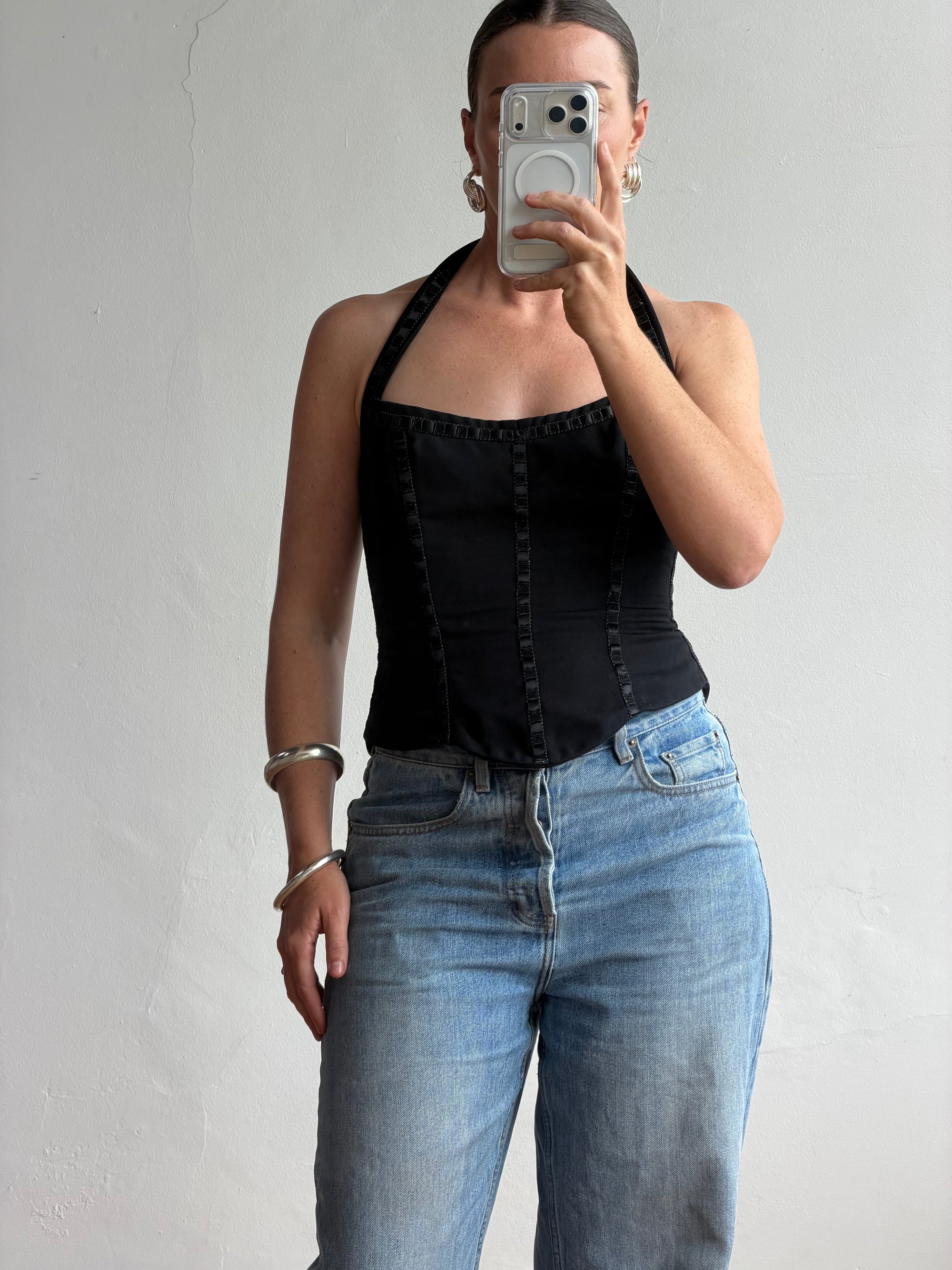 Vintage 90s Australian Made Ribbon Corset Top Noir