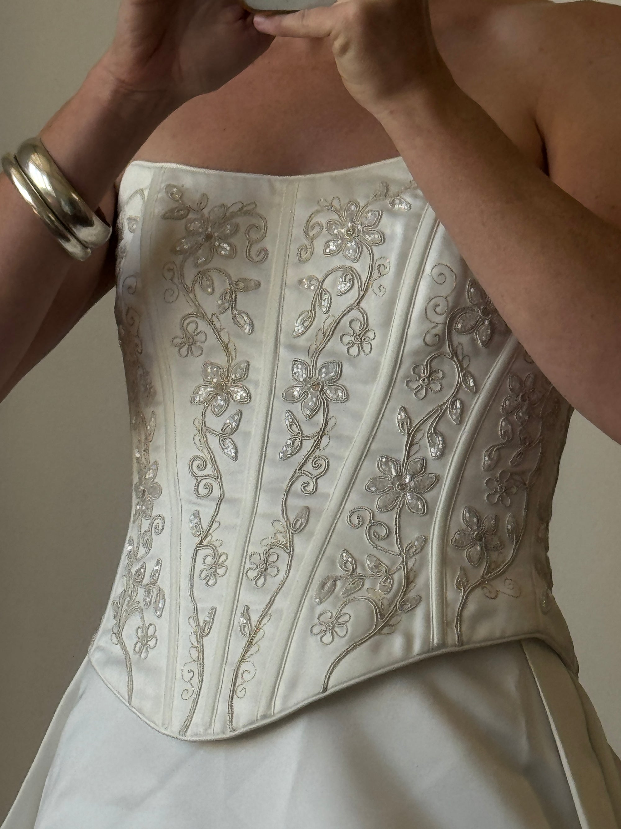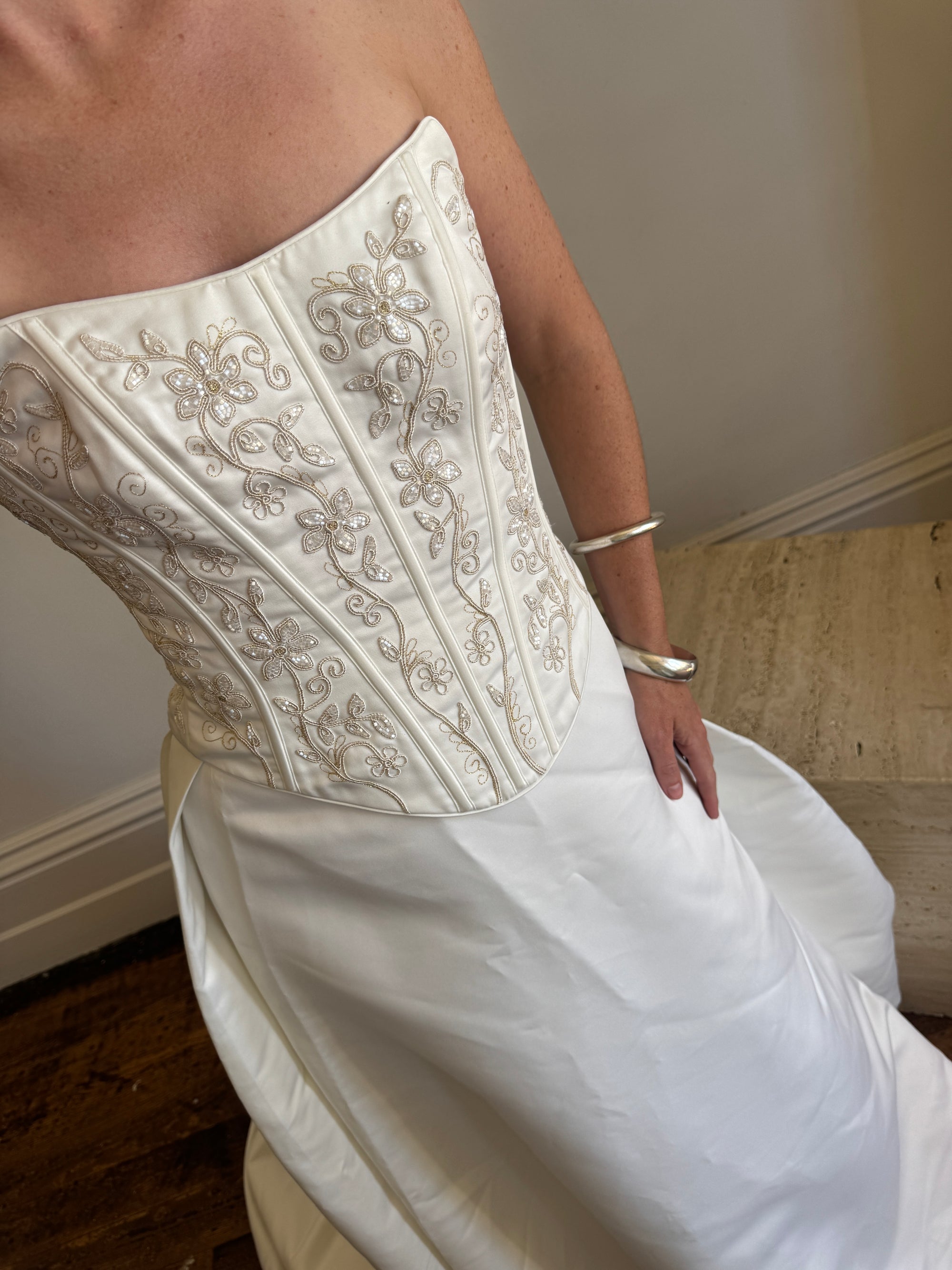 Vintage 90s Pearl Corset and Skirt Satin Bridal Set