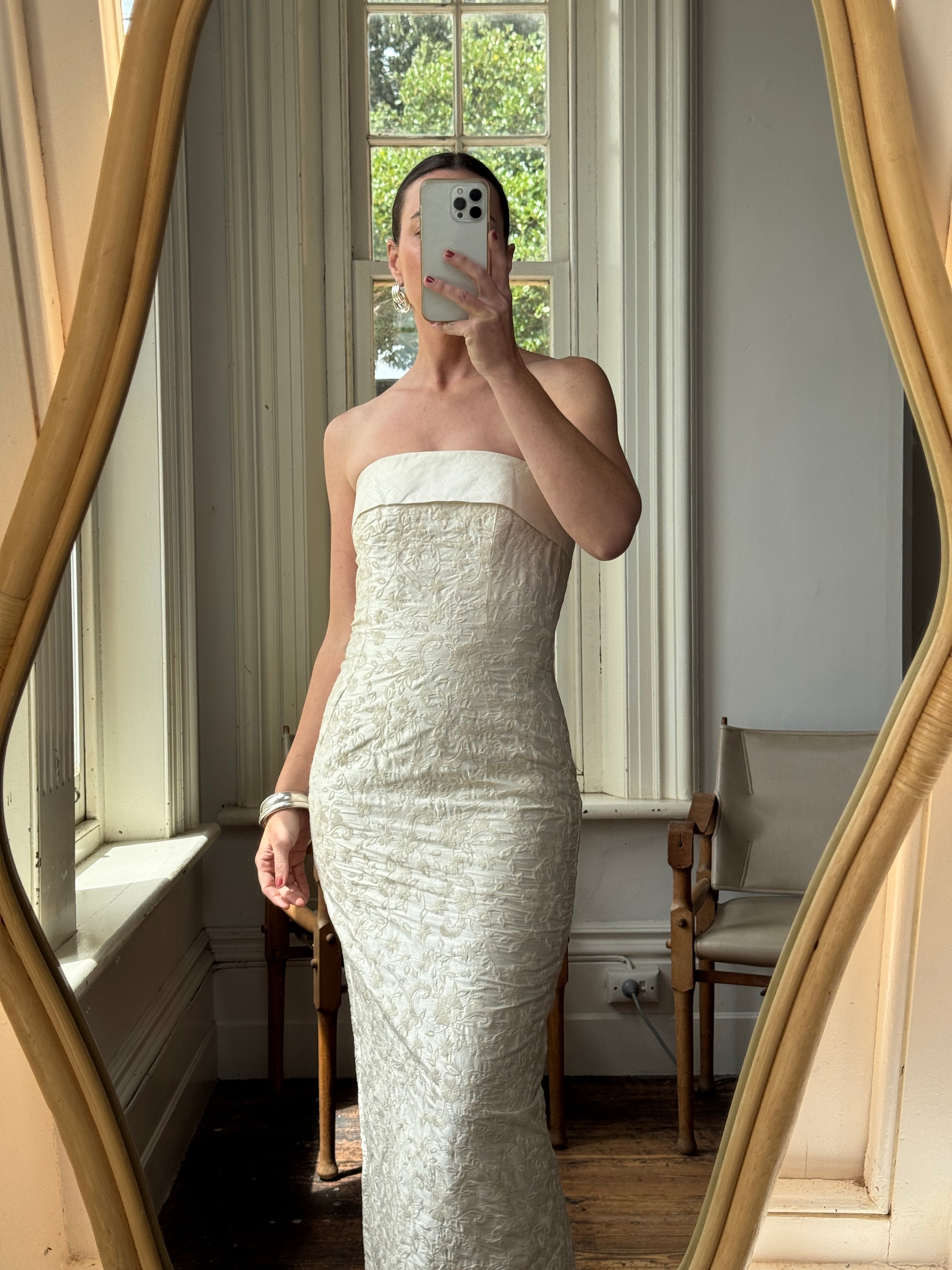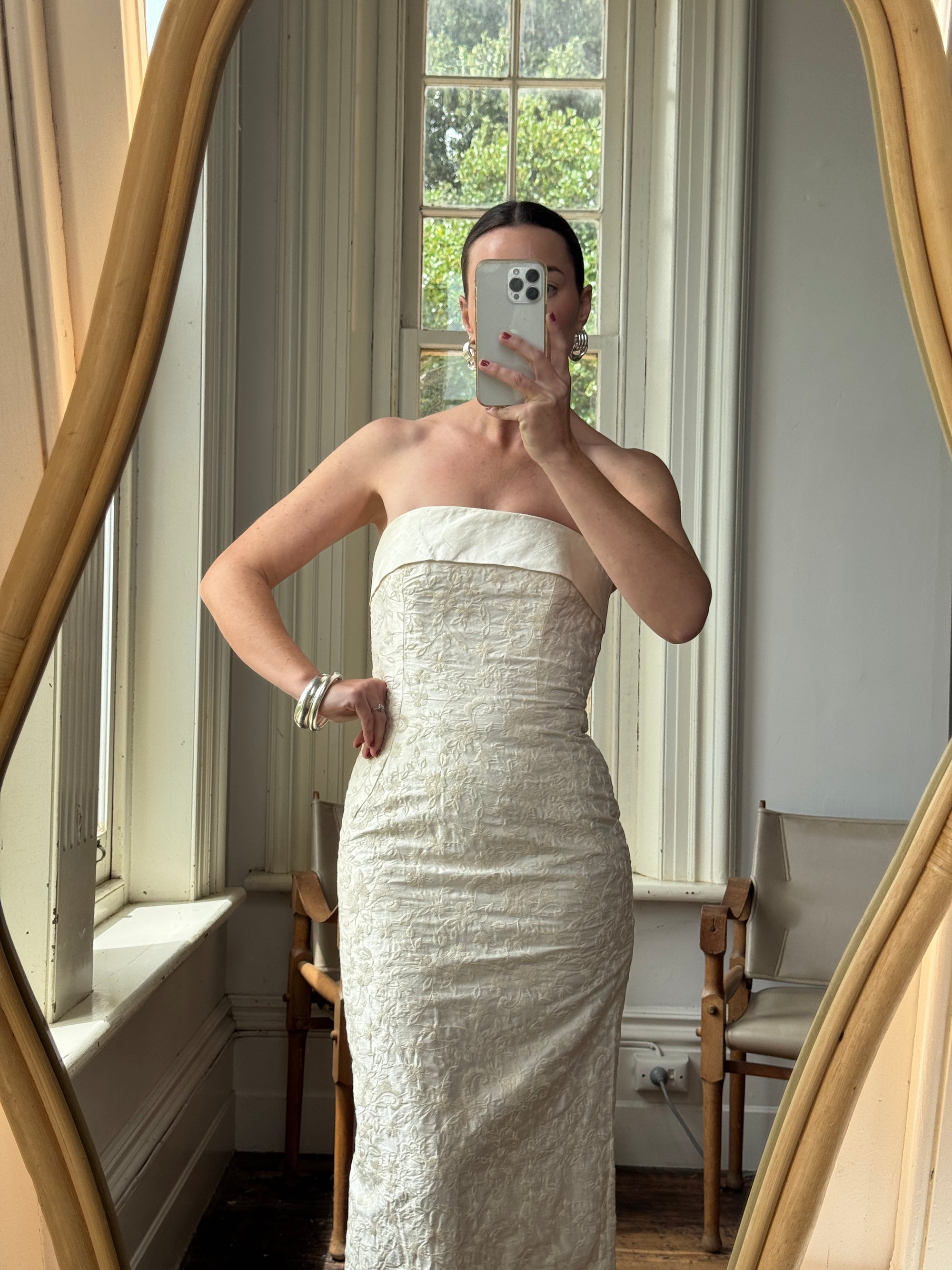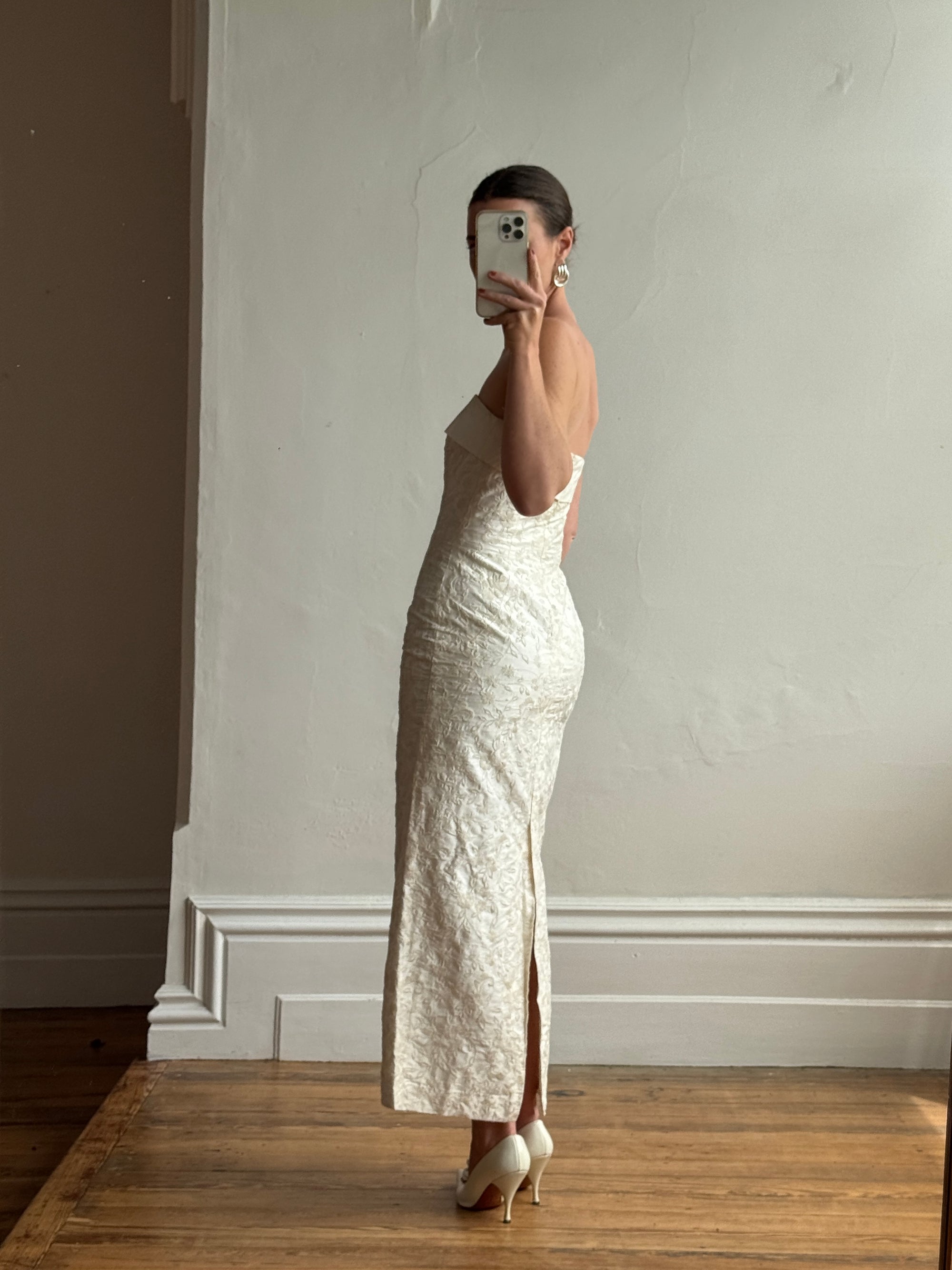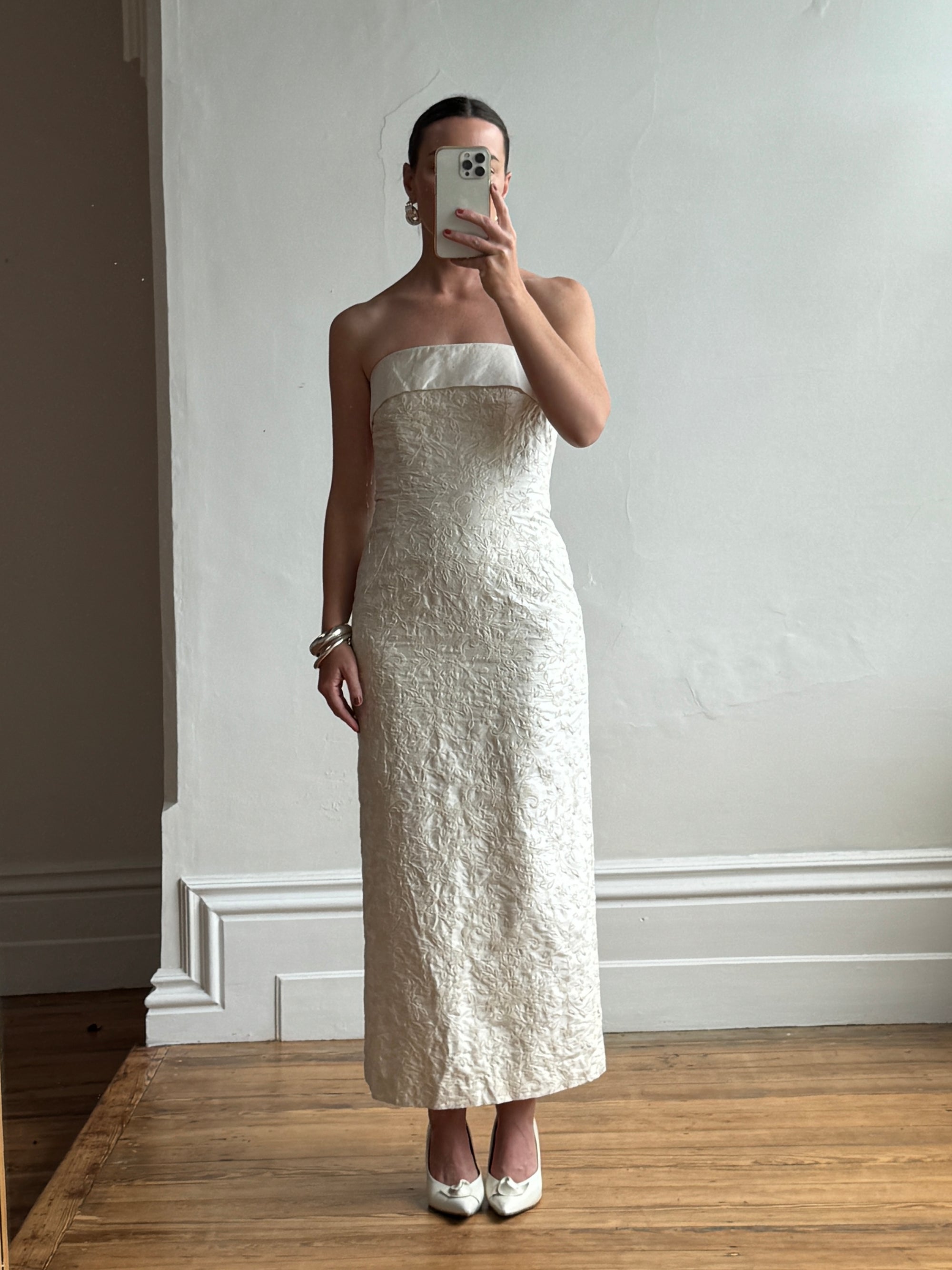 Vintage 90s Pure Silk Jacquard Strapless Bridal Midi