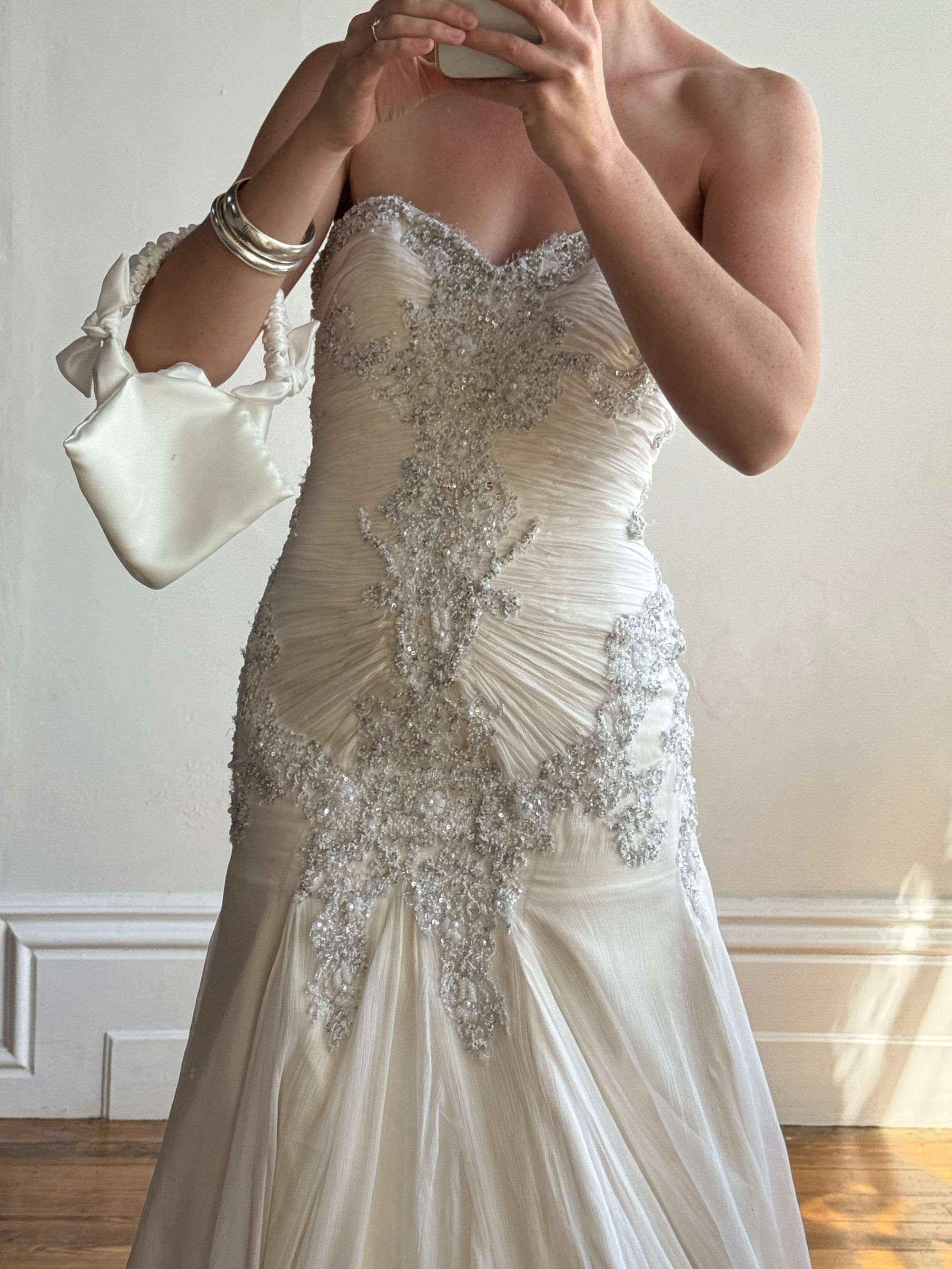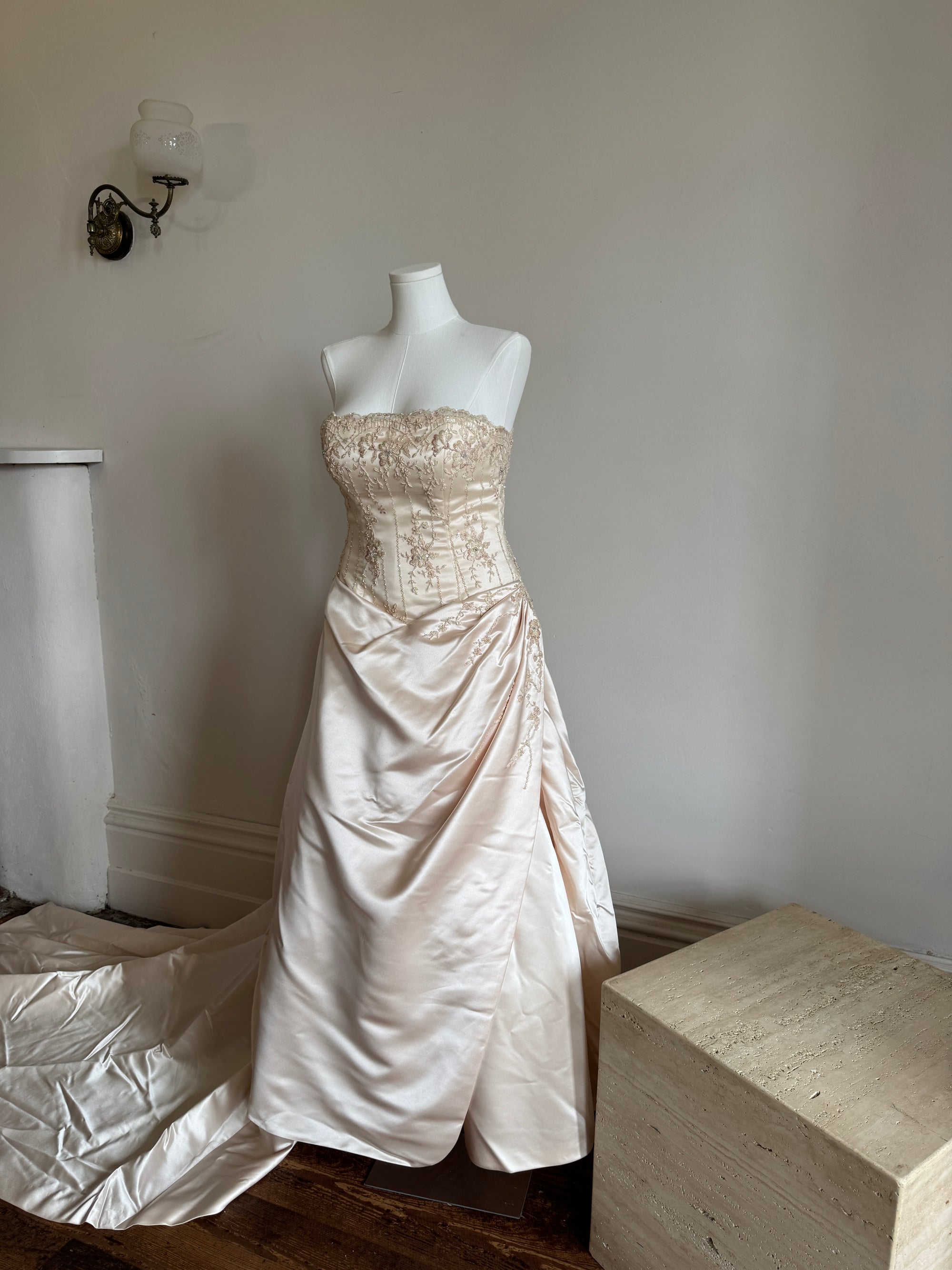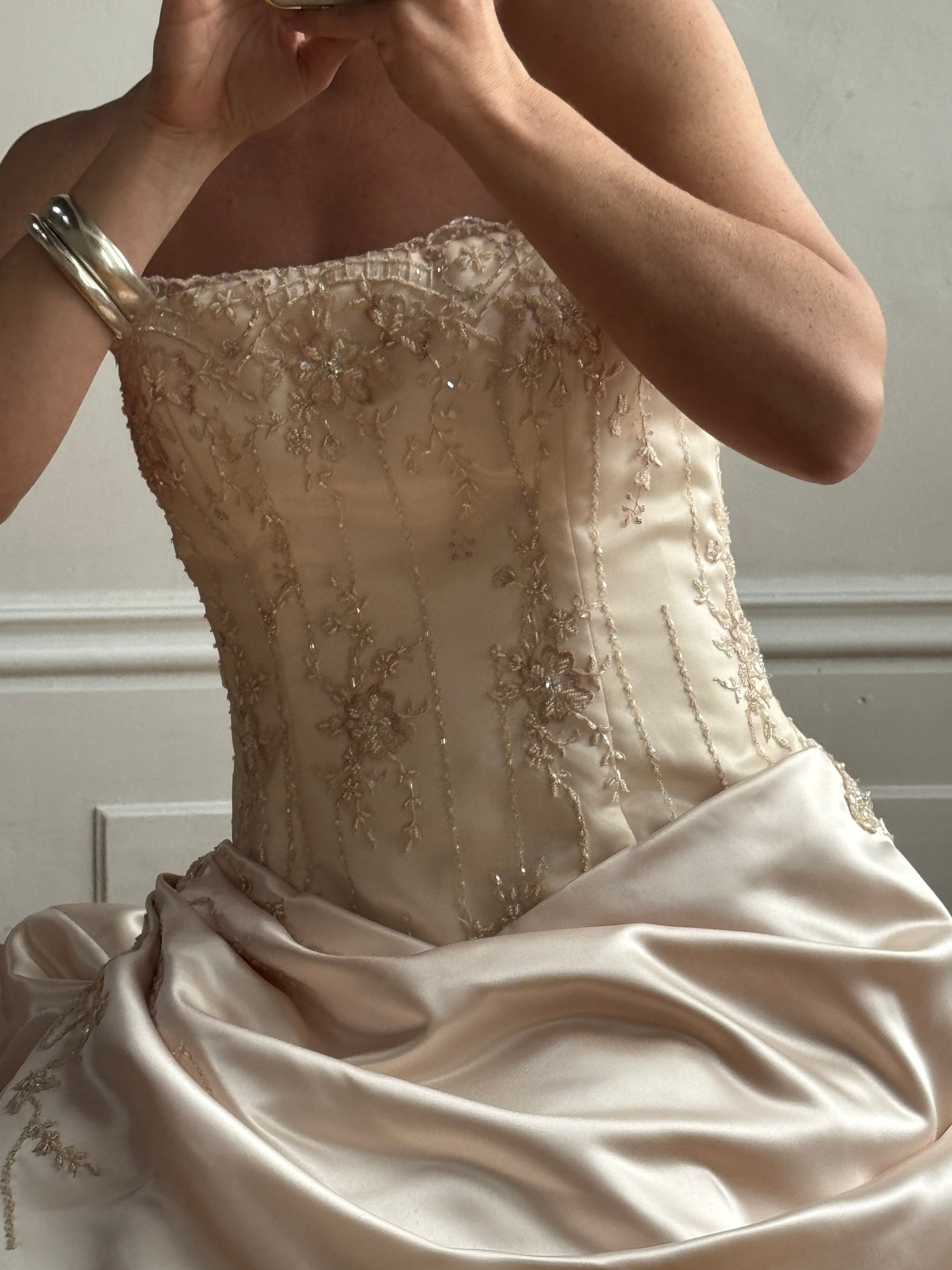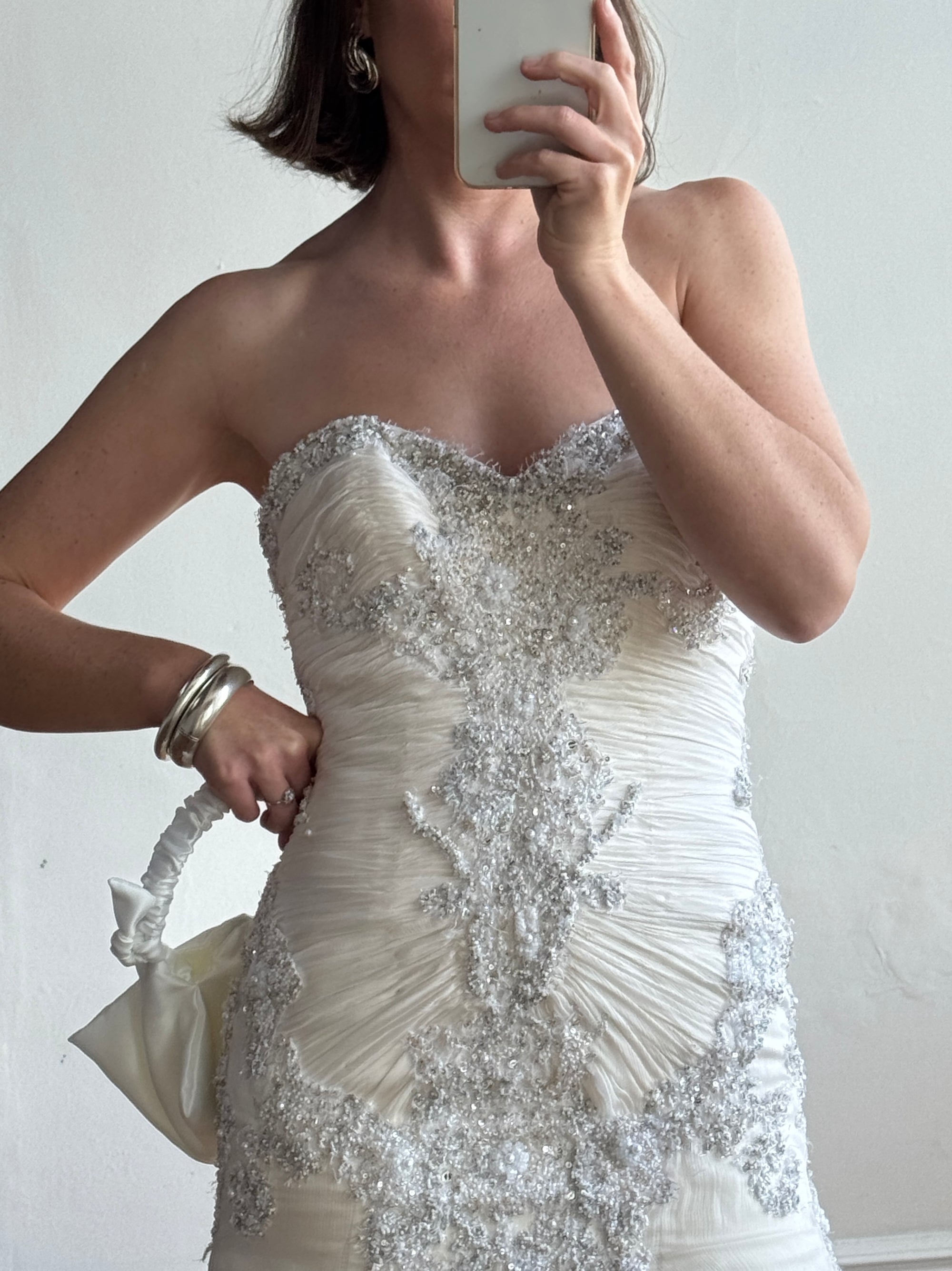 Vintage 90s Rose Crystal Encrusted Strapless Wedding Gown