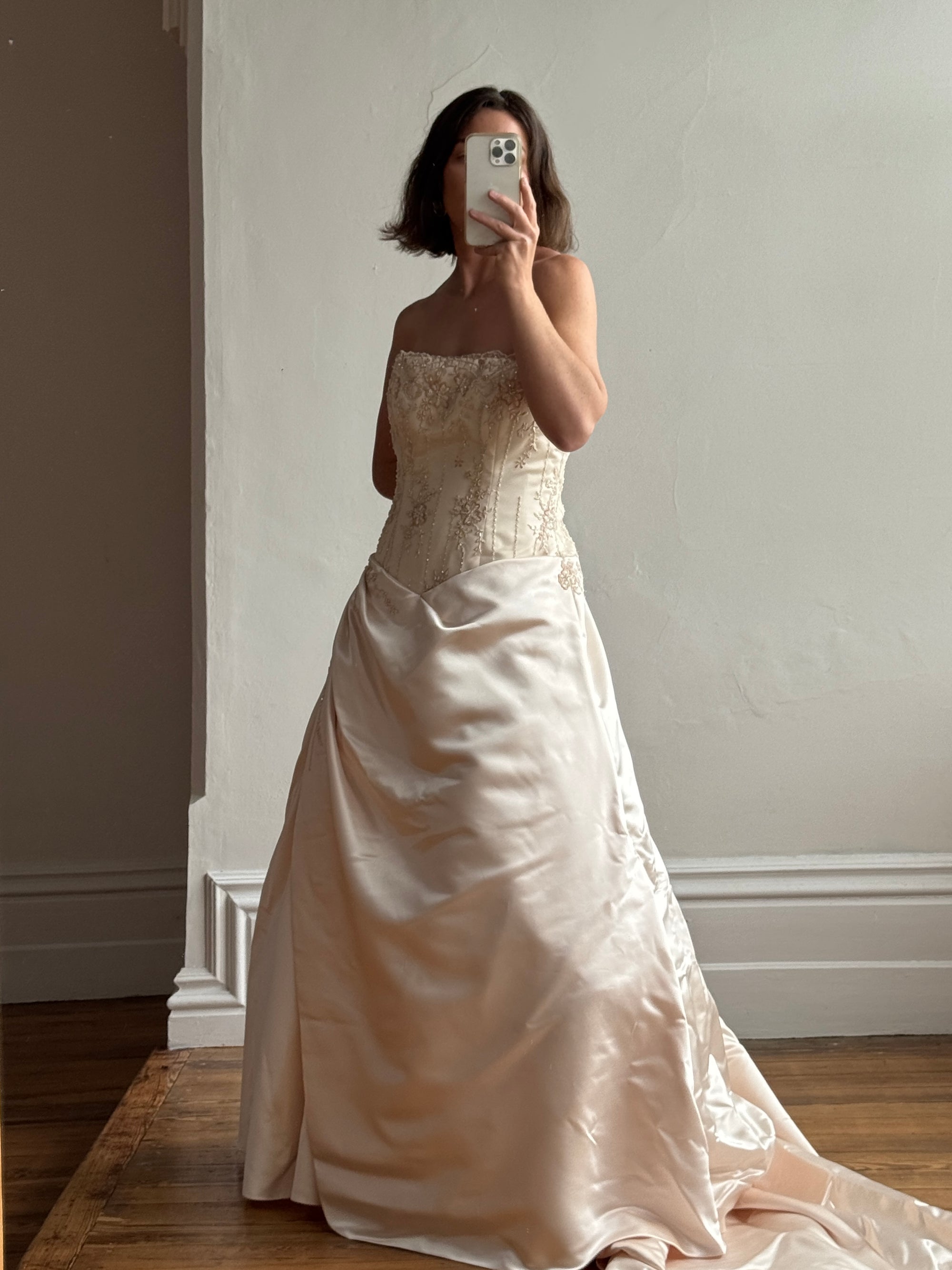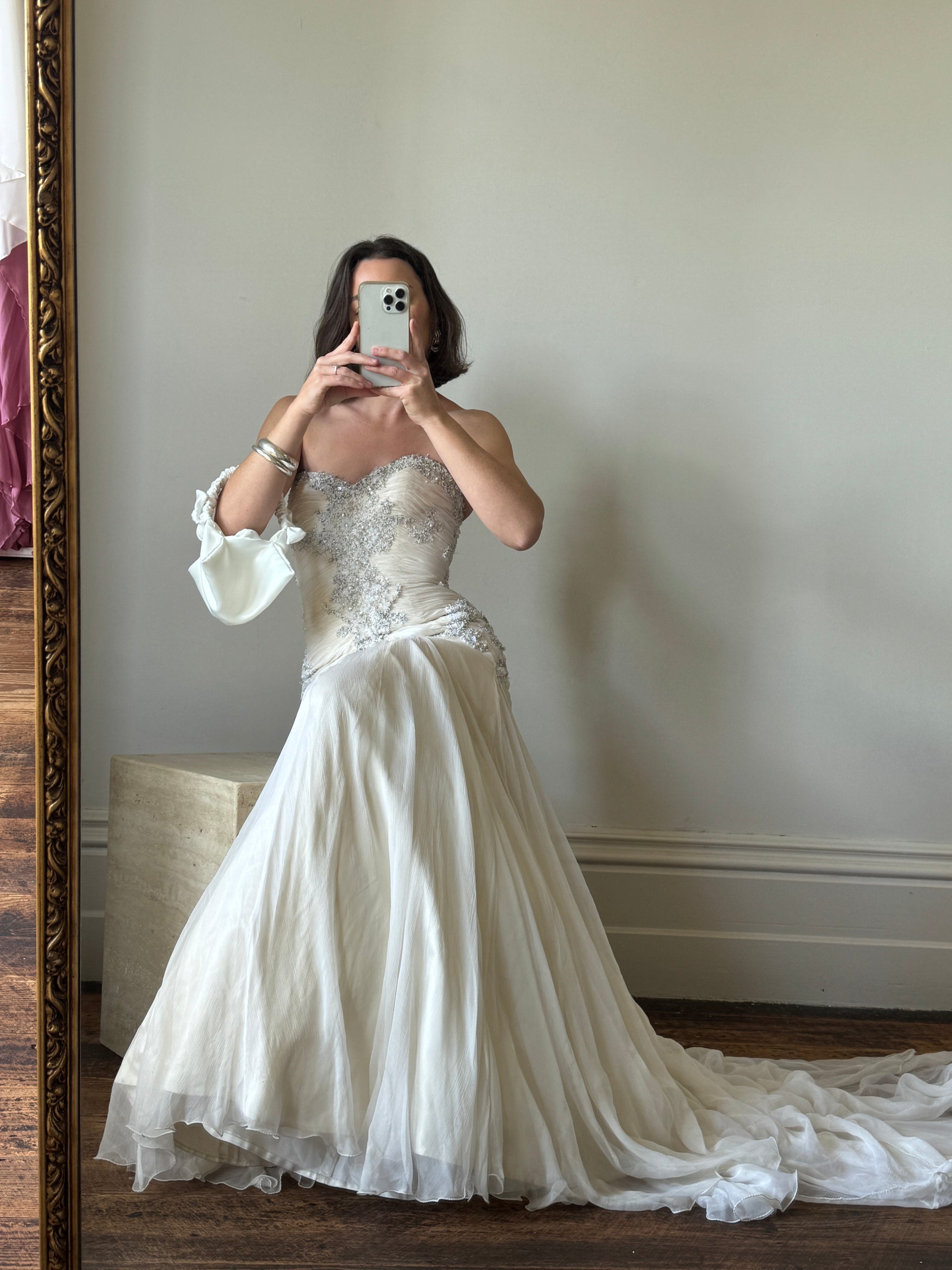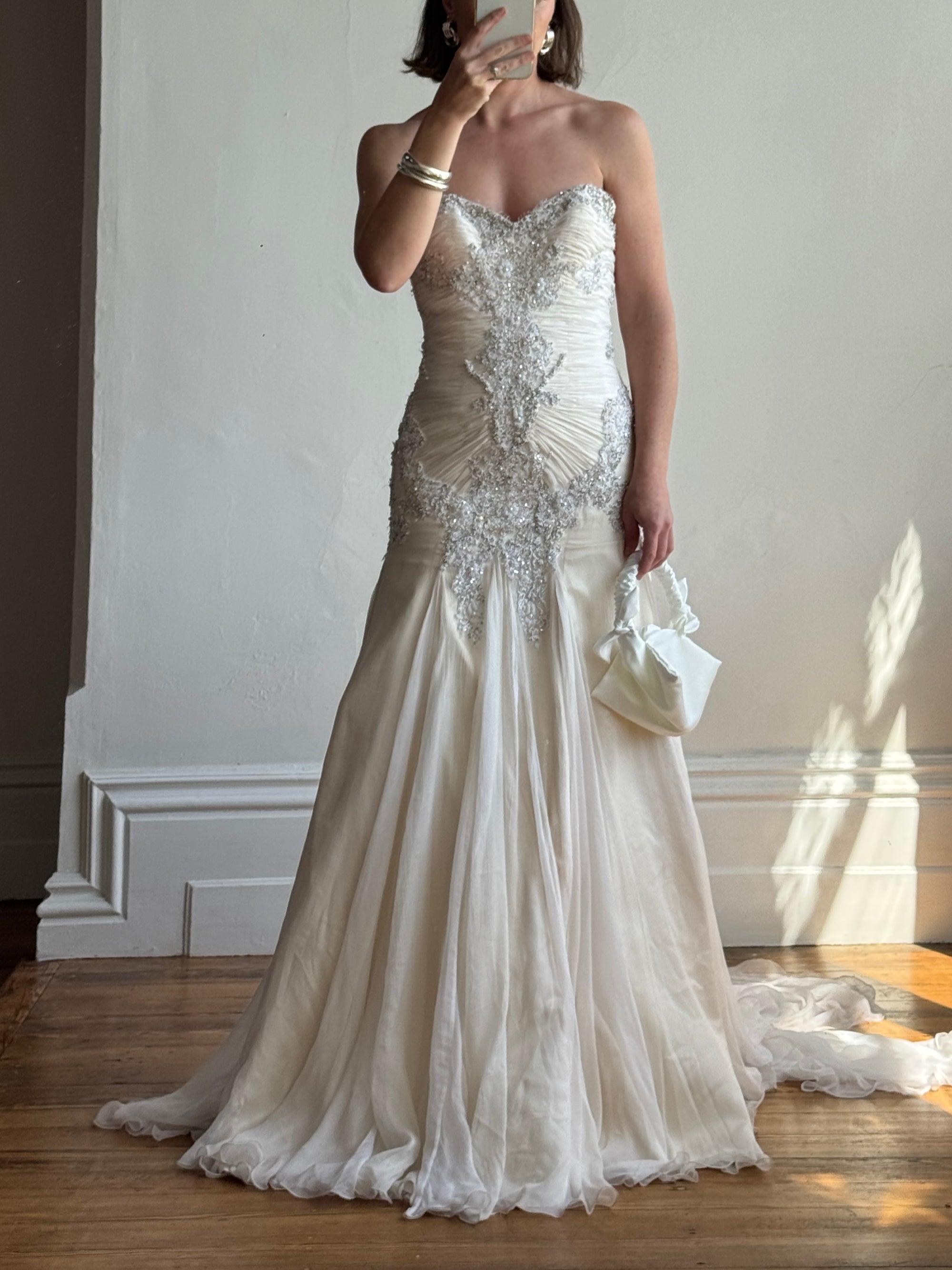 Vintage 90s Pure Silk Couture Drop Waist Wedding Gown