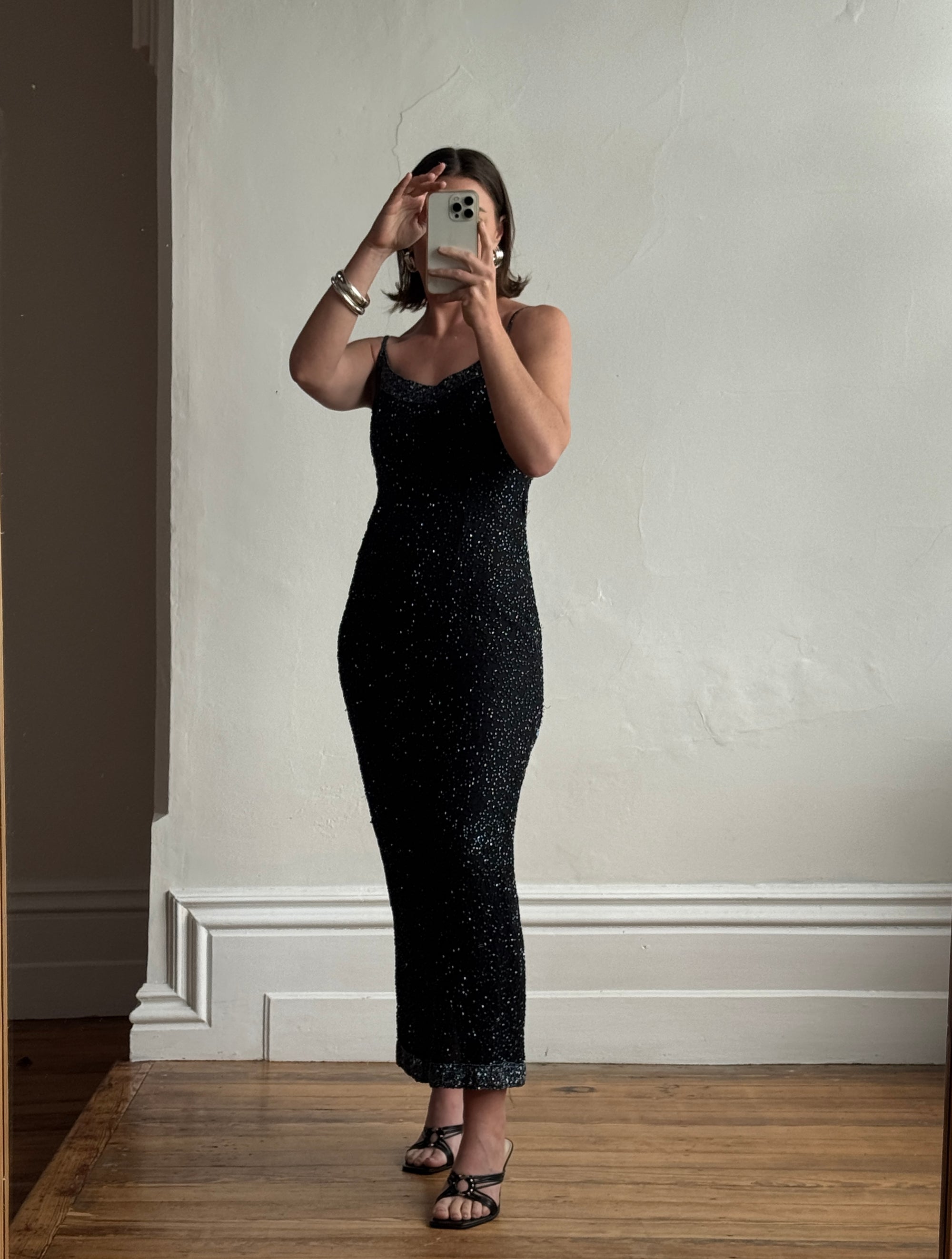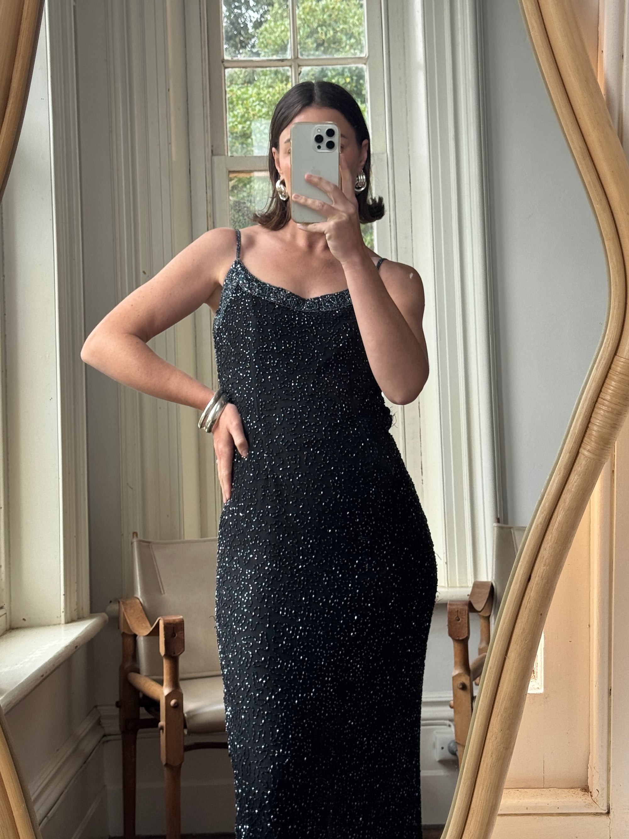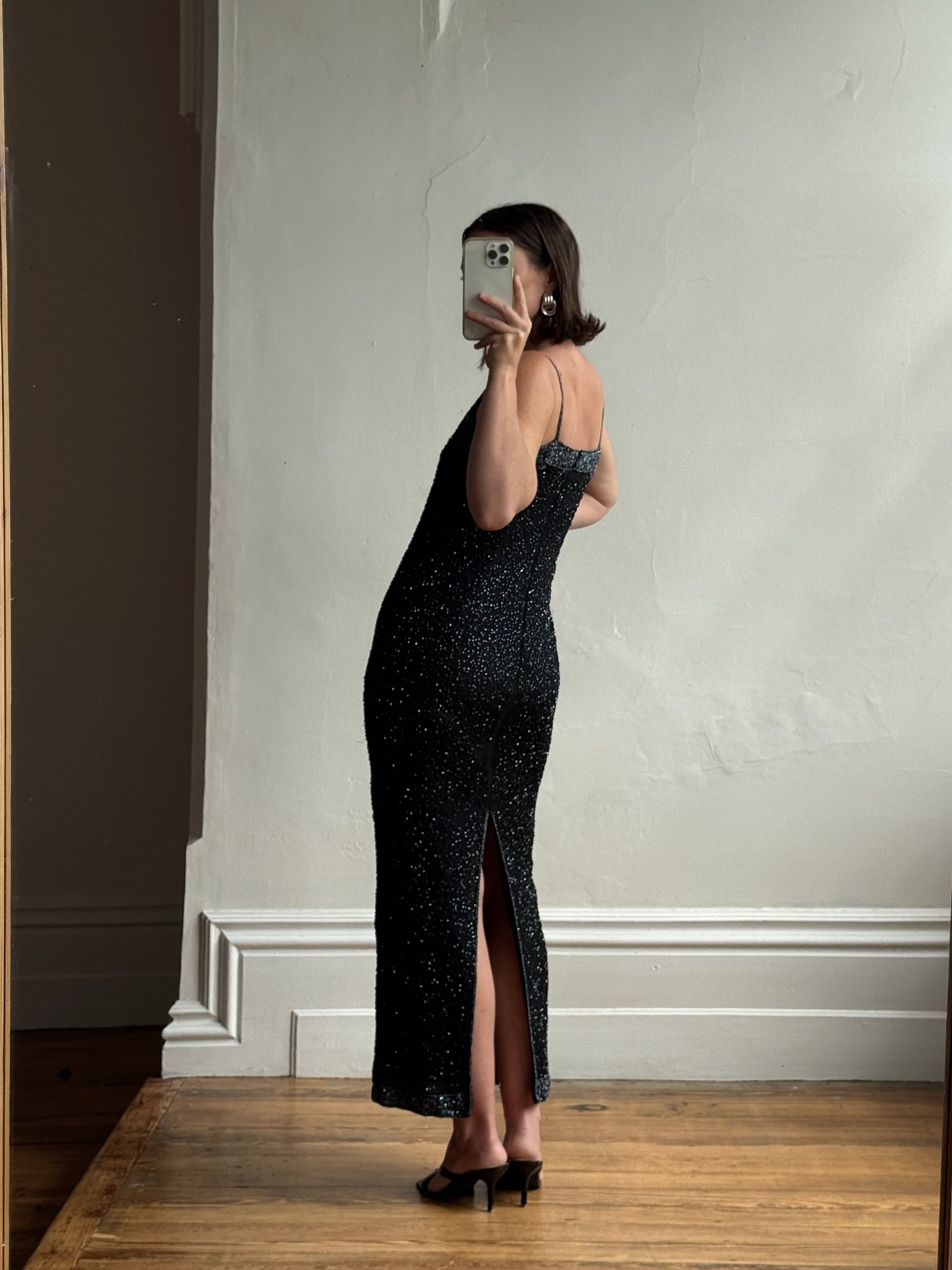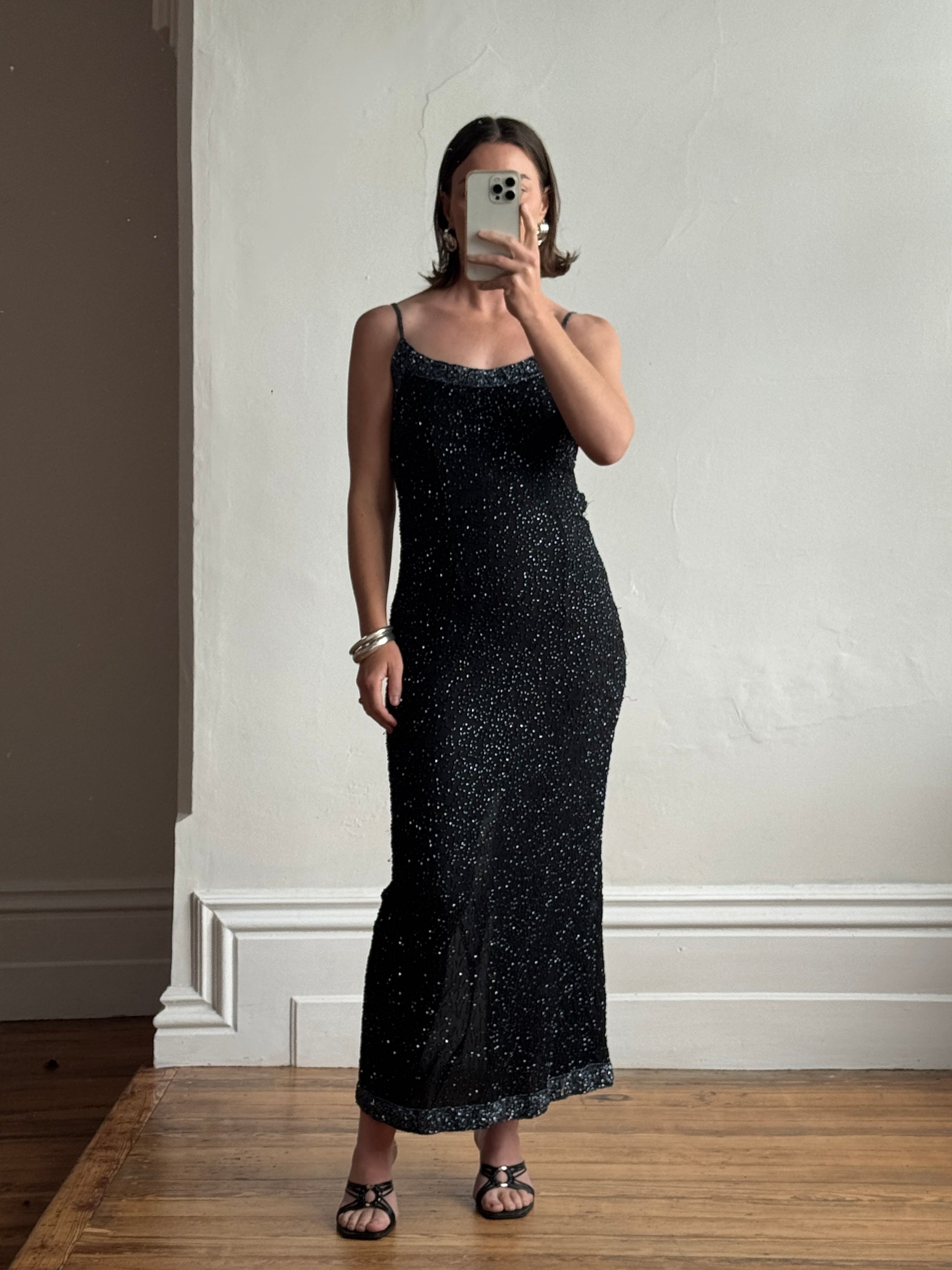 Vintage 90s Pure Silk Sparkle Dress Noir