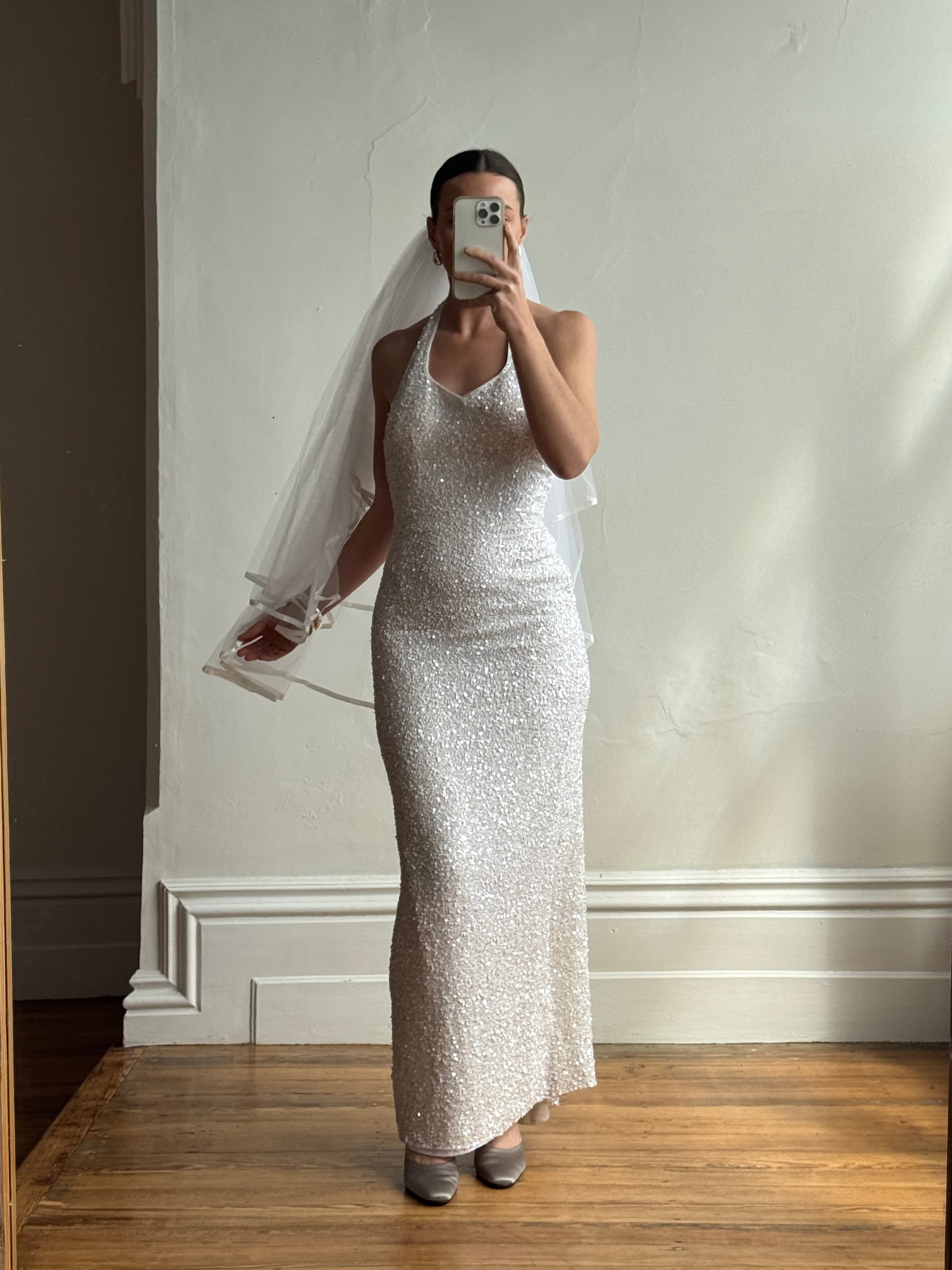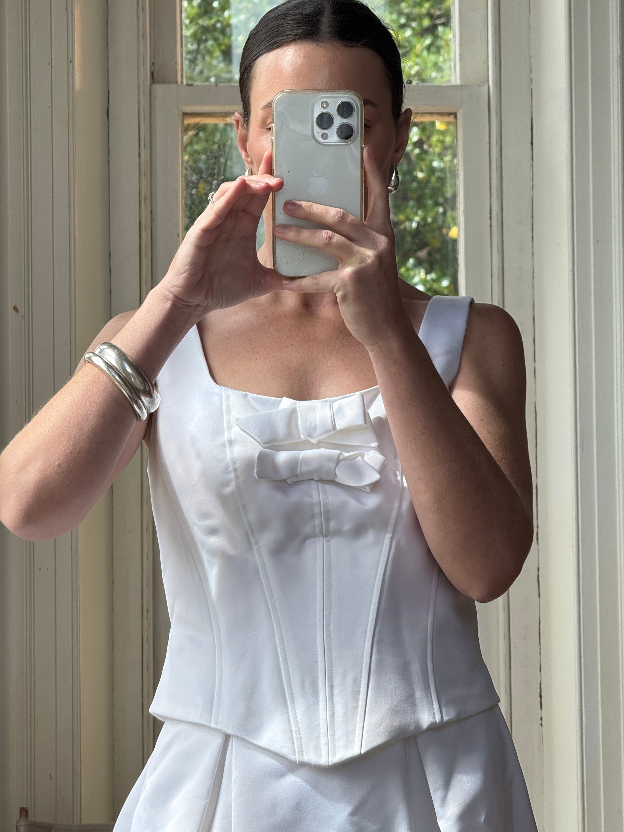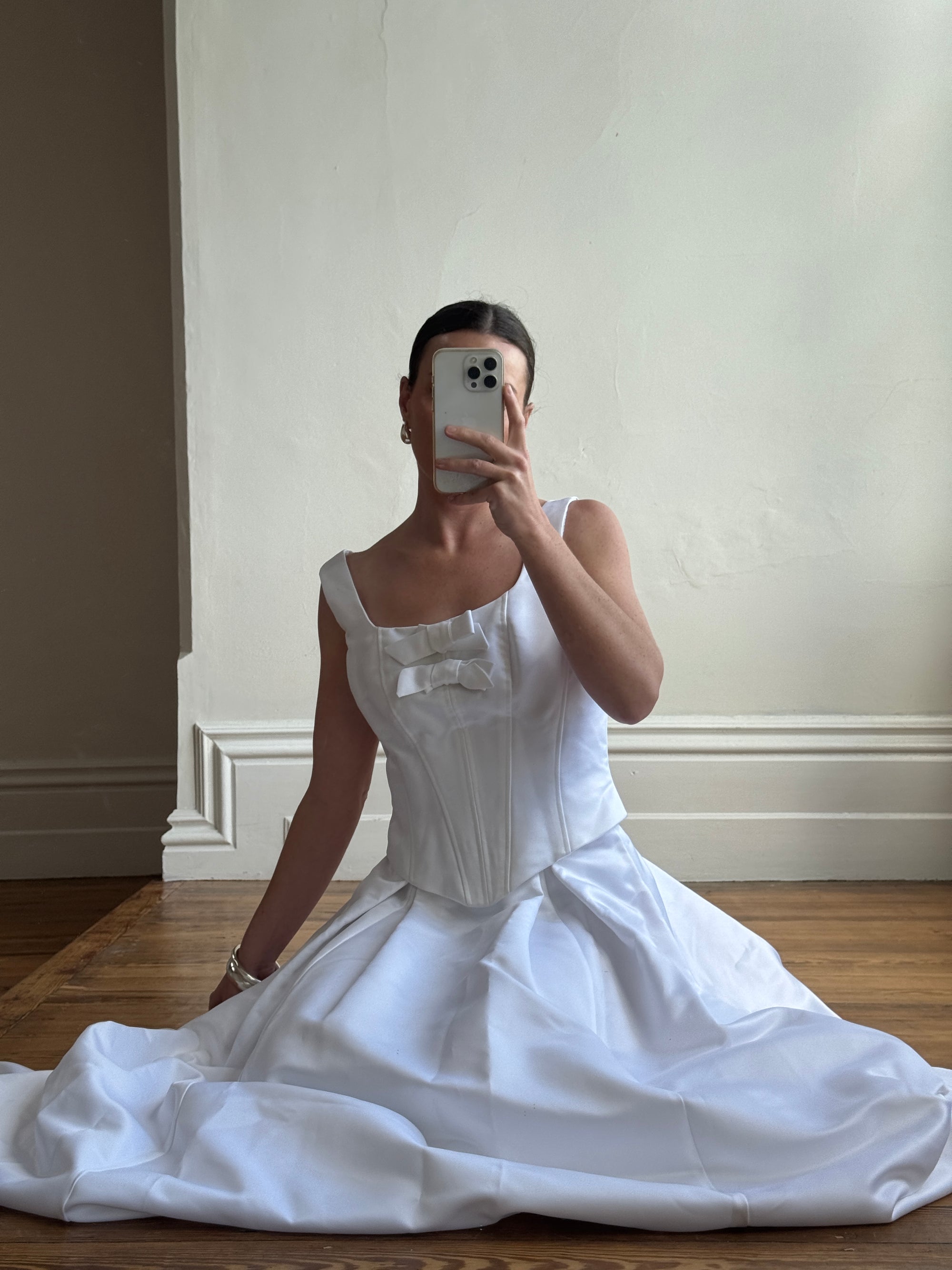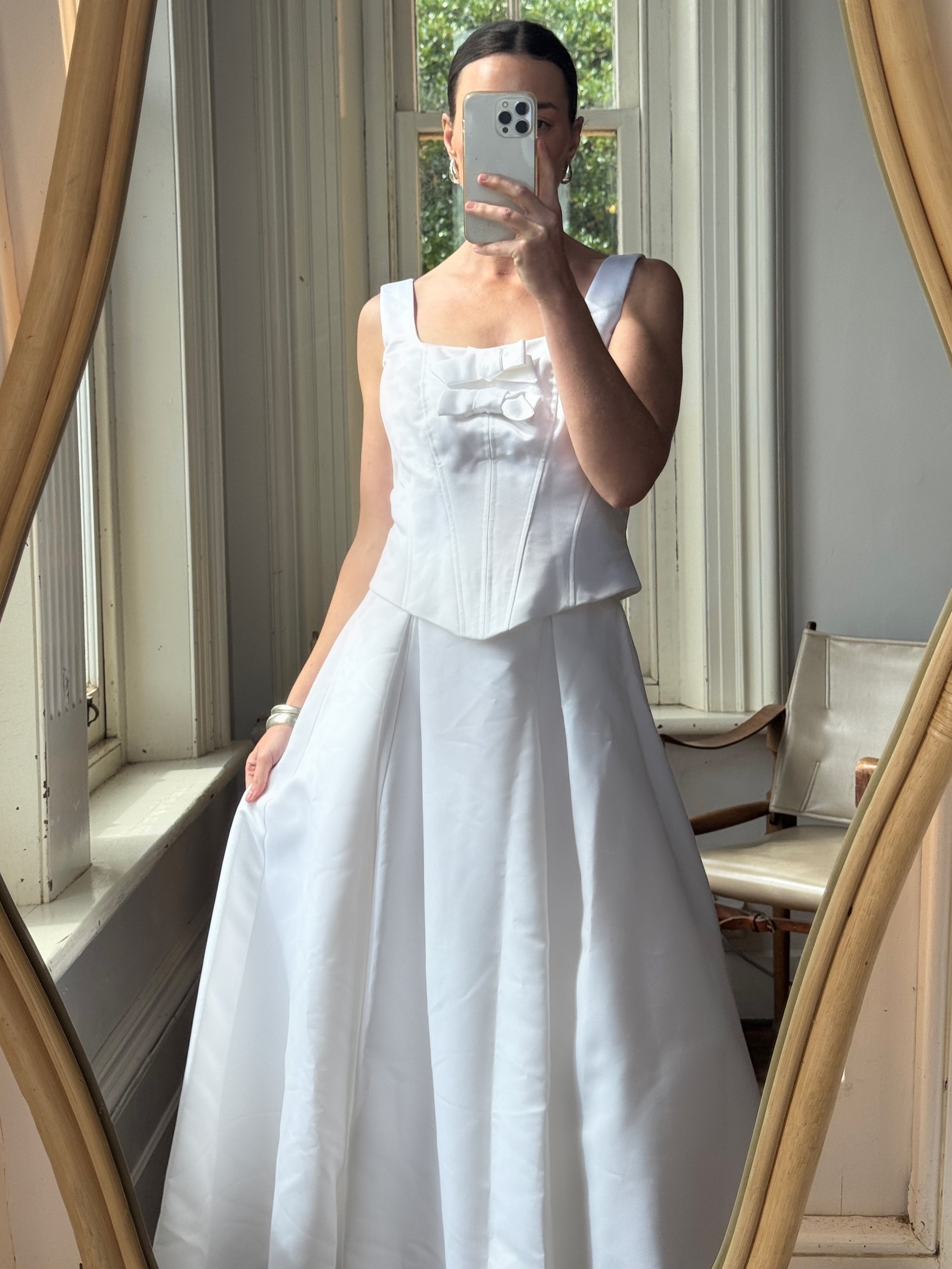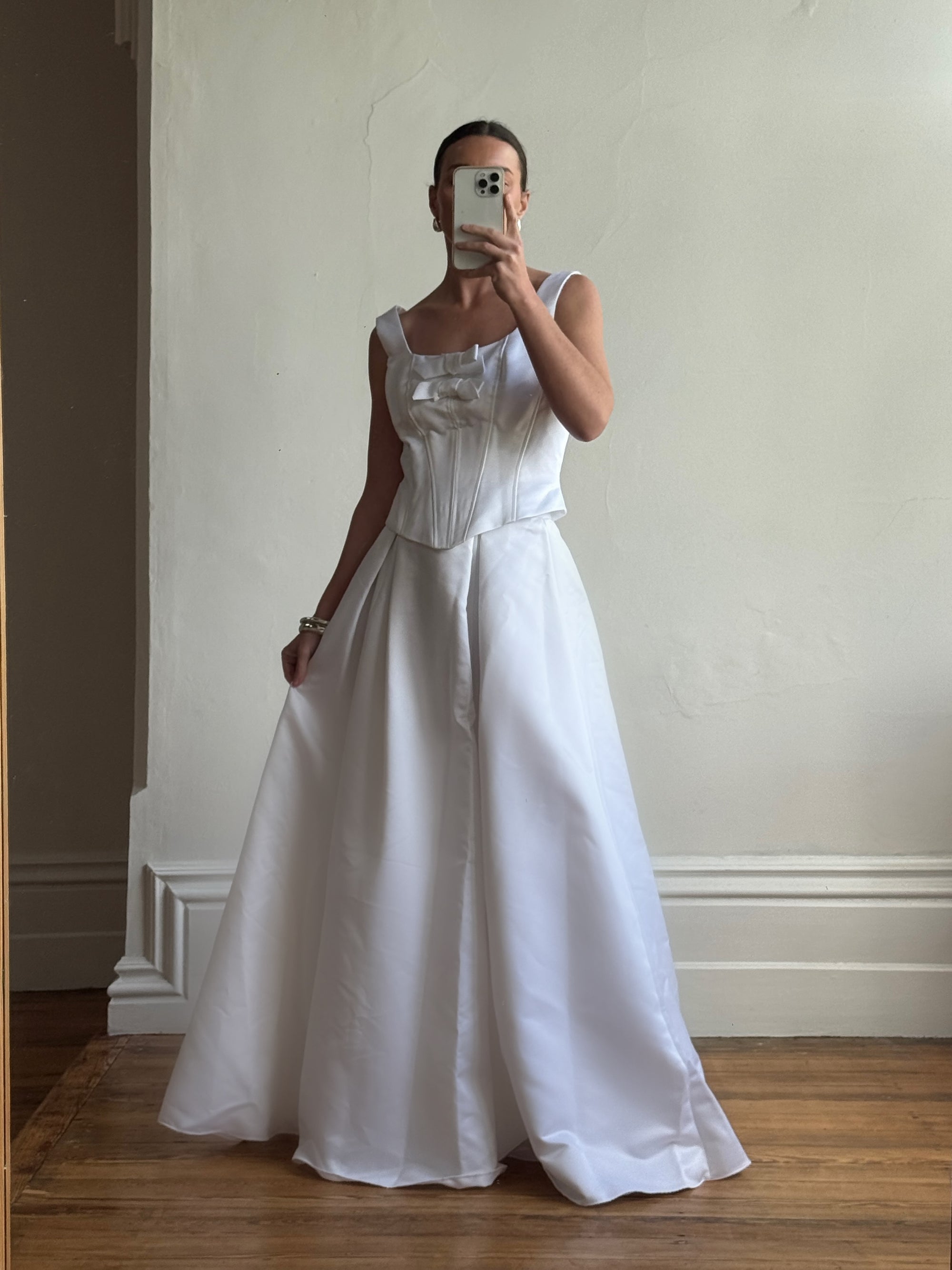 Vintage 90s White Satin Double Bow Two Piece Wedding Gown