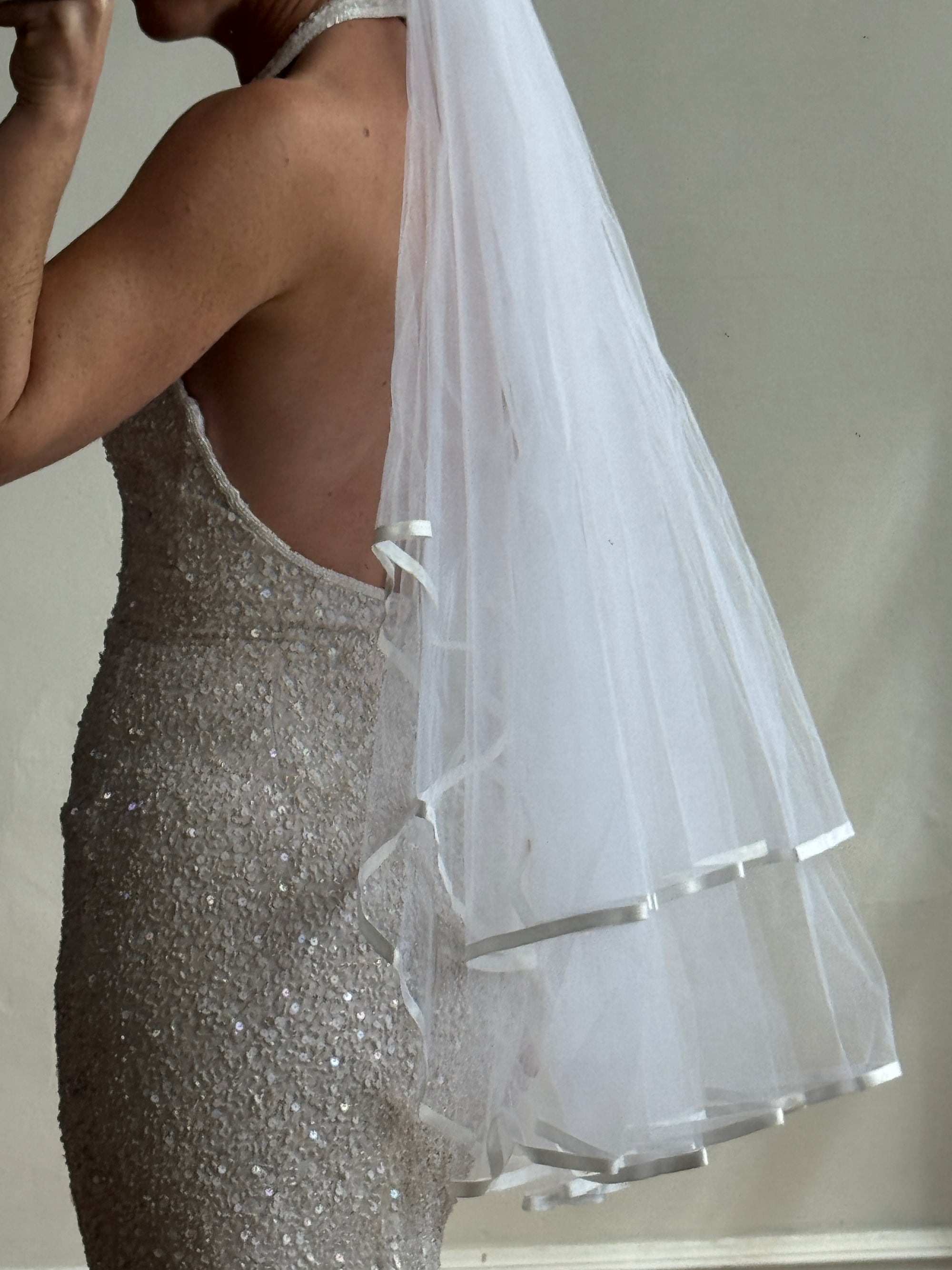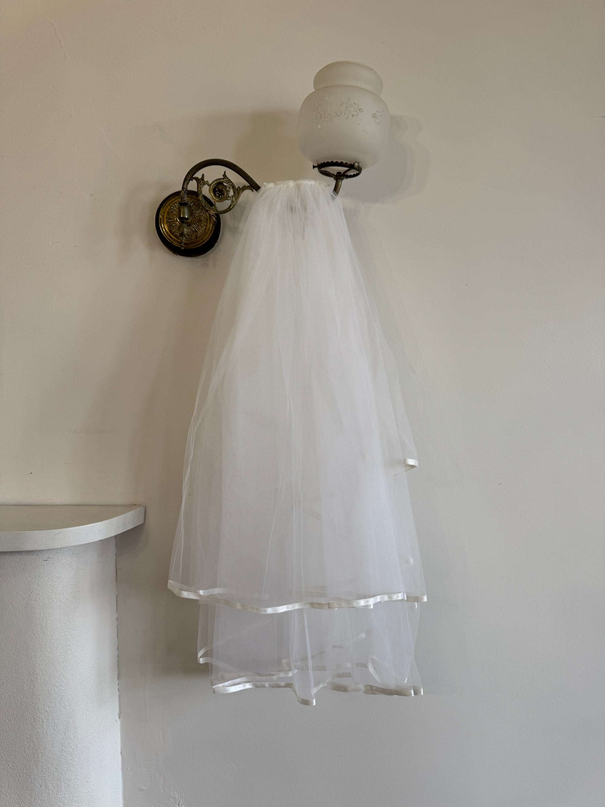 Vintage Blusher Tulle Hair Piece With Satin Edging
