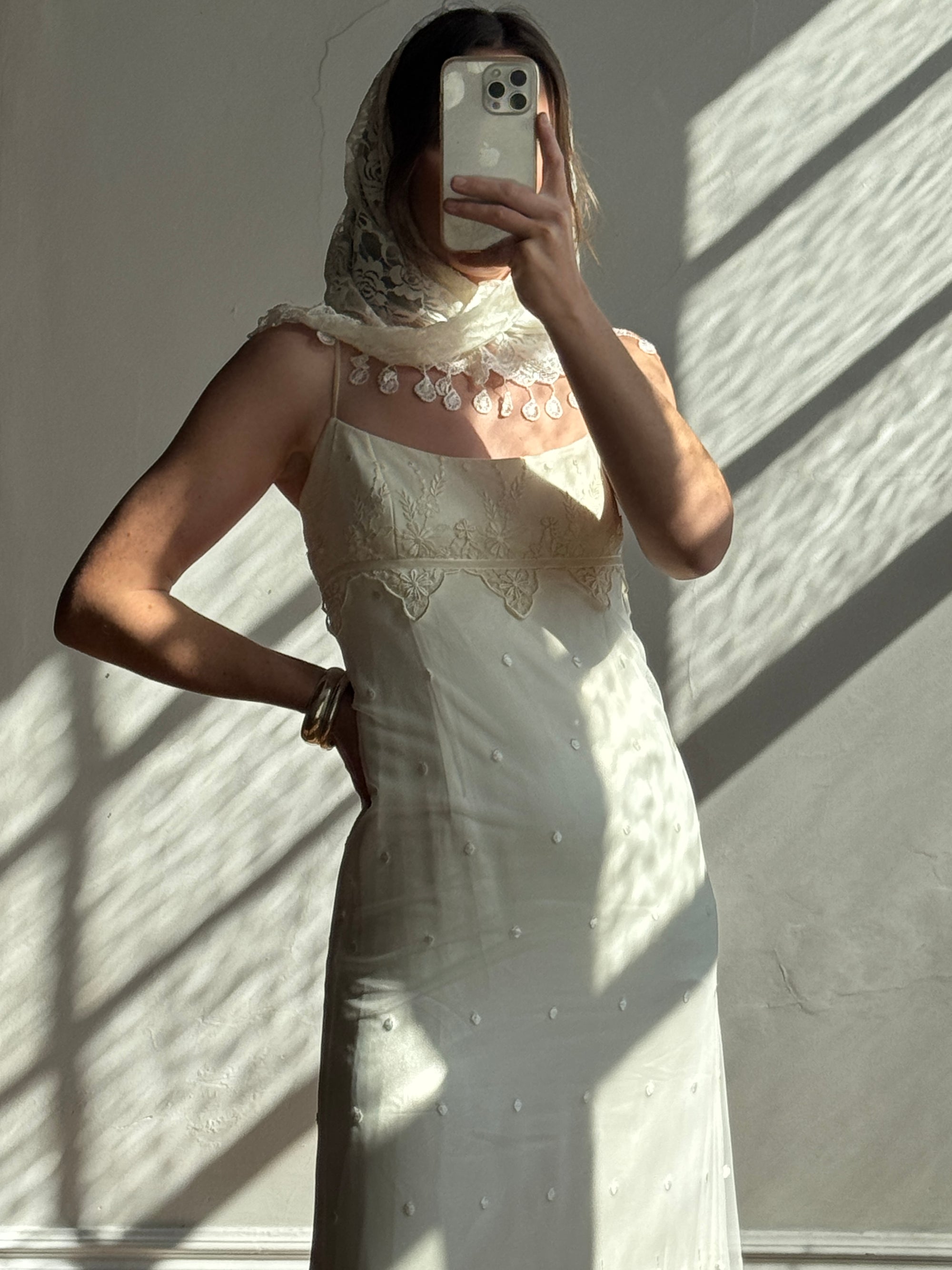 Vintage Liquid Satin V Neck Slip Dress Peach