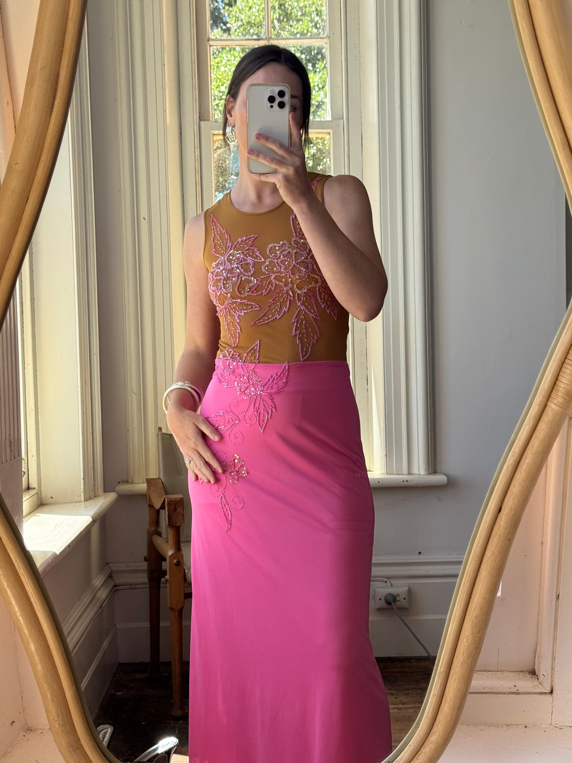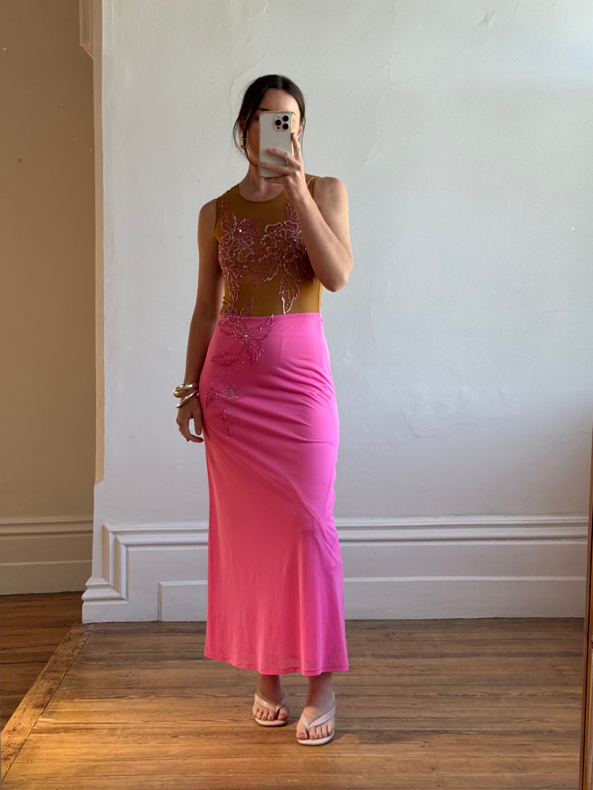 Vintage Satin and Chiffon Midi Bridal Skirt