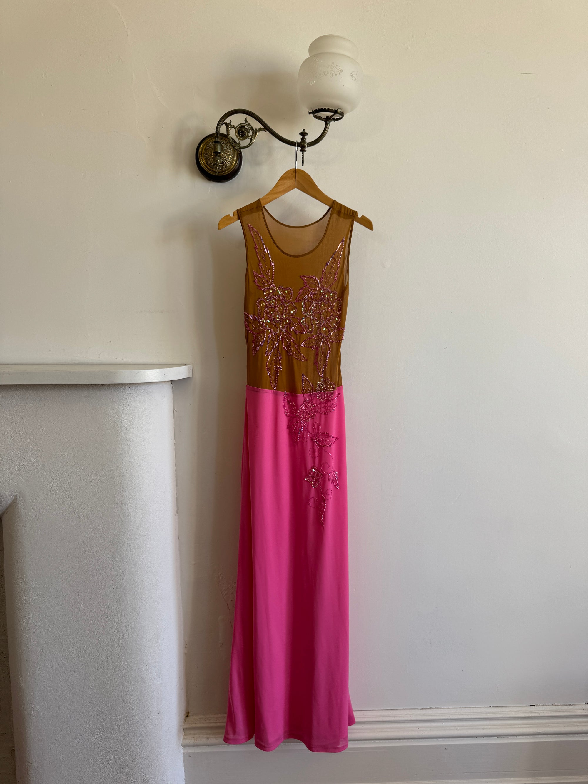 Vintage Satin Jacquard Floral Sleeveless Bridal Gown