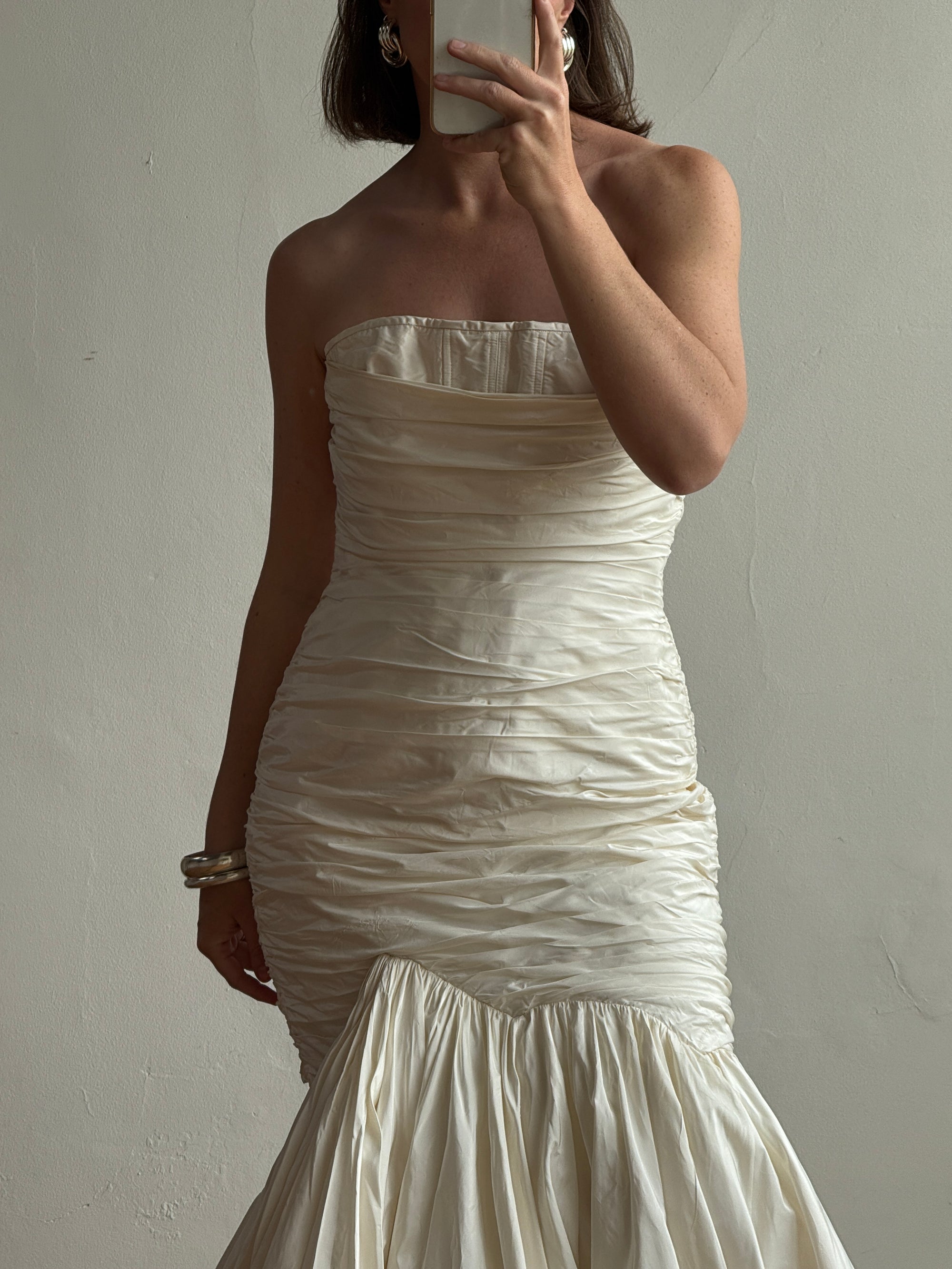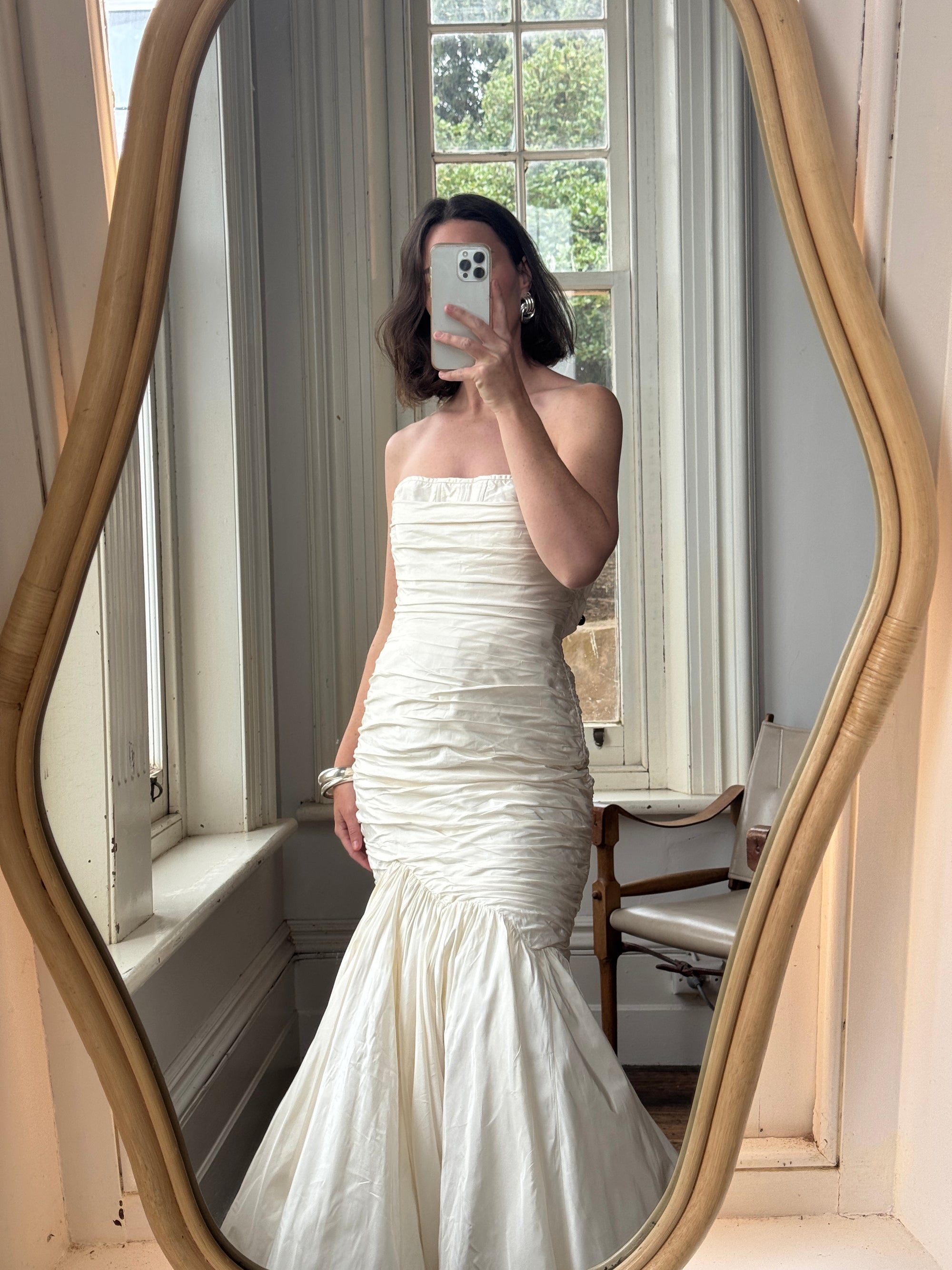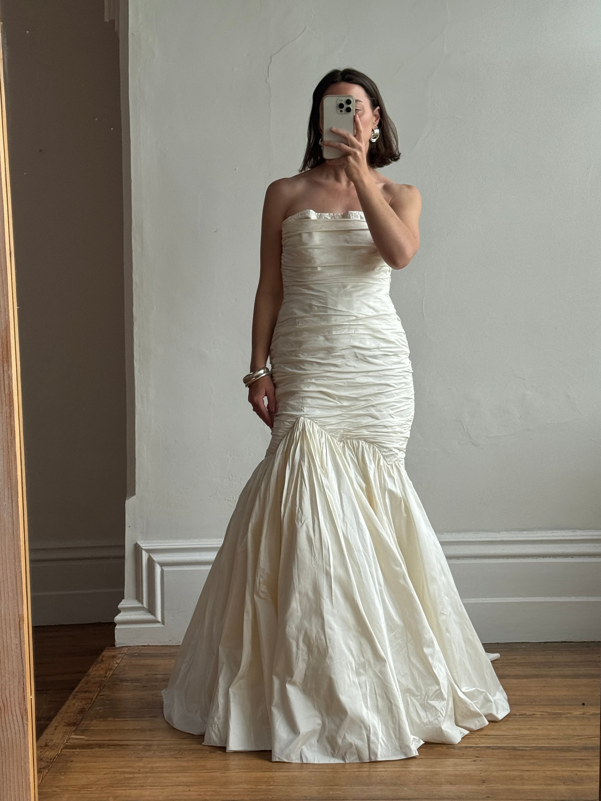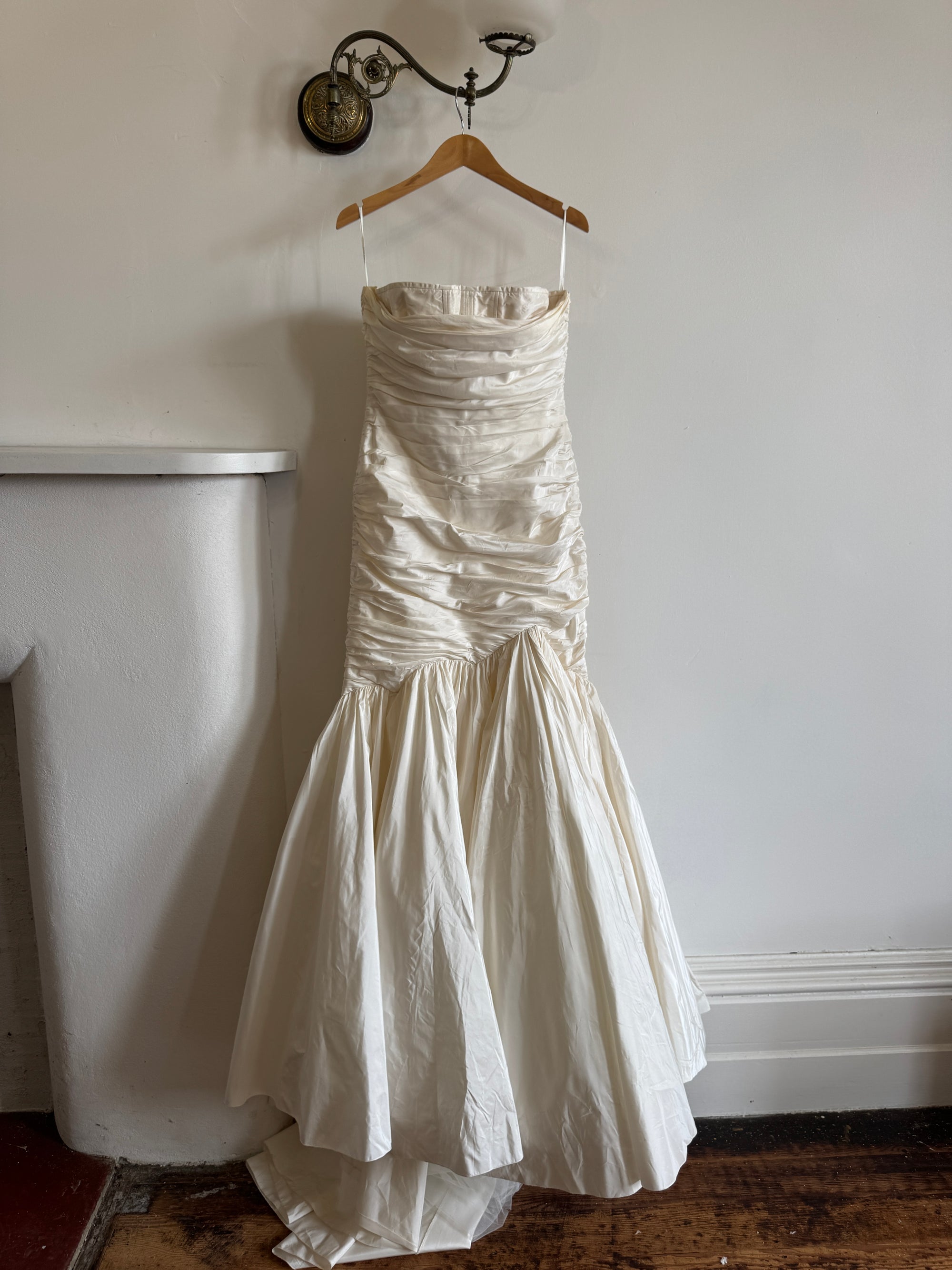 Vintage Y2K Pure Silk Taffeta Gathered Fishtail Wedding Gown