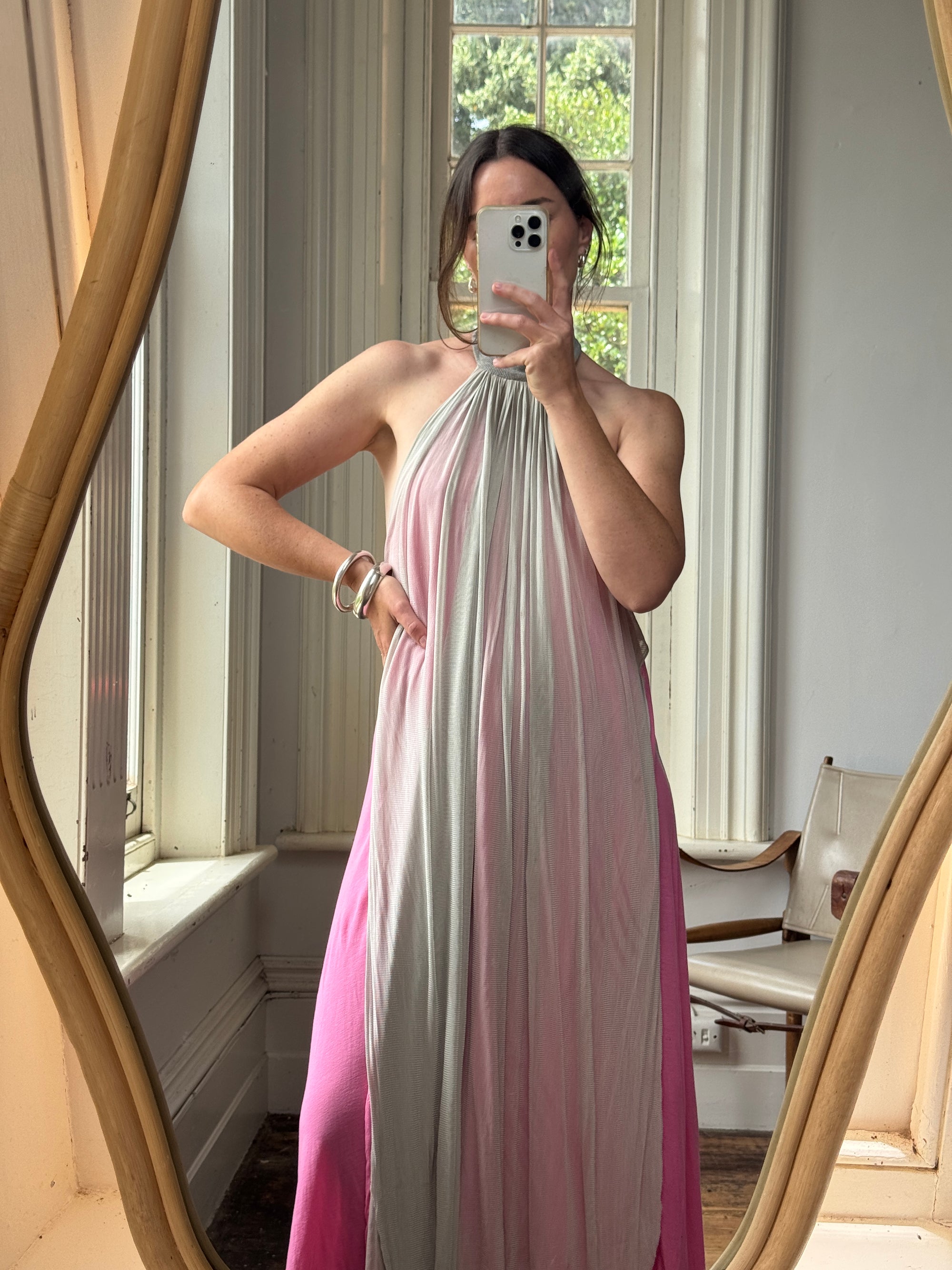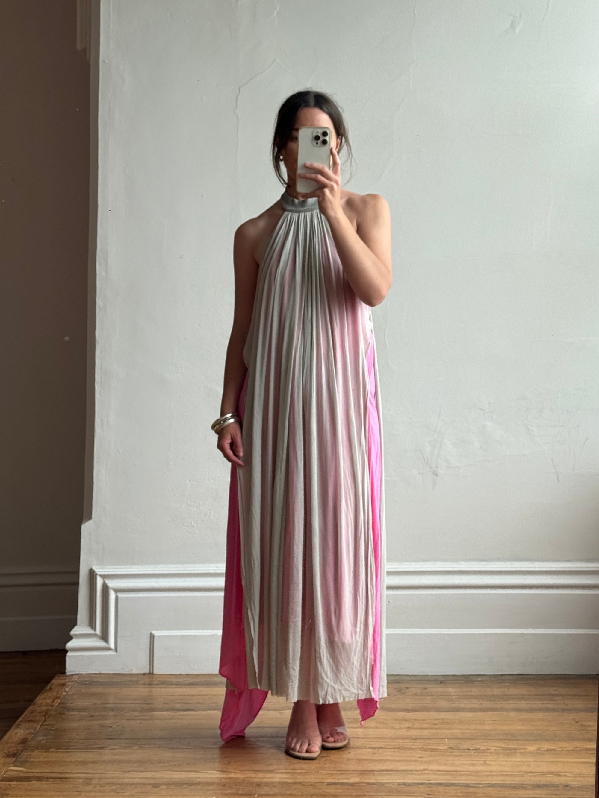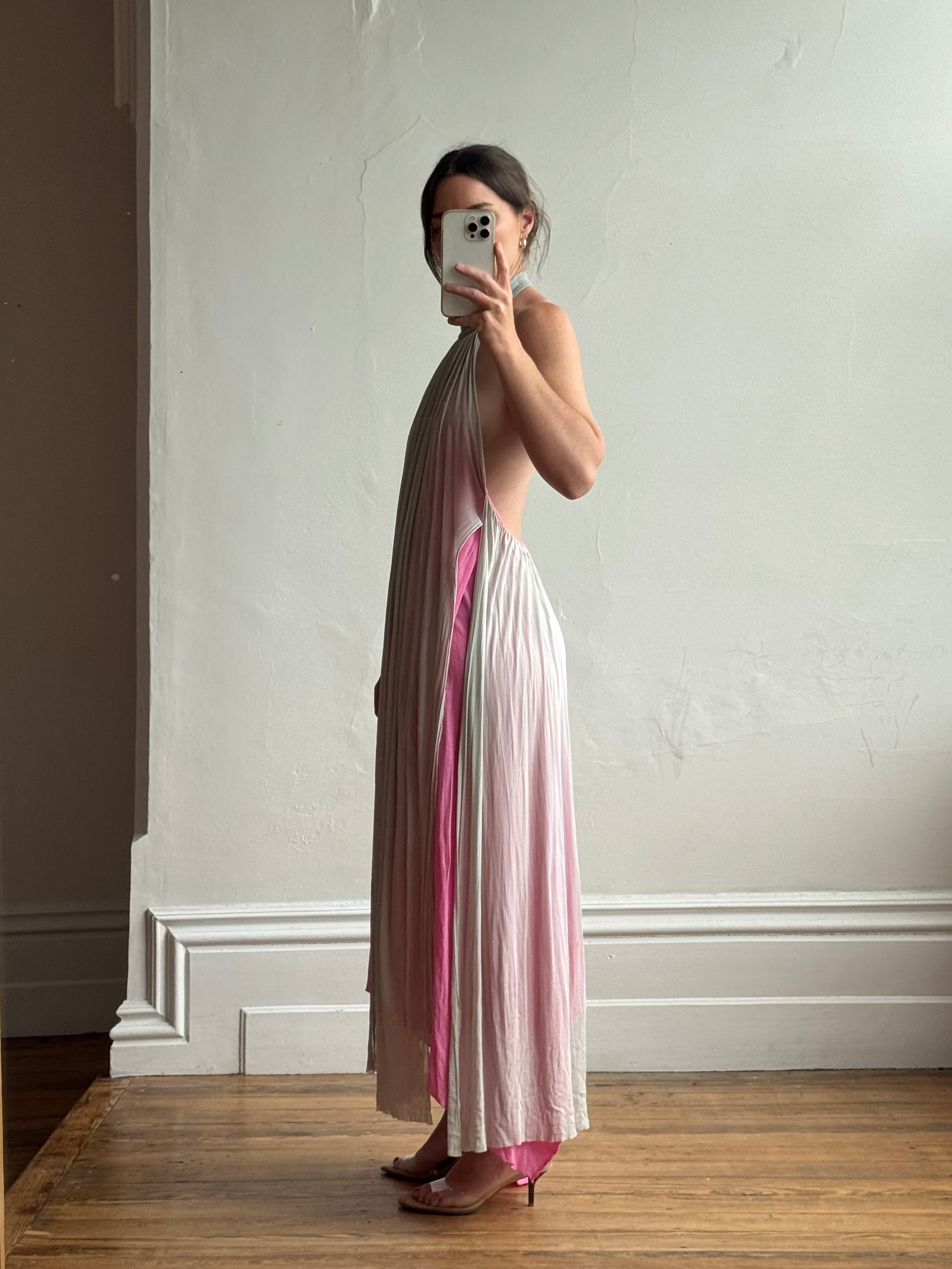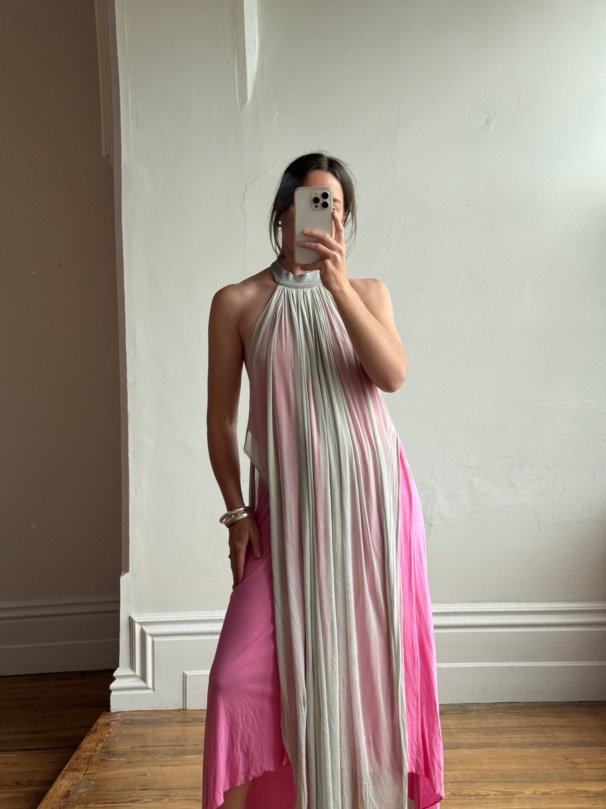 Vintage Y2K Mesh Silk Halter Dress Hot Pink