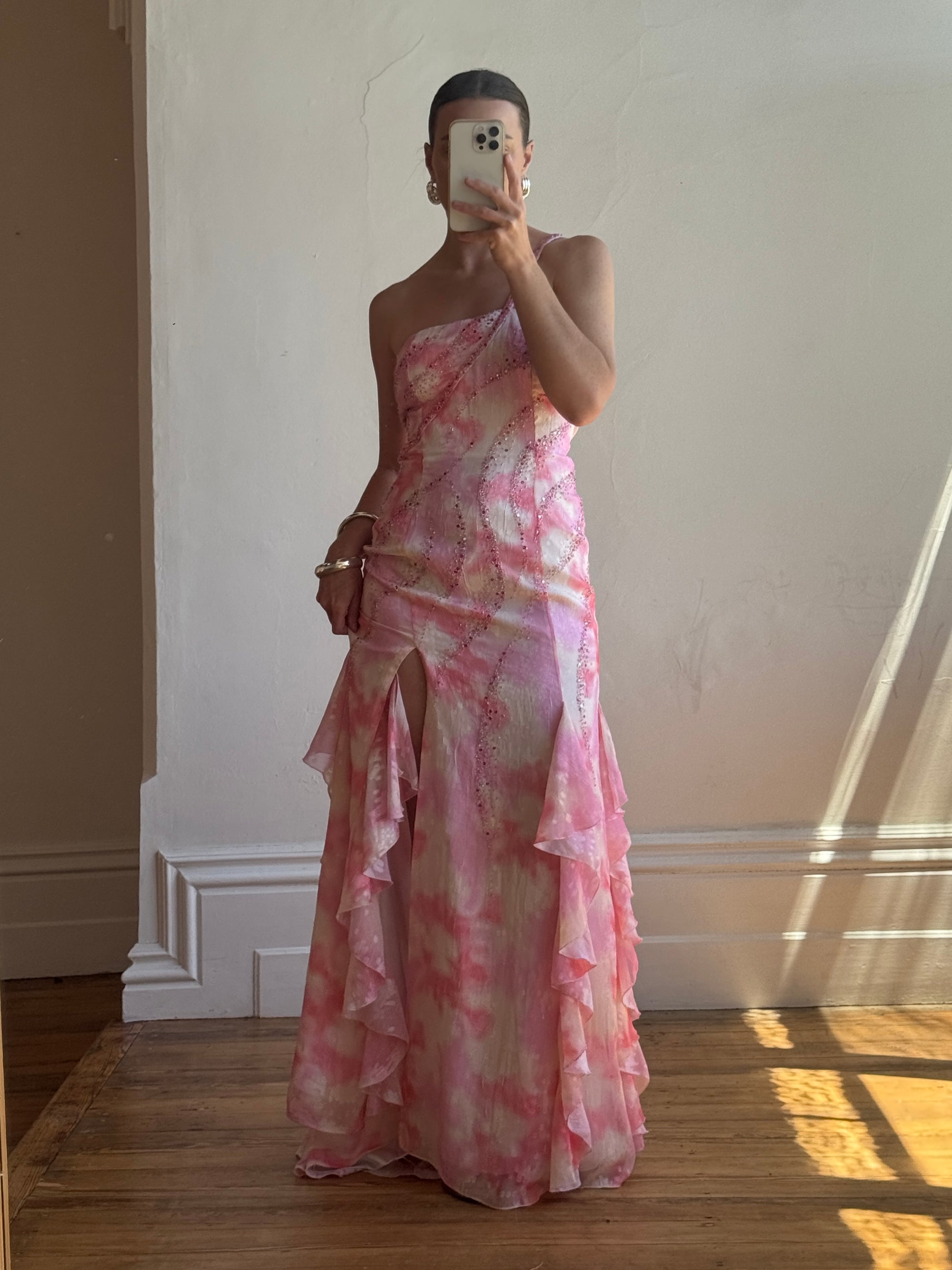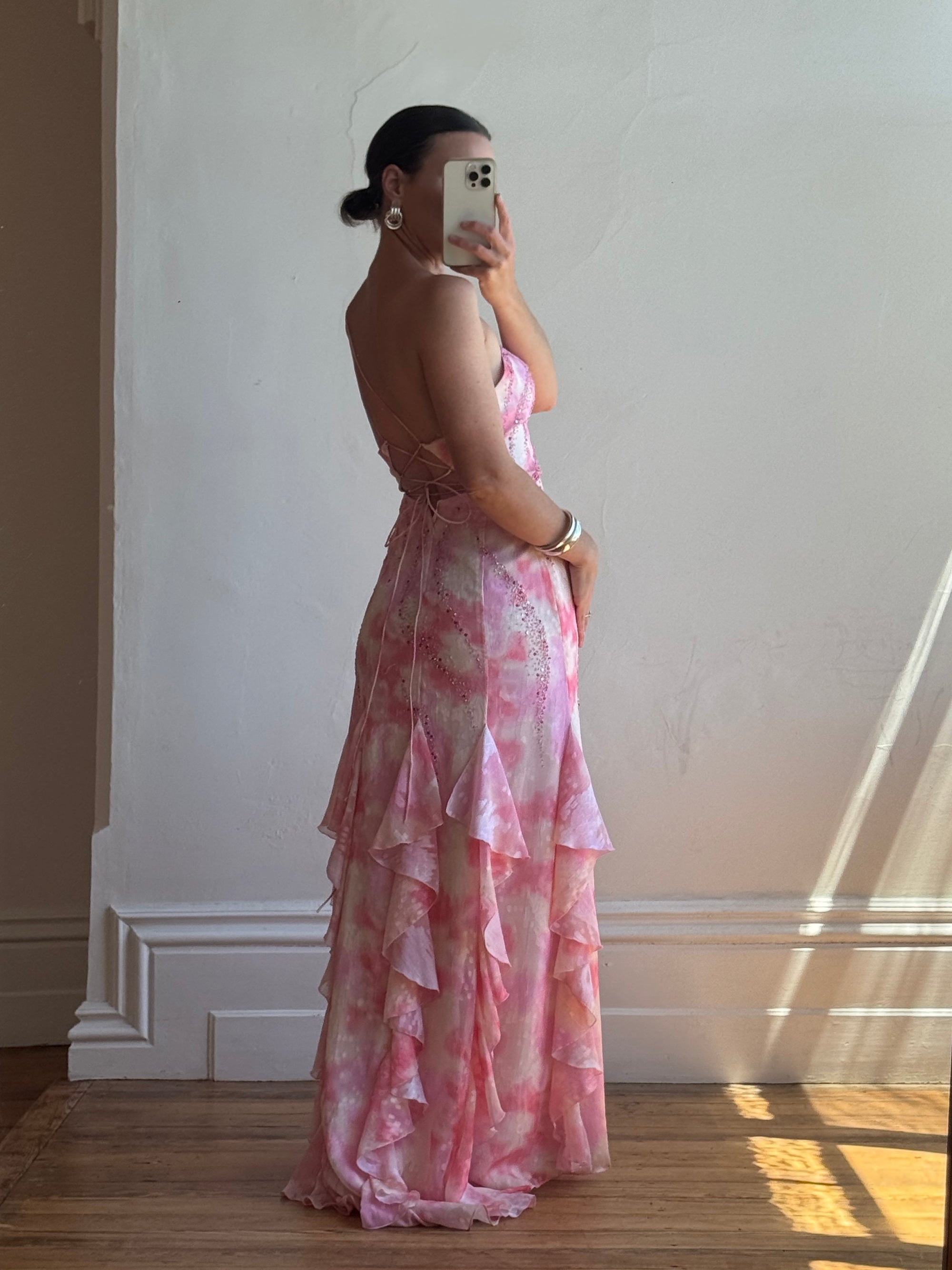Vintage Y2K High Low Sunrise Ruffle Dress