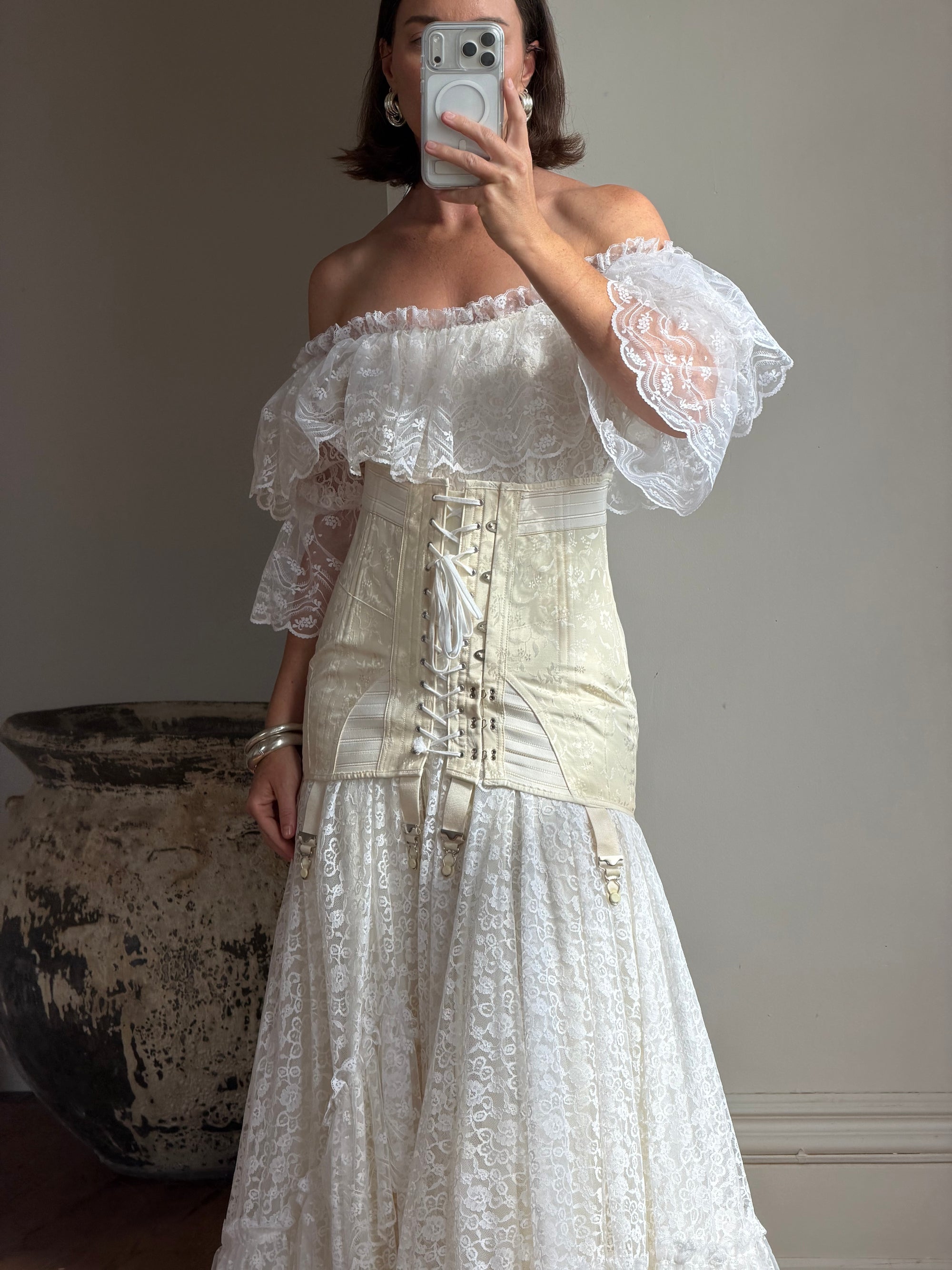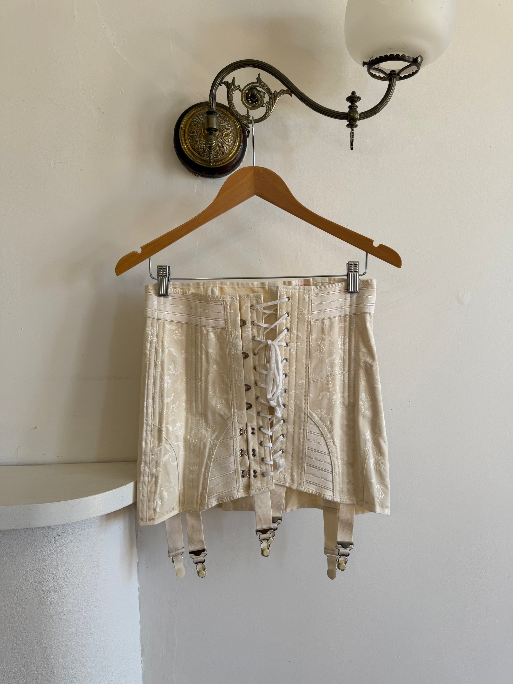 Vintage 50s Bridal Jacquard Underbust Corset Creme