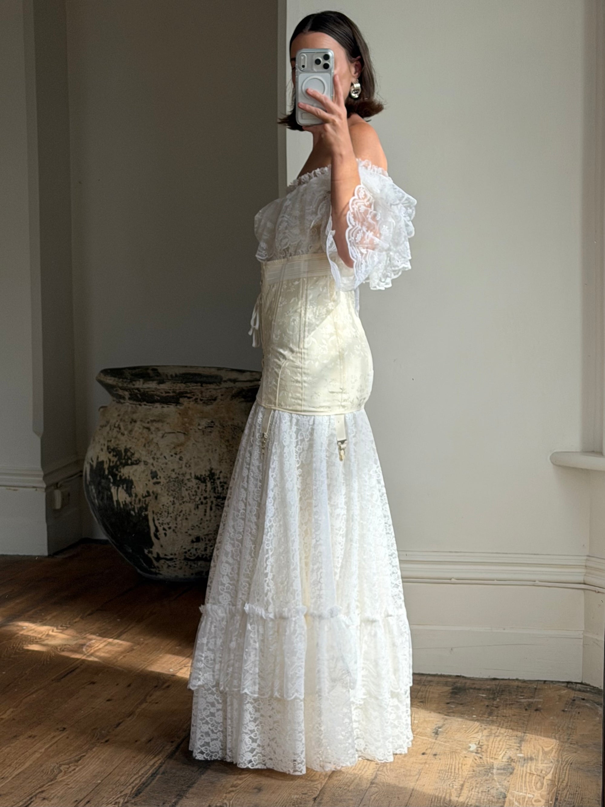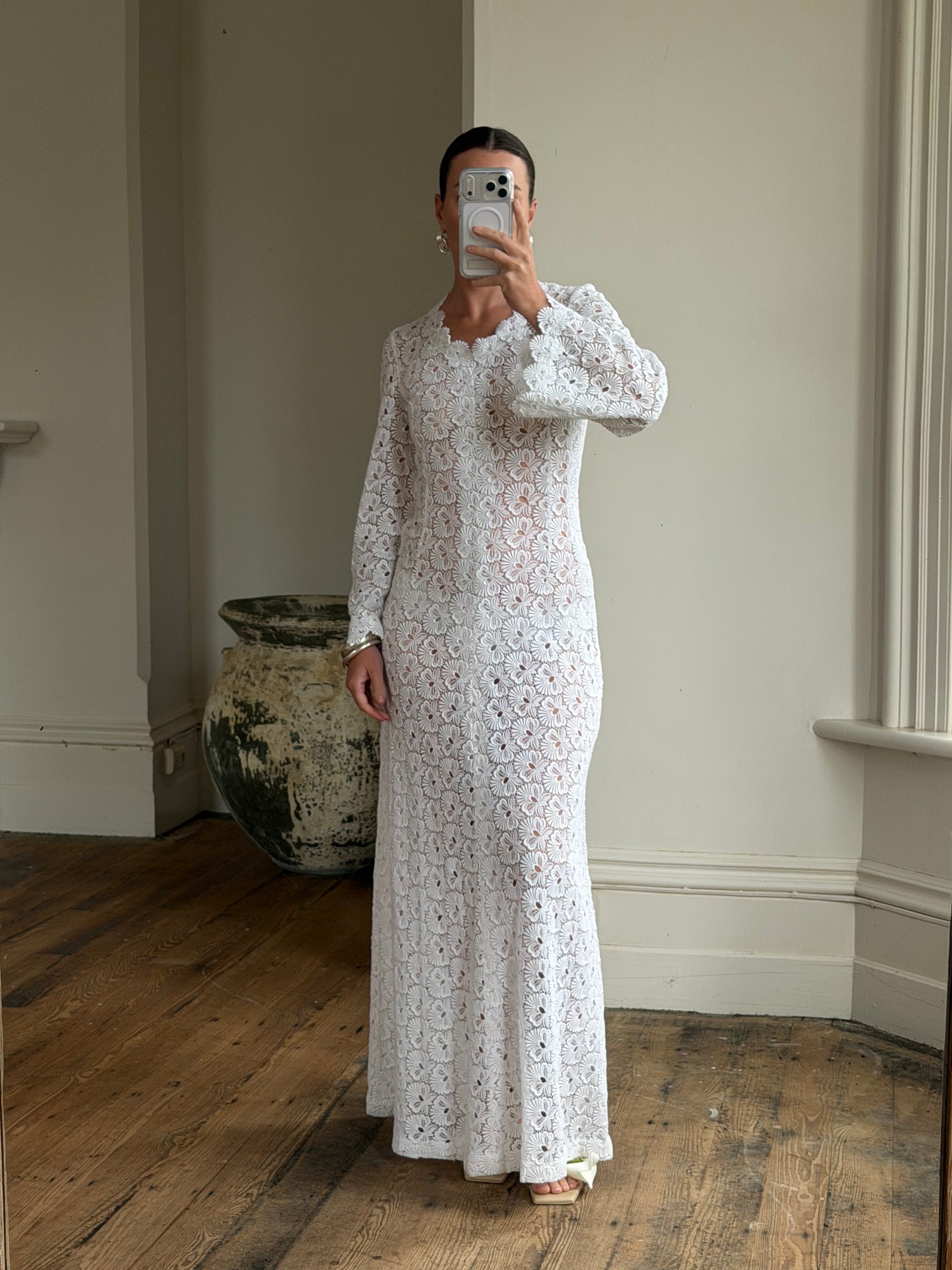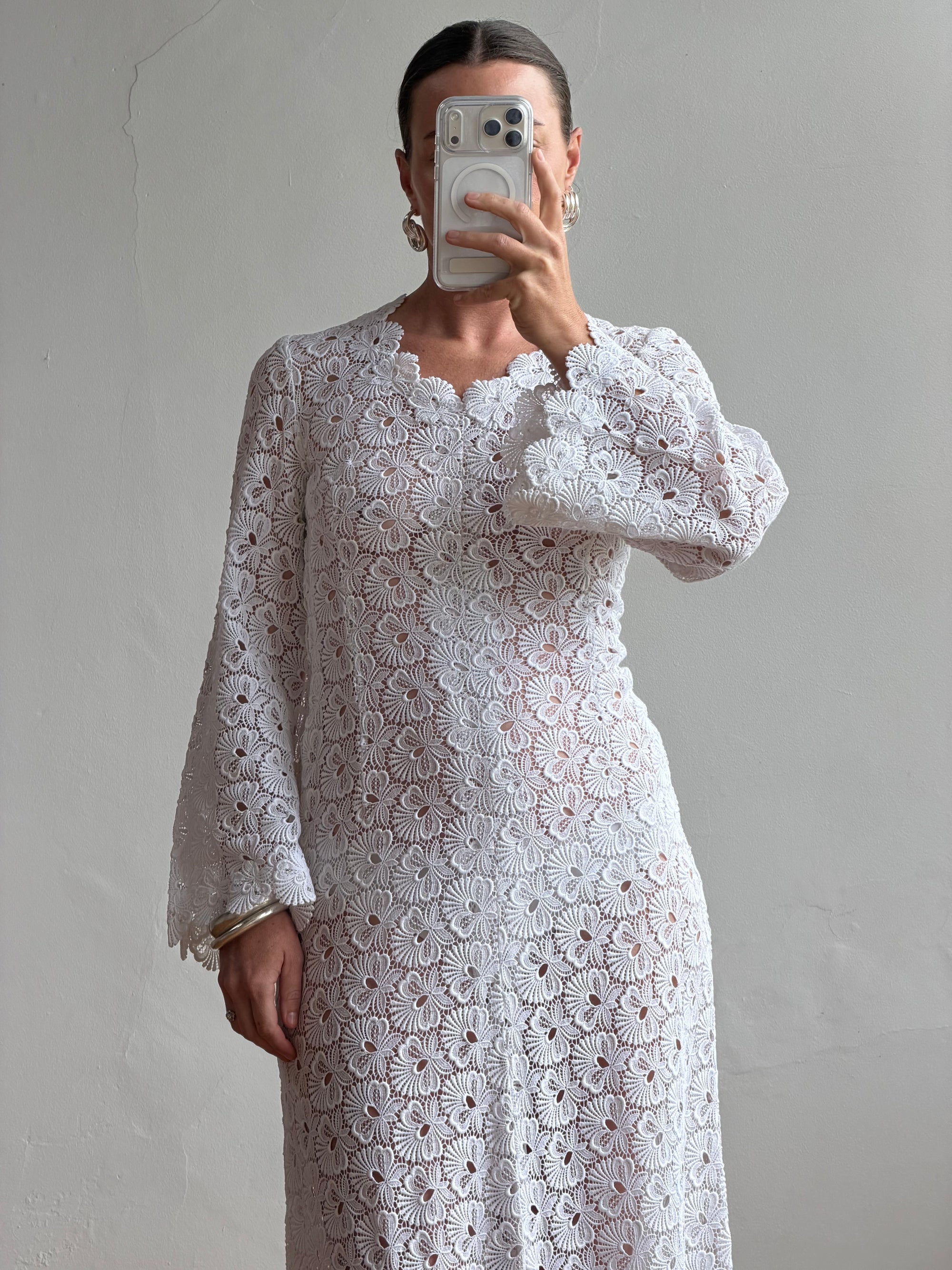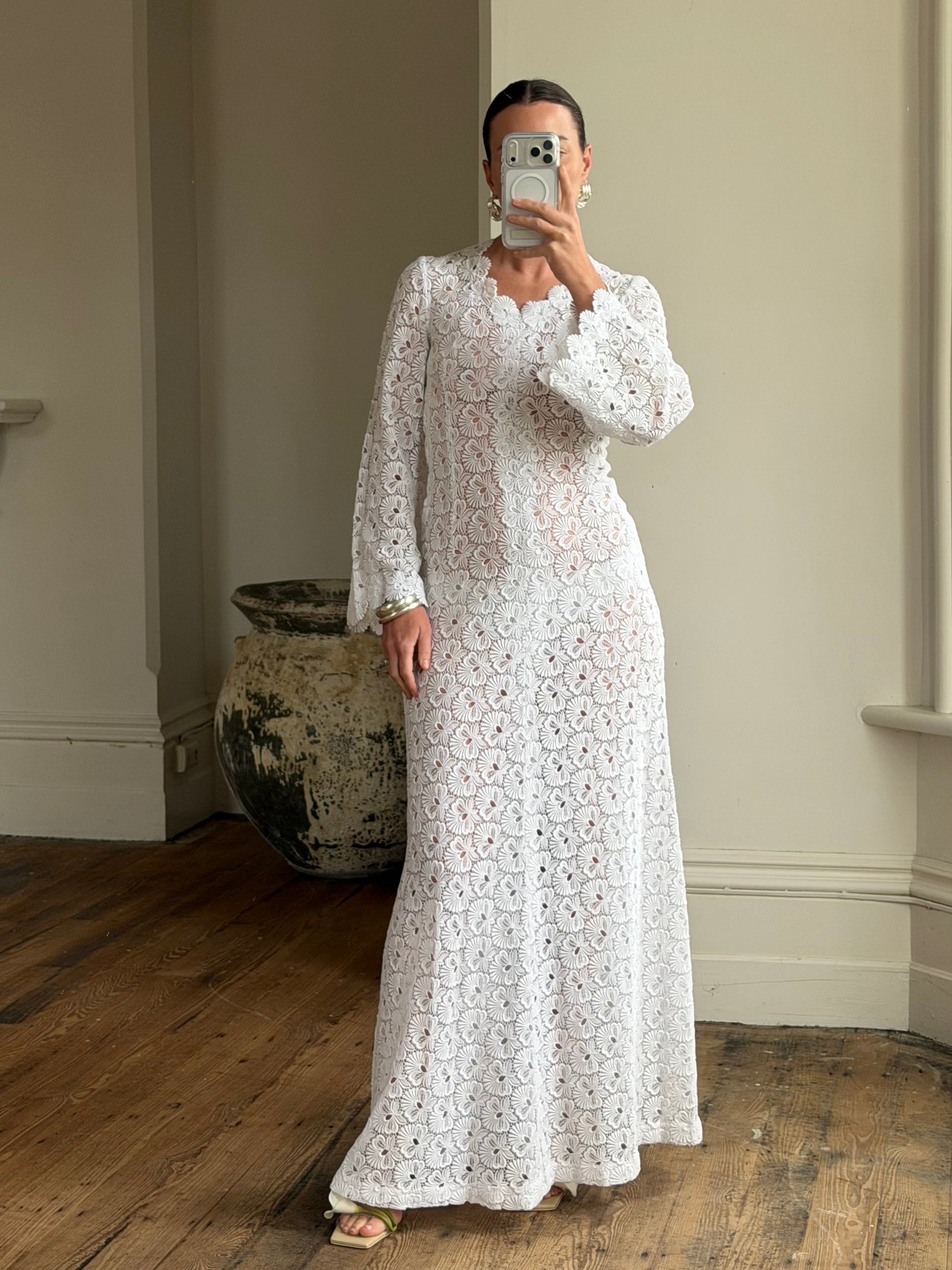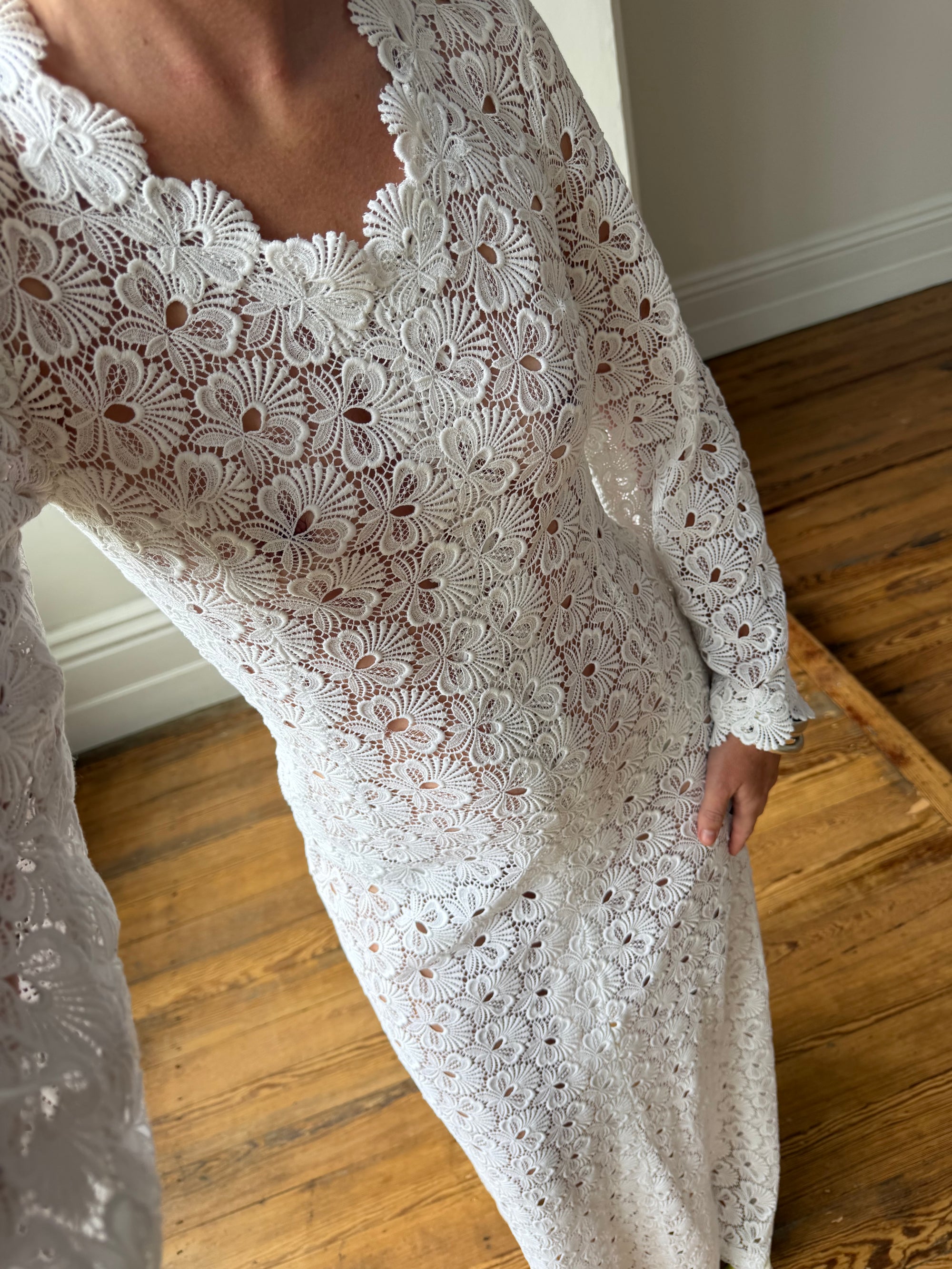 Vintage 60s Crochet Lace Long Sleeved Wedding Gown