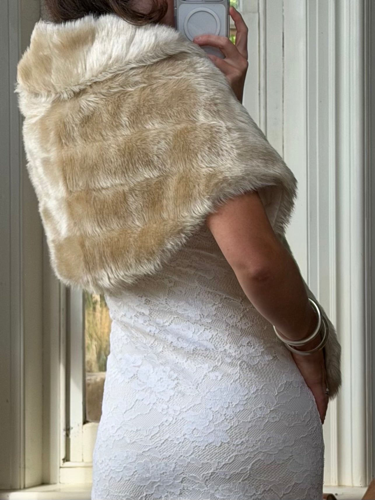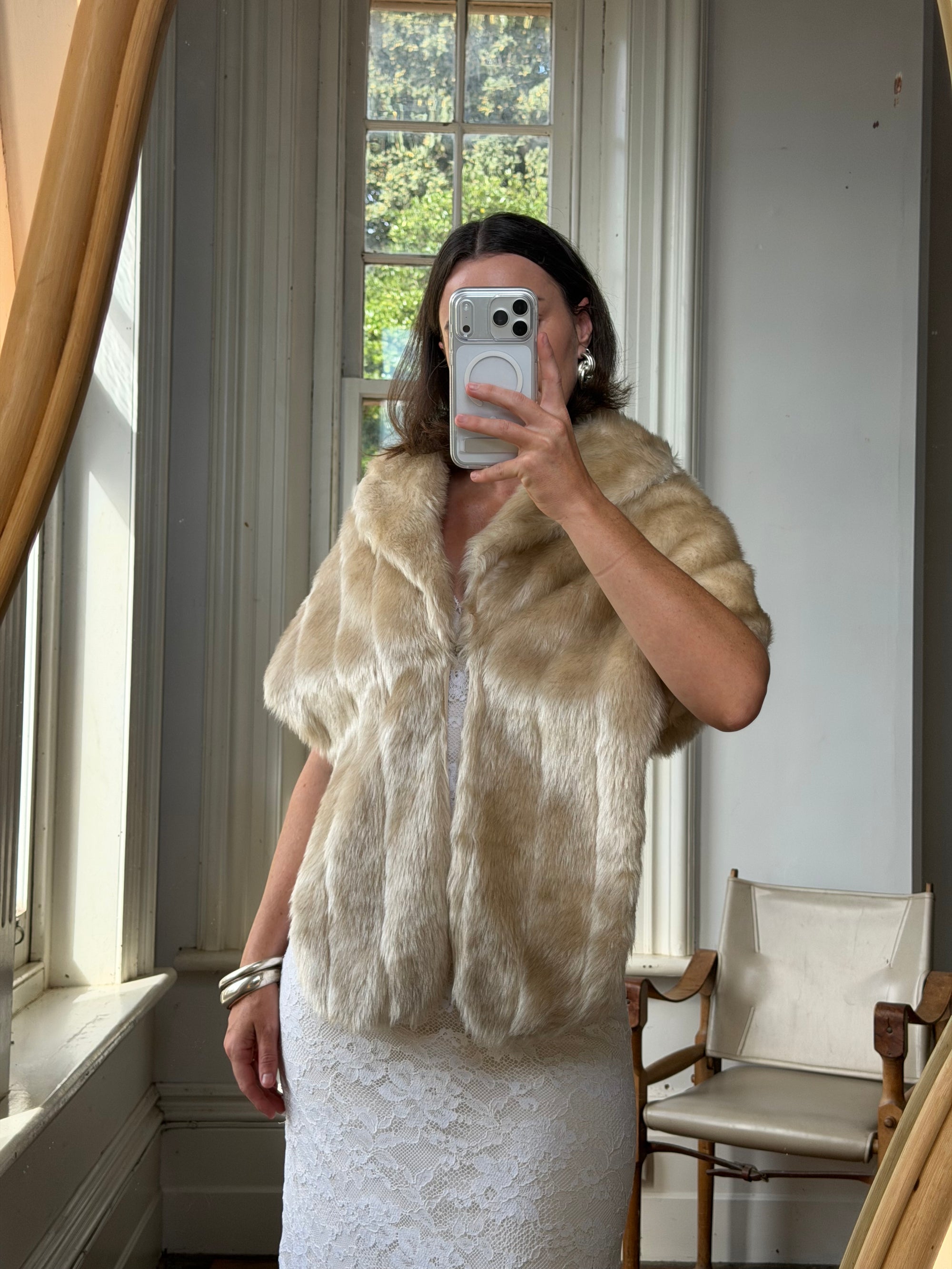 Vintage 50s Creme Latte Faux Fur Stole