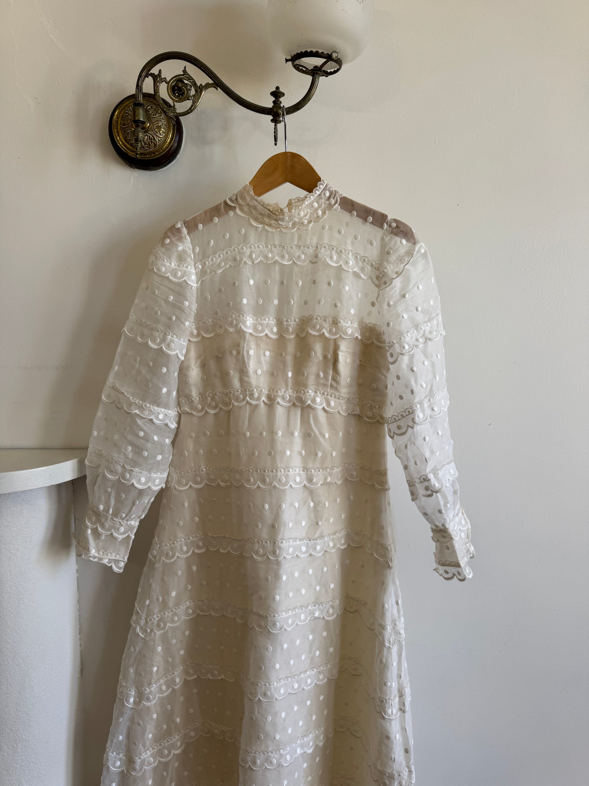Vintage 60s Polka Dot Long Sleeved Wedding Dress Ivory