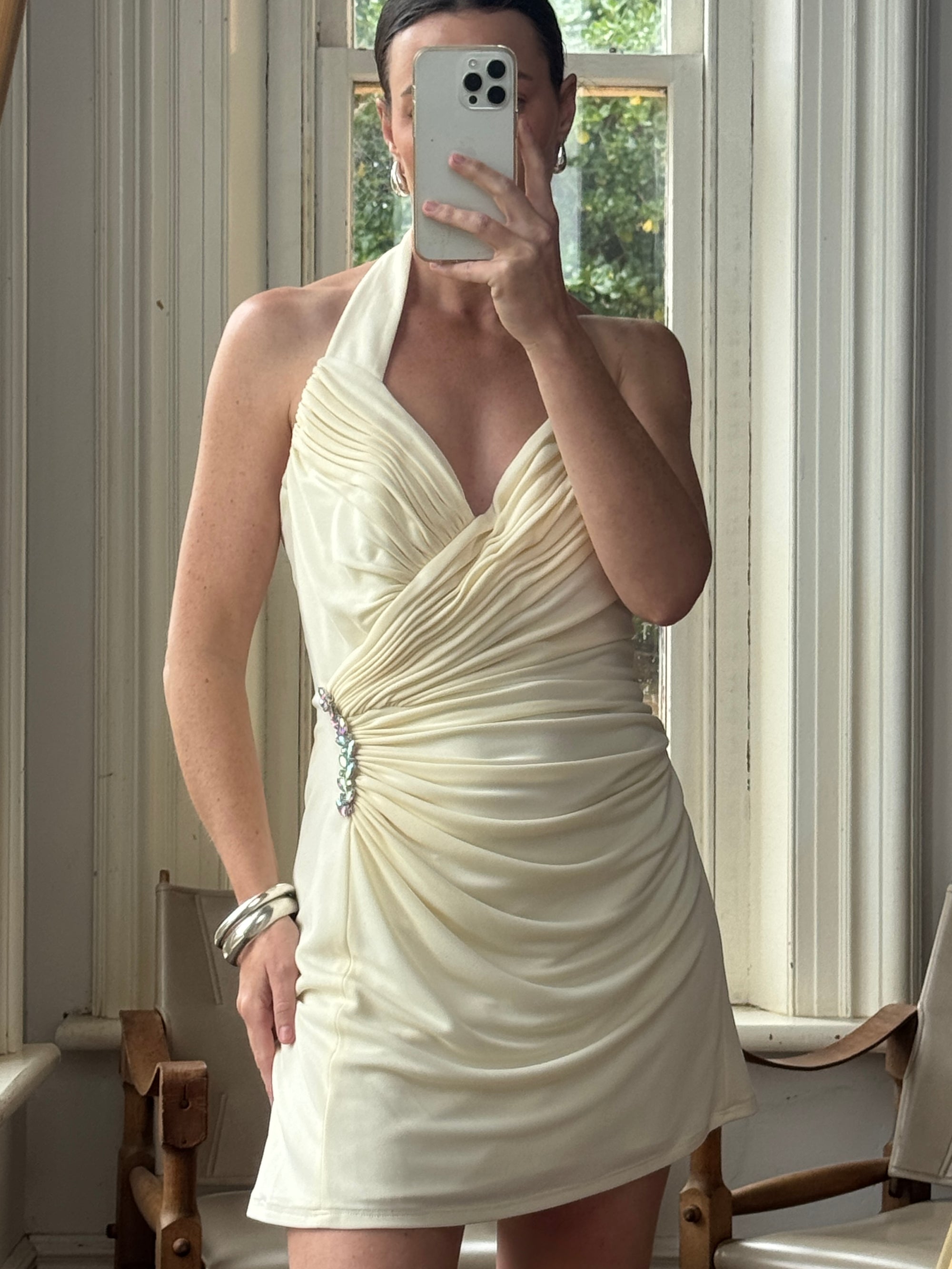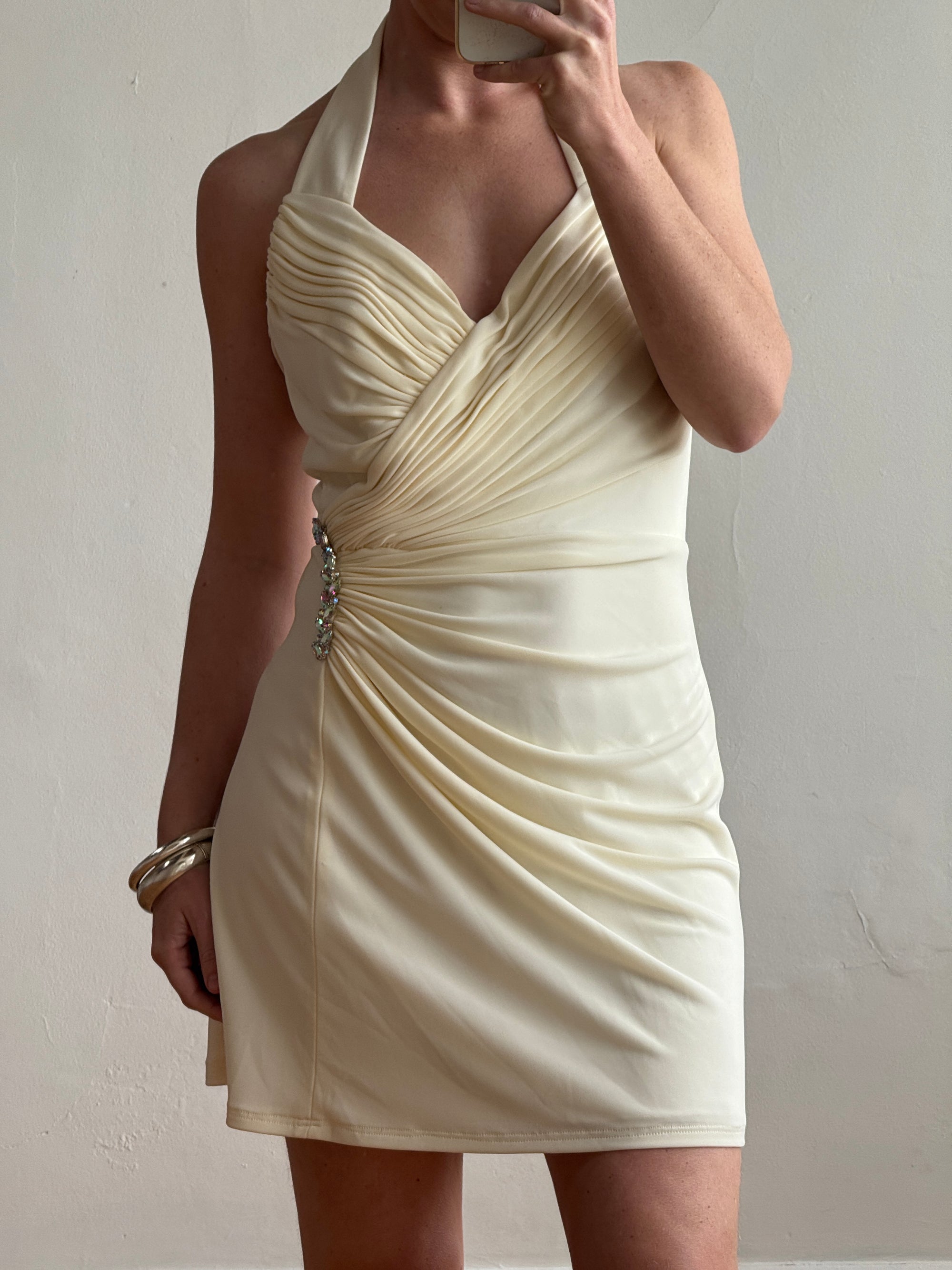 Vintage 90s Bandage Mini Dress Cream With Rainbow Rhinestones