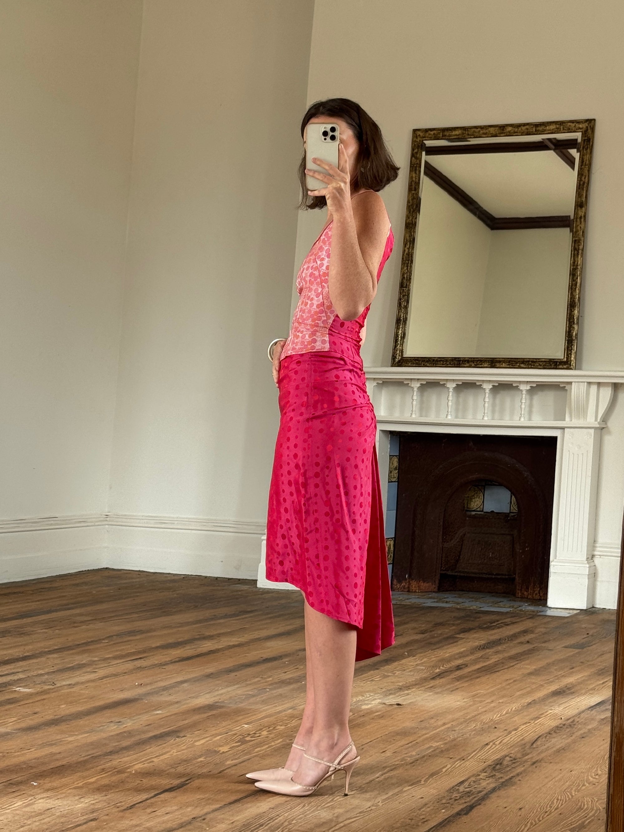 Vintage 90s Baby Pink Satin Scoop Neck Dress
