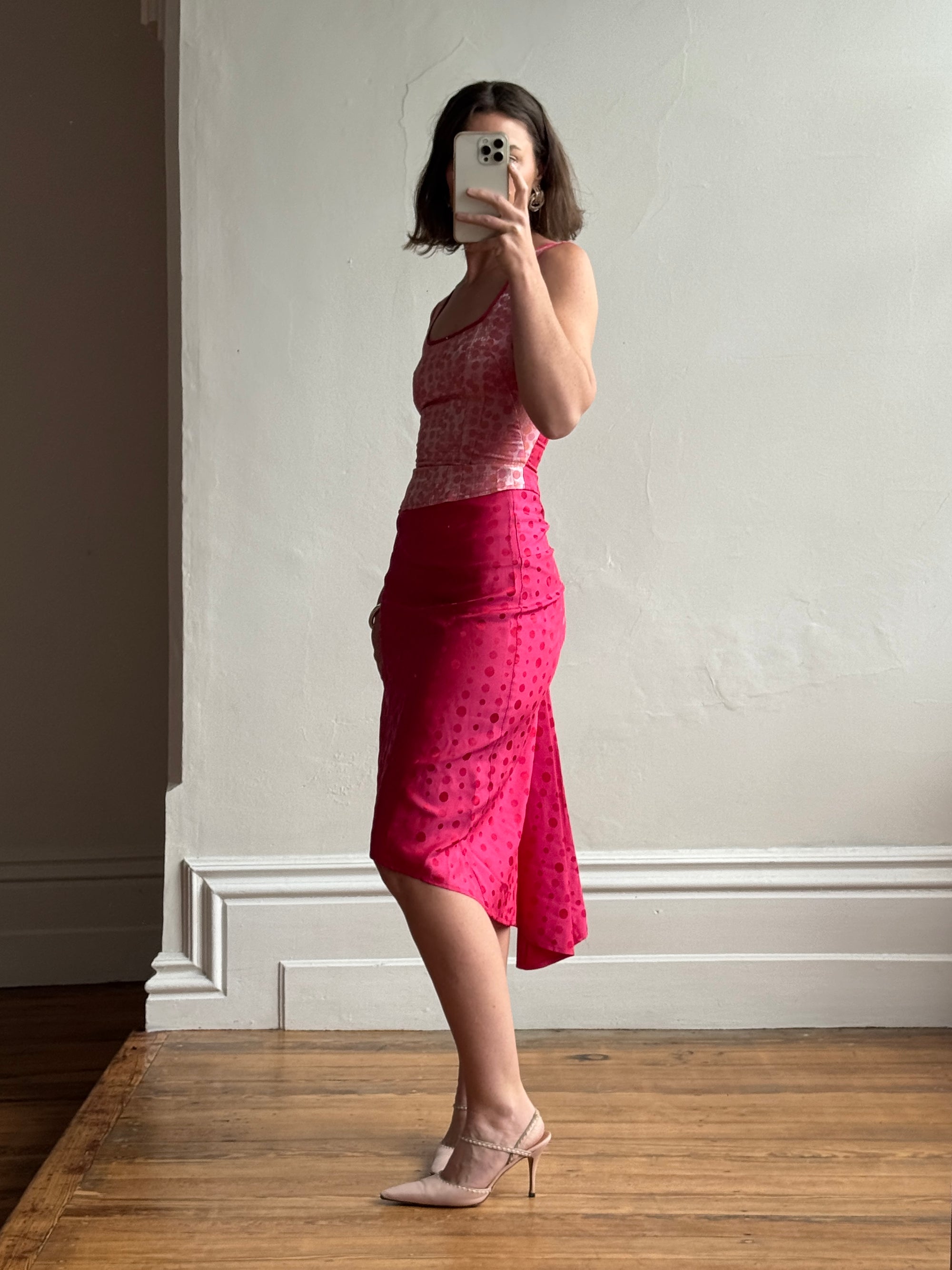 Vintage 90s Burgundy Slip Dress With Pink Sequins and Scarf