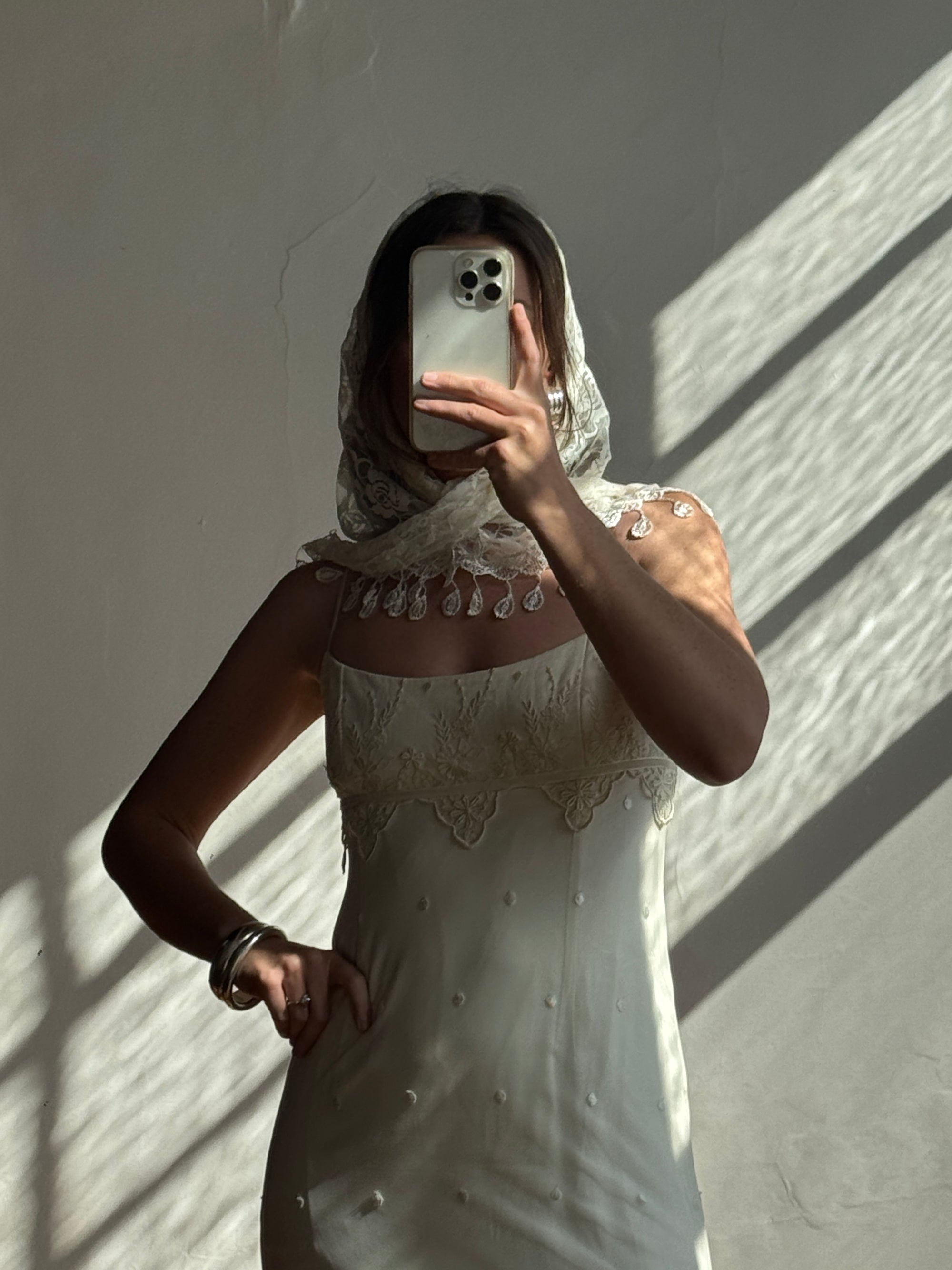 Vintage 90s Beaded Satin Two Piece Wedding Set