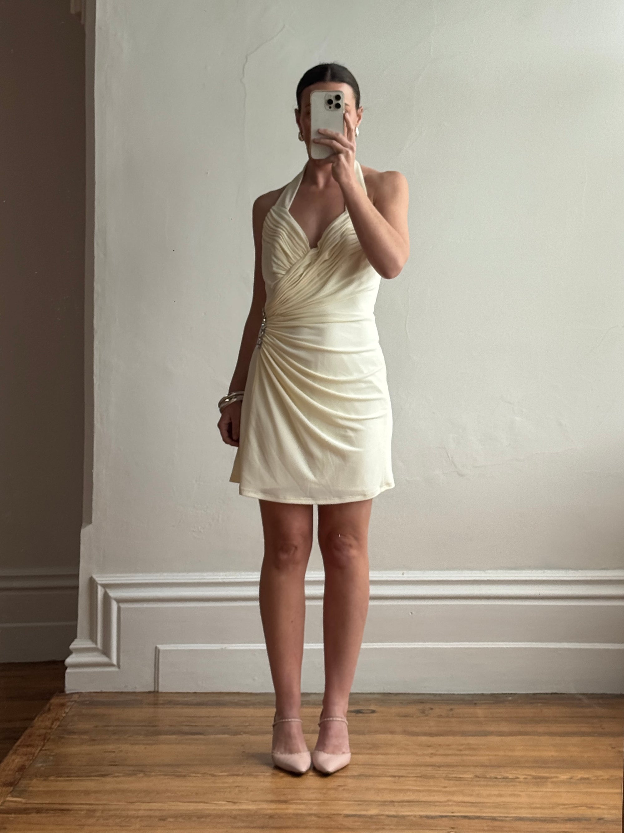 Vintage 90s Body Con Ivory Dress with Gold Hardware
